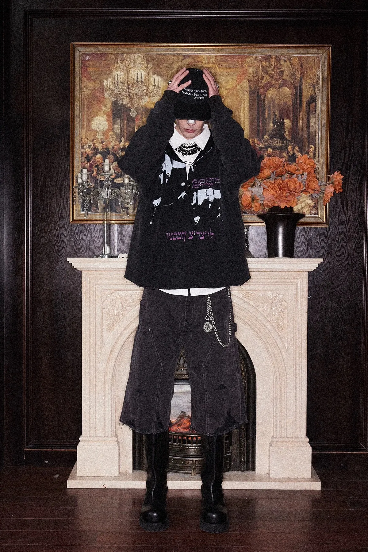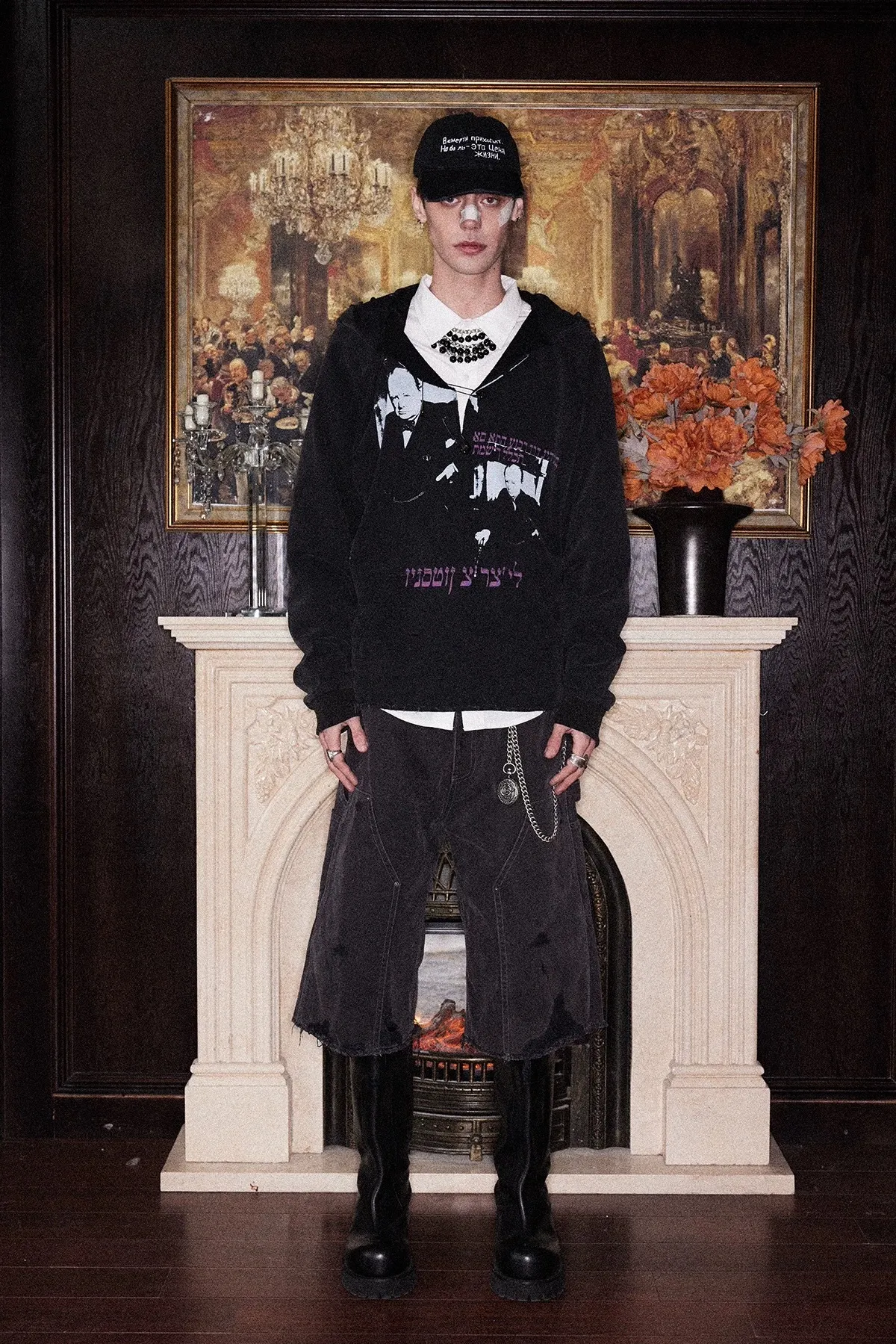 RICHILL 俄文 吸血鬼刺繡 水洗破壞 帽(黑色)