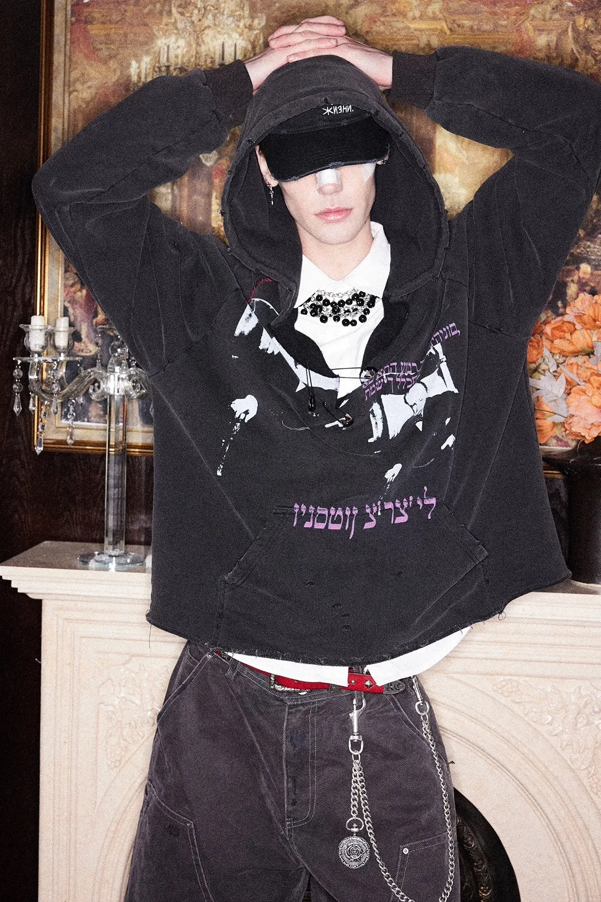 RICHILL 俄文 吸血鬼 水洗破壞 短袖(霧藍色)