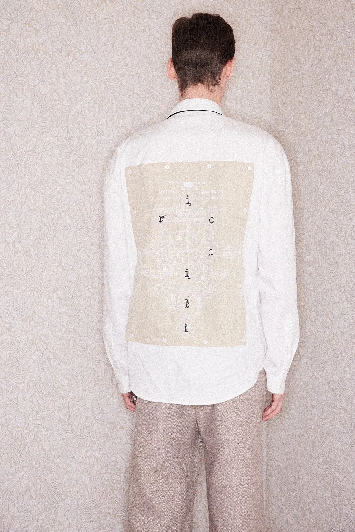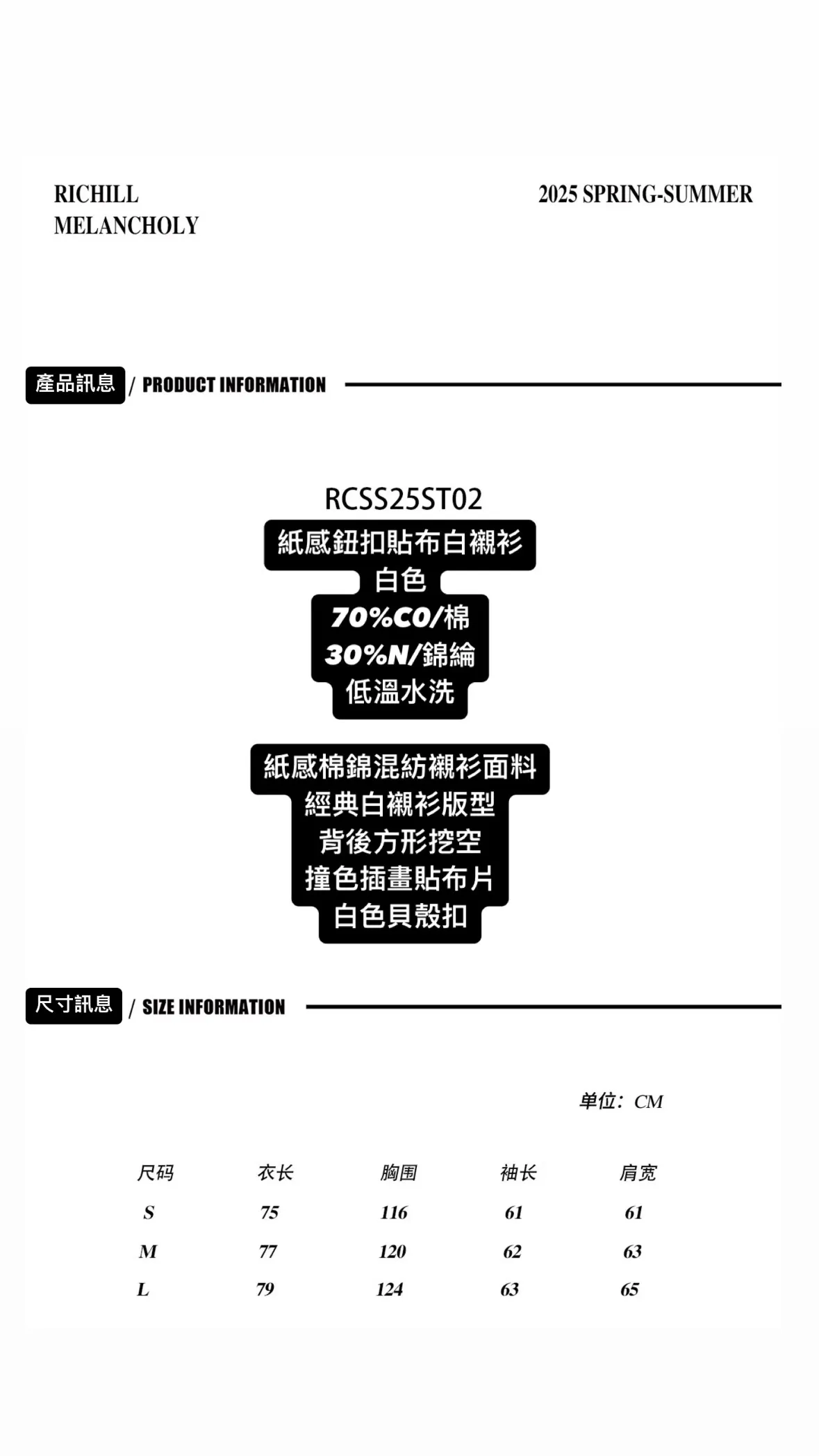 RICHILL 純棉紙感 貝殼釦 插畫繡布 襯衫(白色)
