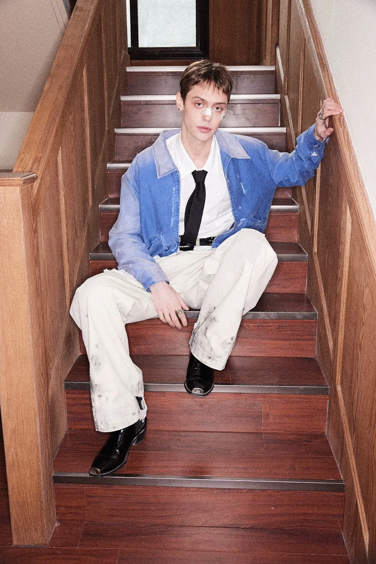 RICHILL 聖經貼布 水洗 寬鬆 大學踢(黑/藍)