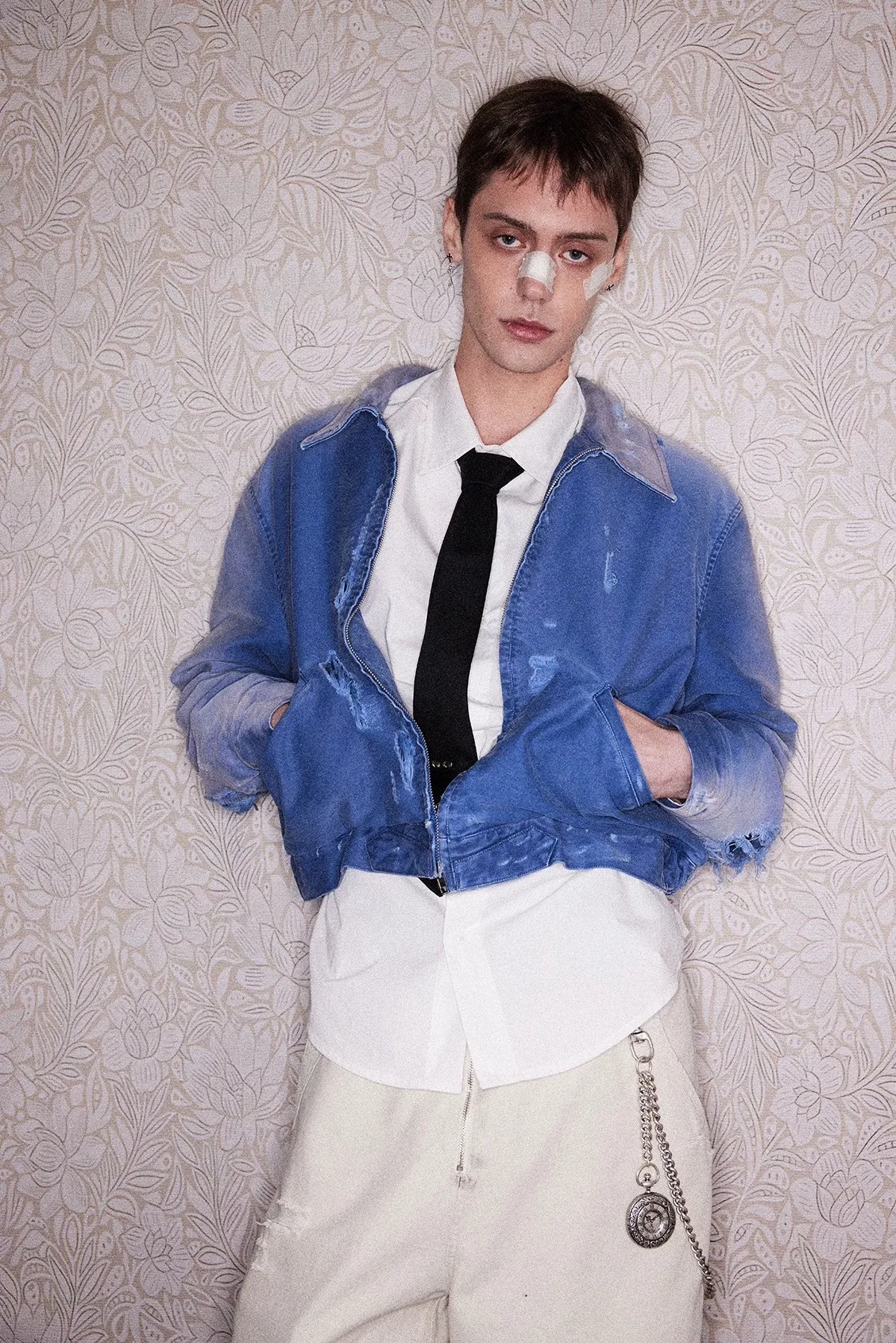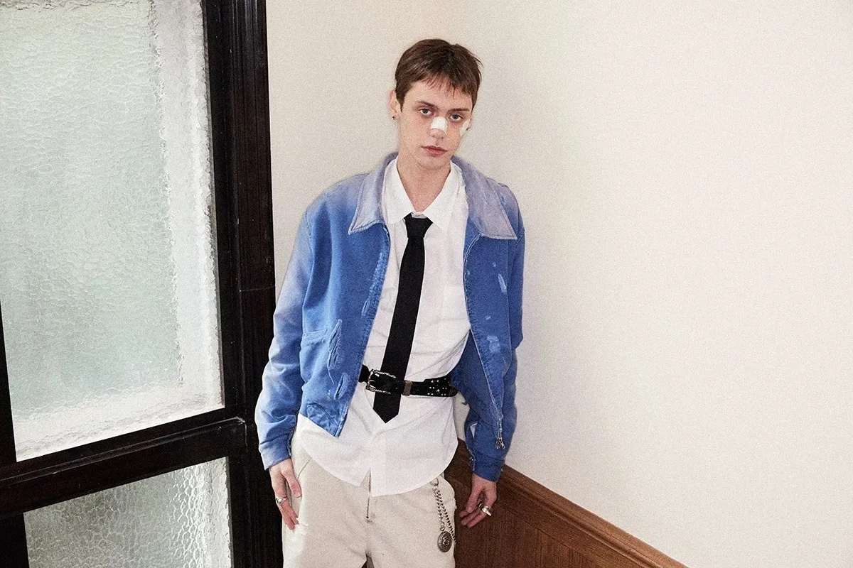 RICHILL 俄文 吸血鬼 水洗破壞 短袖(霧藍色)