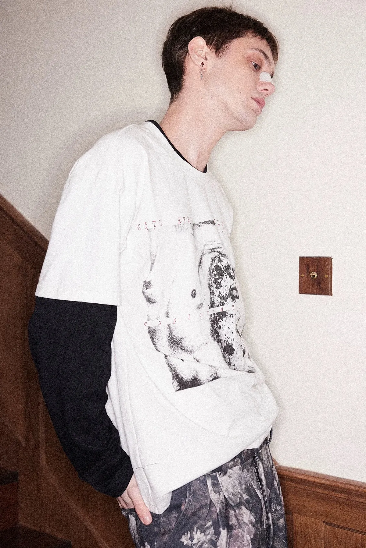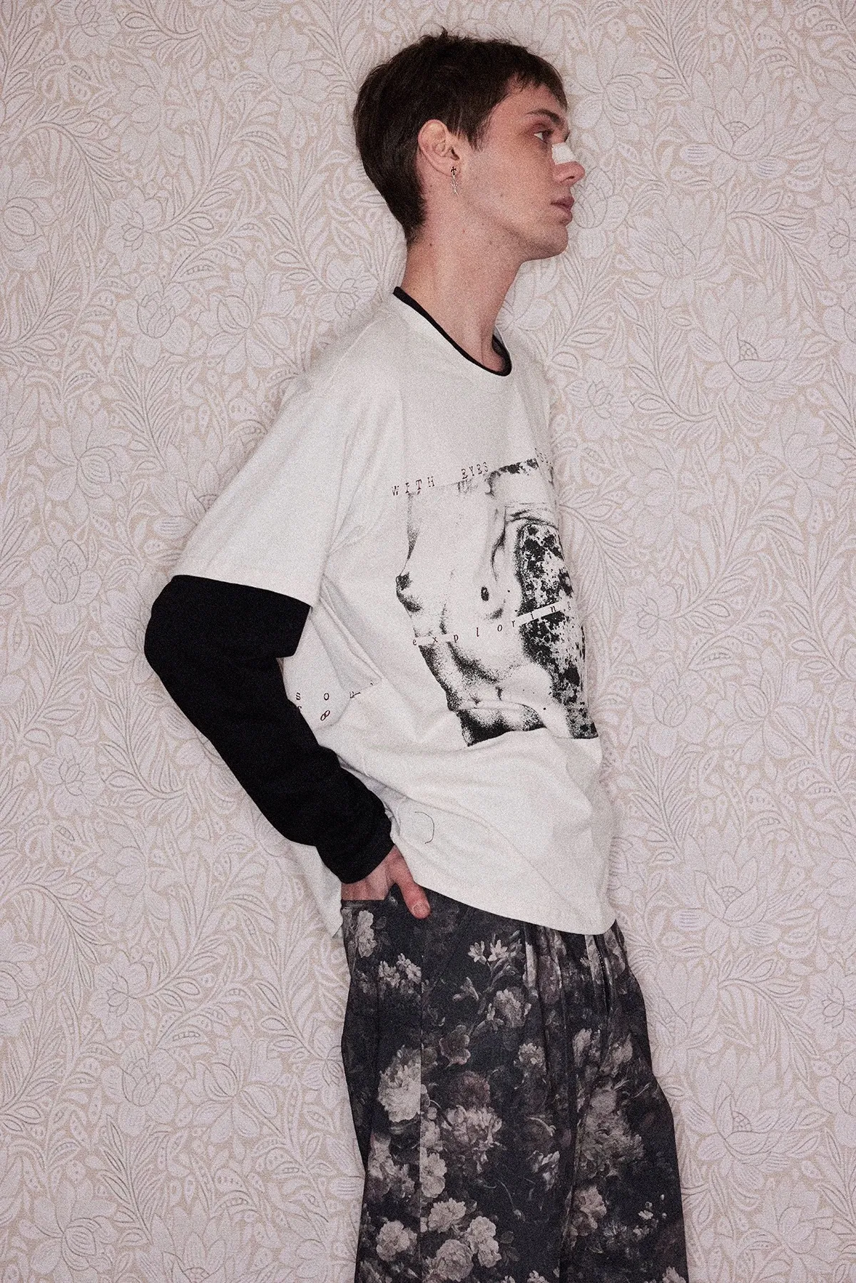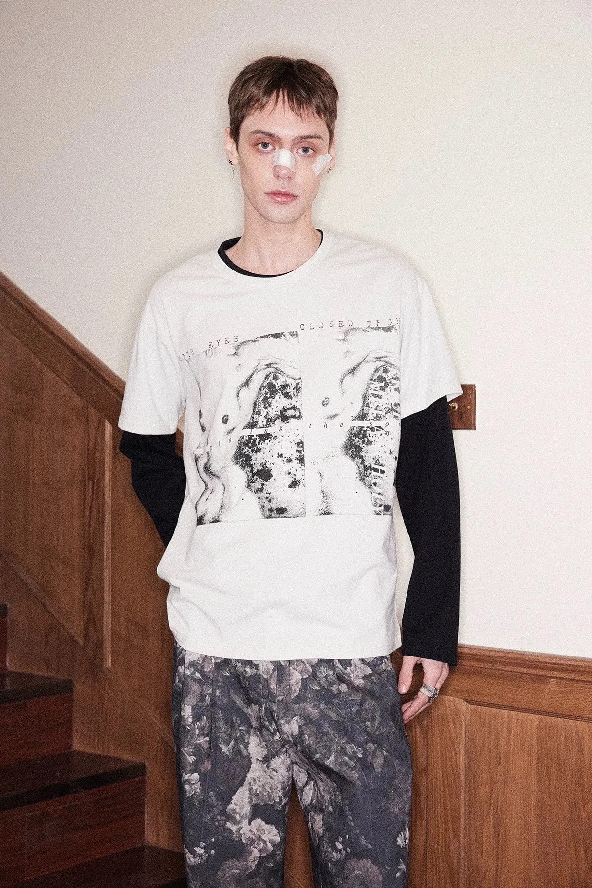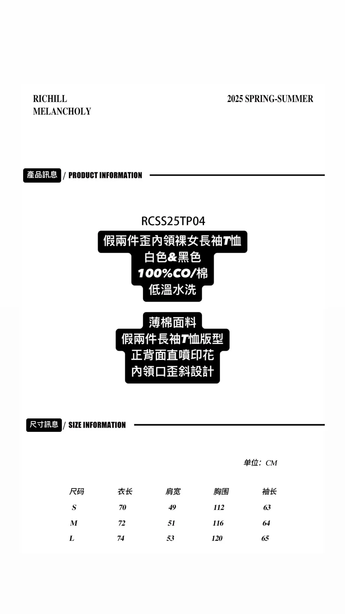 RICHILL 不規則領 假兩件 裸女 長袖(白色)