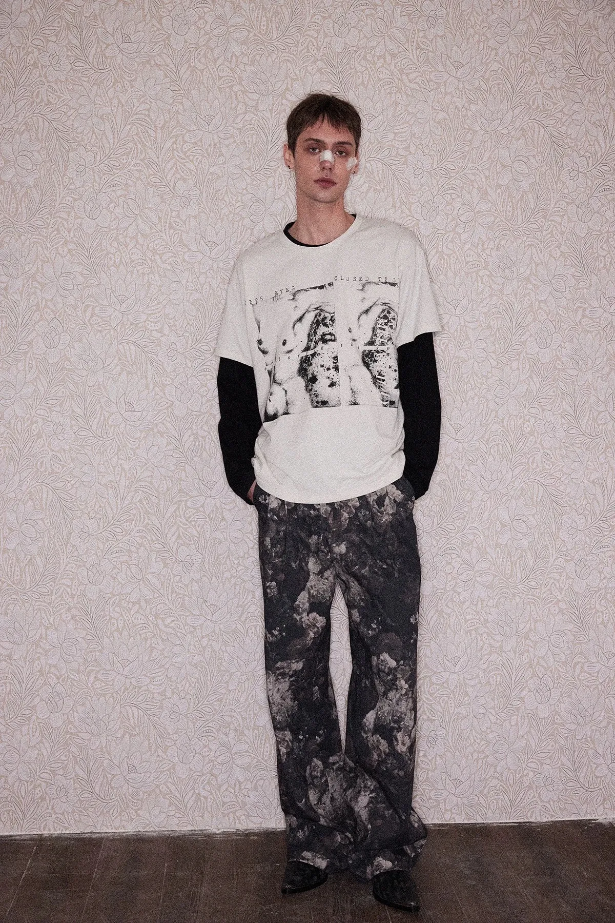 RICHILL 滿版花卉 闊腿 立體剪裁 西裝褲(黑色)