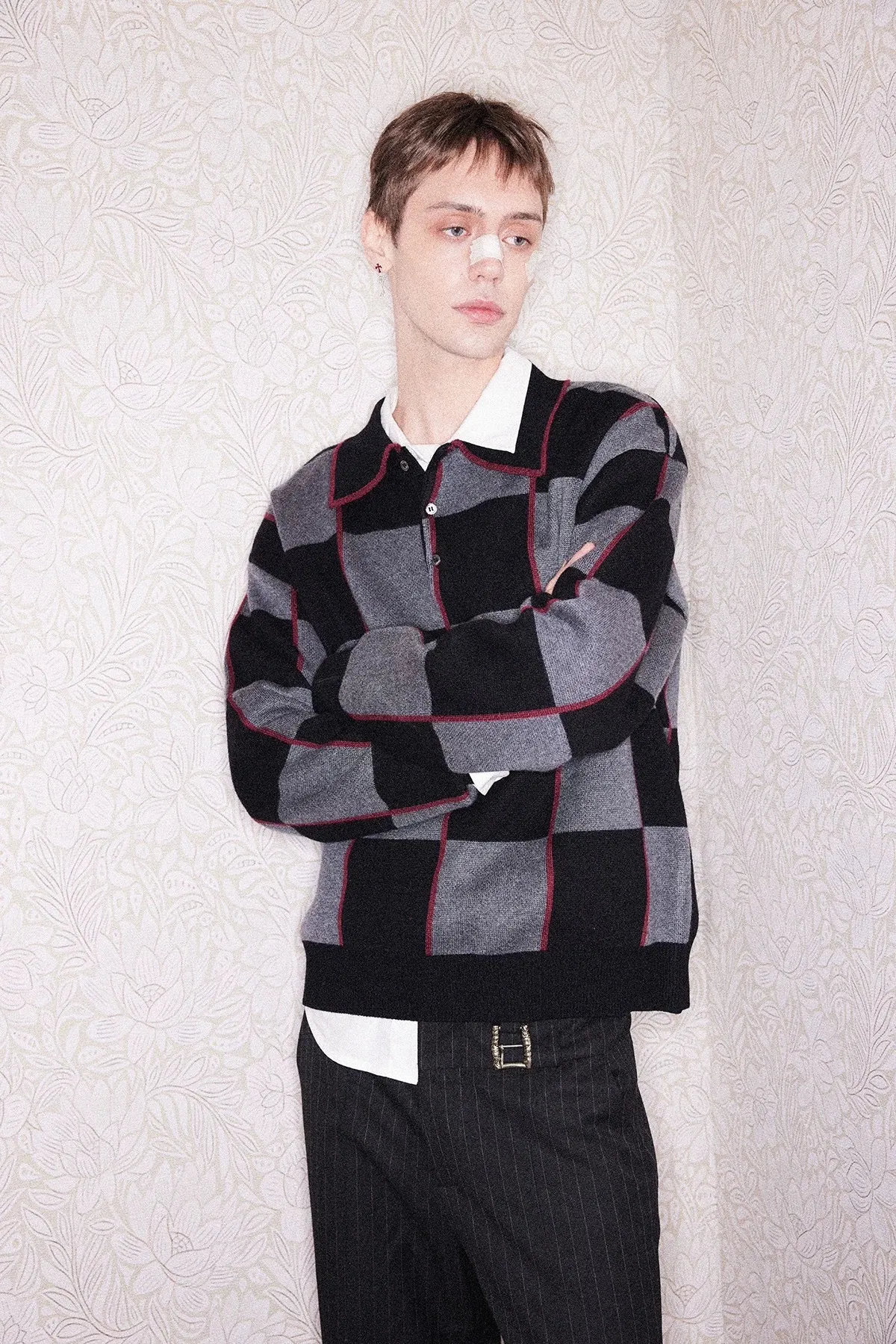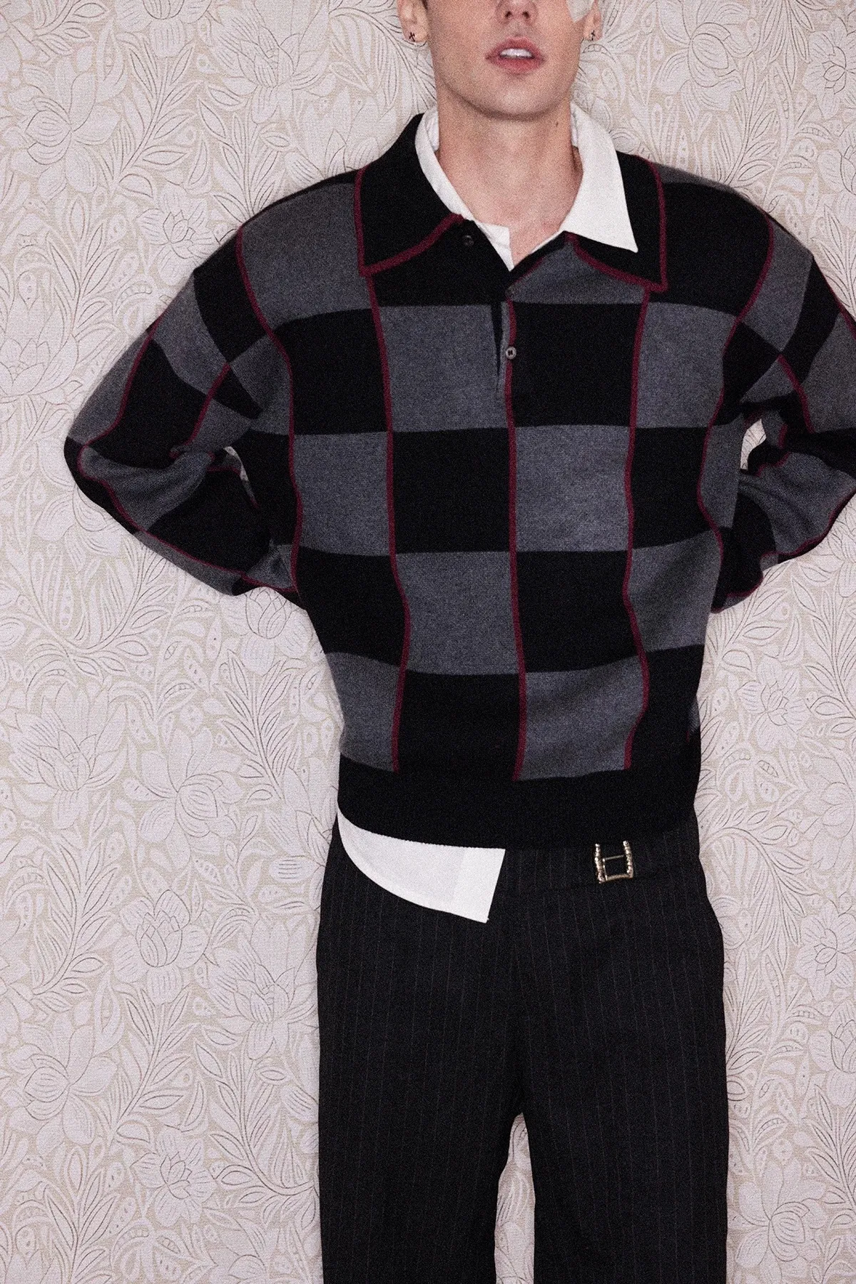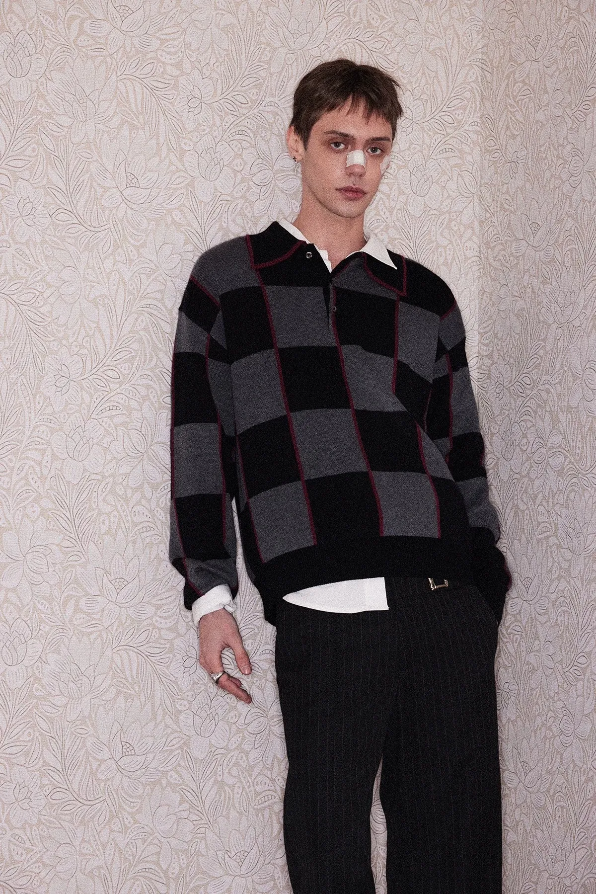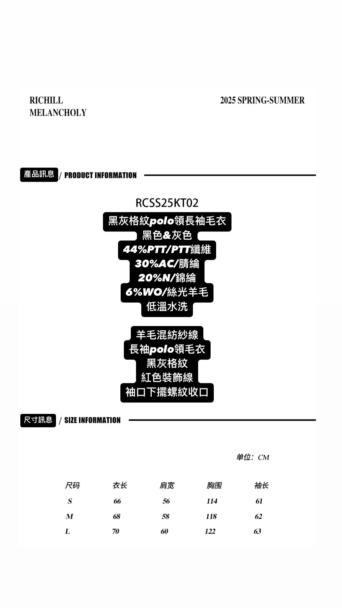 RICHILL 羊毛 老錢風 針織格紋 POLO衫(黑色)