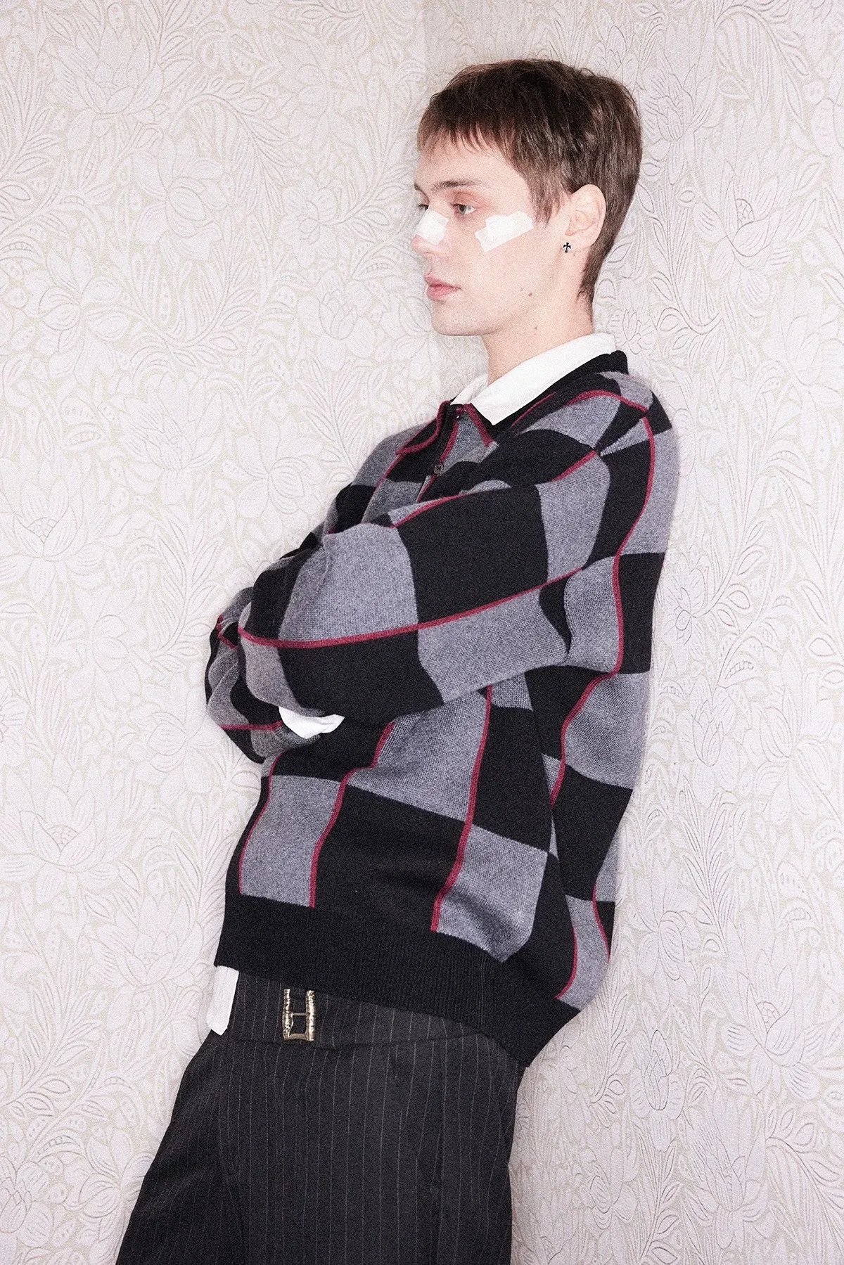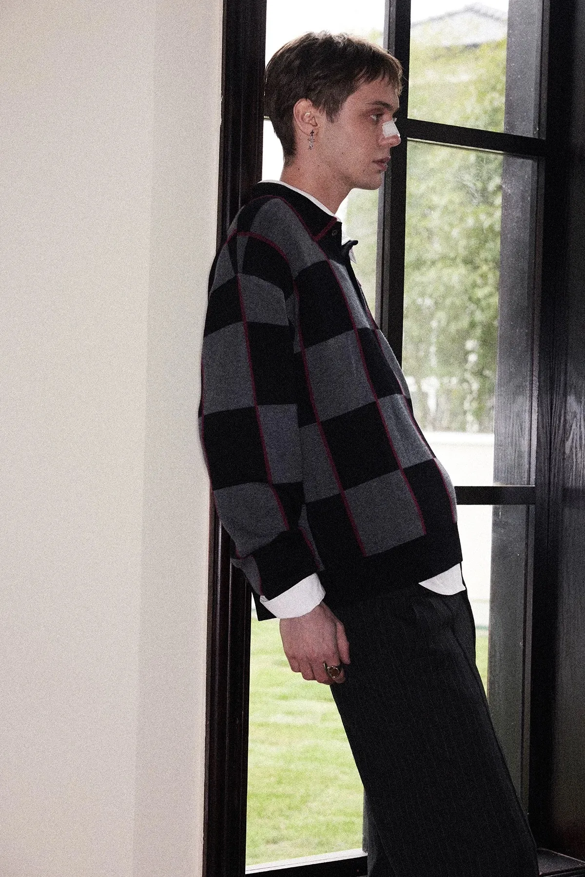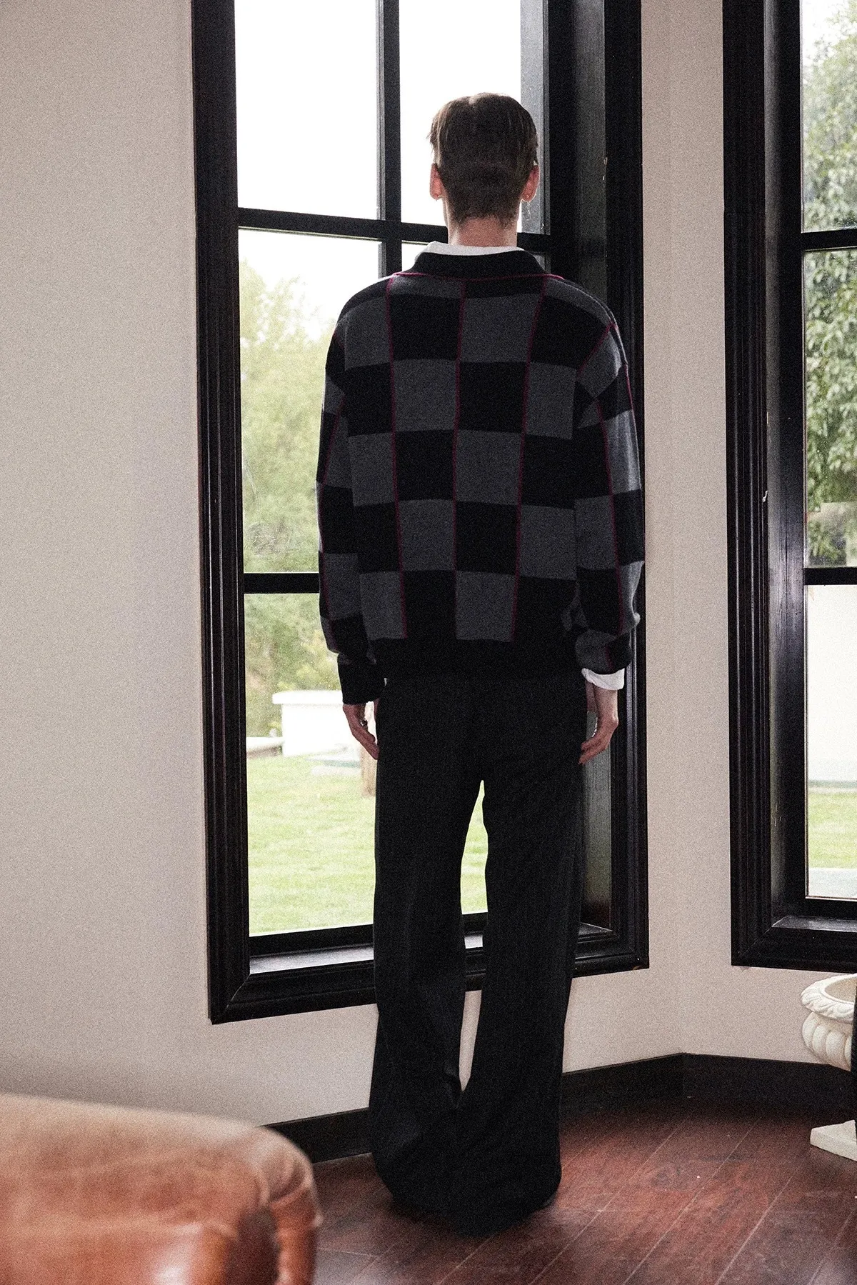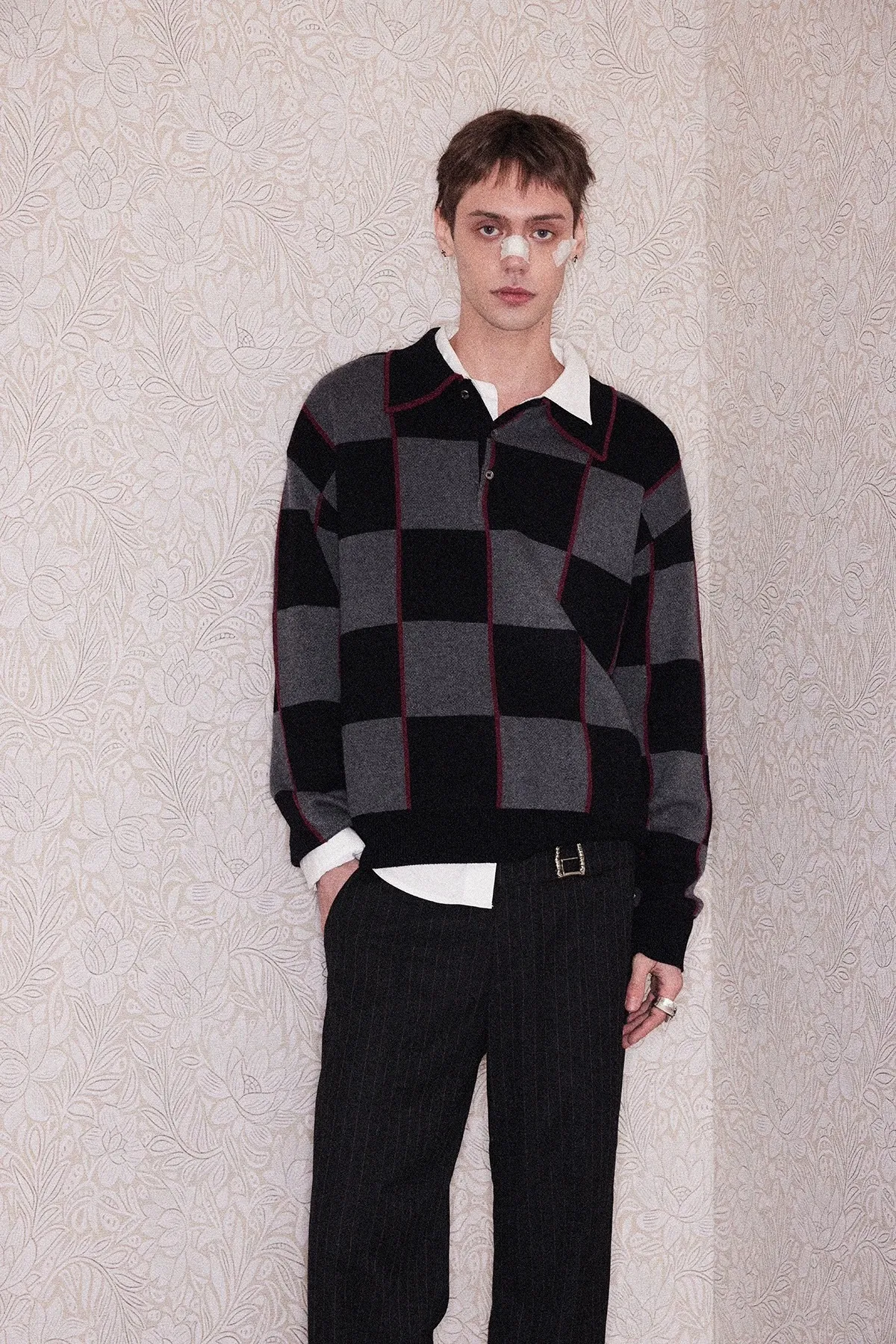 RICHILL 羊毛 老錢風 針織格紋 POLO衫(黑色)