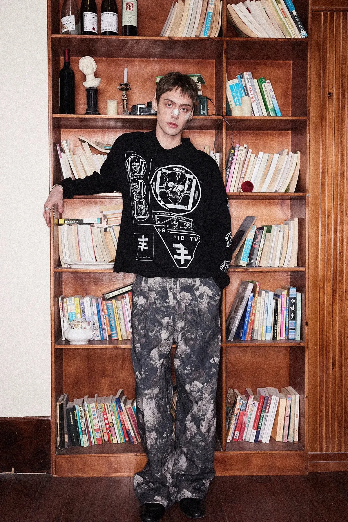 RICHILL Psychic TV裂紋 滿版印花 長袖(黑色)