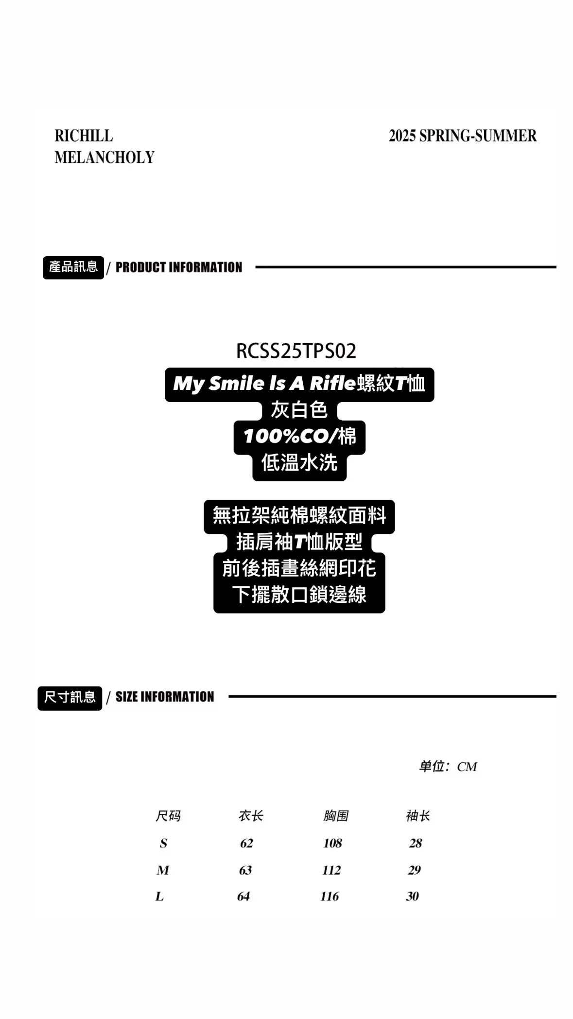 RICHILL My Smile Is A Rifle 螺紋印花 短袖(白色)