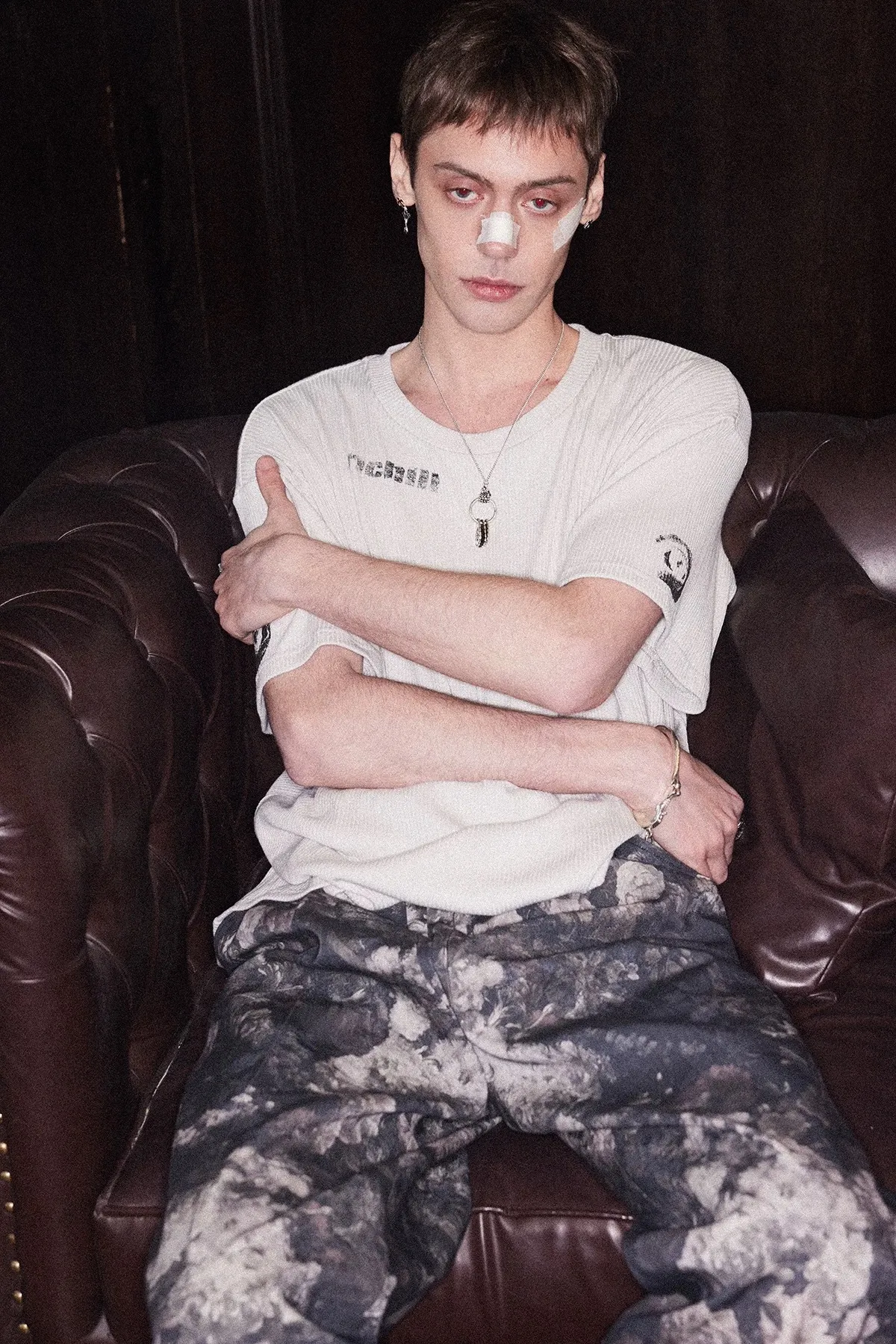 RICHILL 俄文 吸血鬼 水洗破壞 短袖(霧藍色)