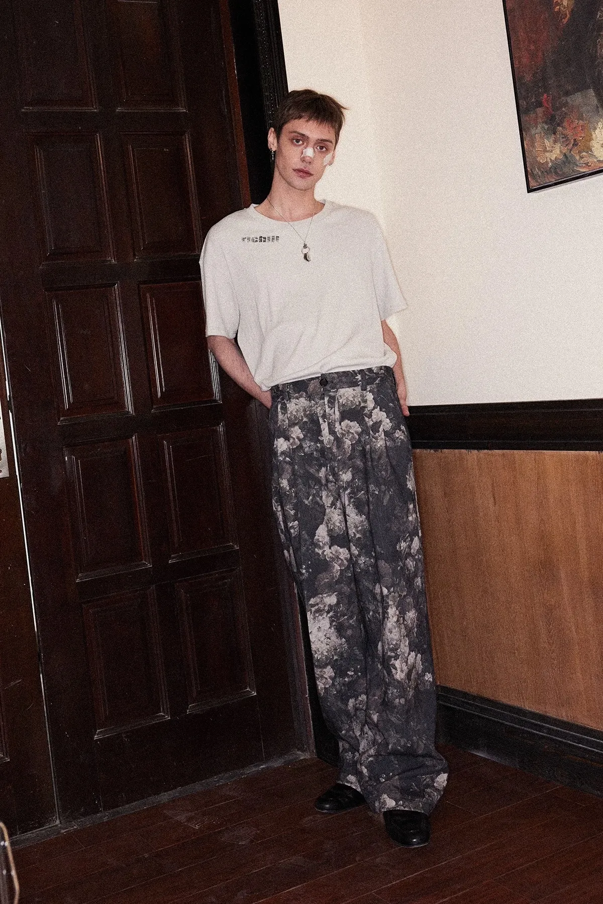 RICHILL 滿版花卉 闊腿 立體剪裁 西裝褲(黑色)
