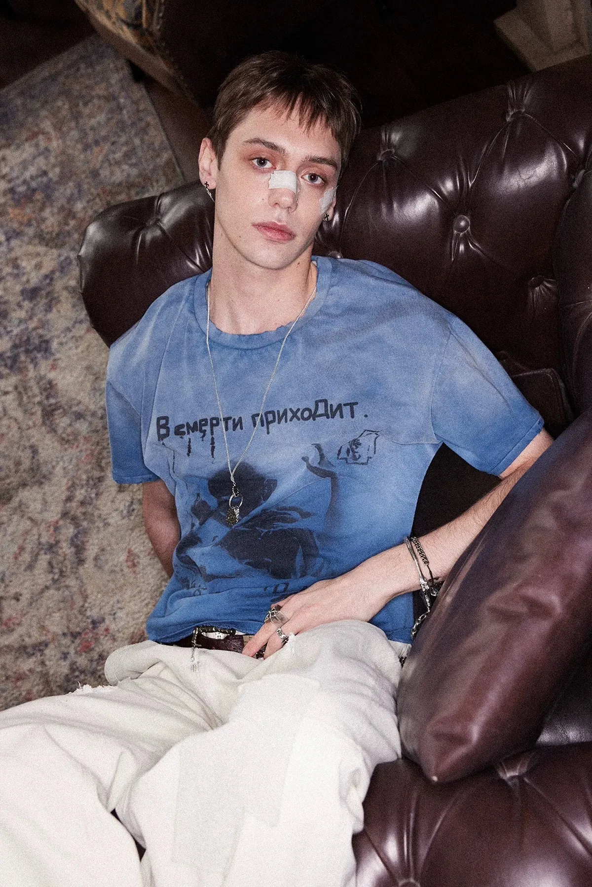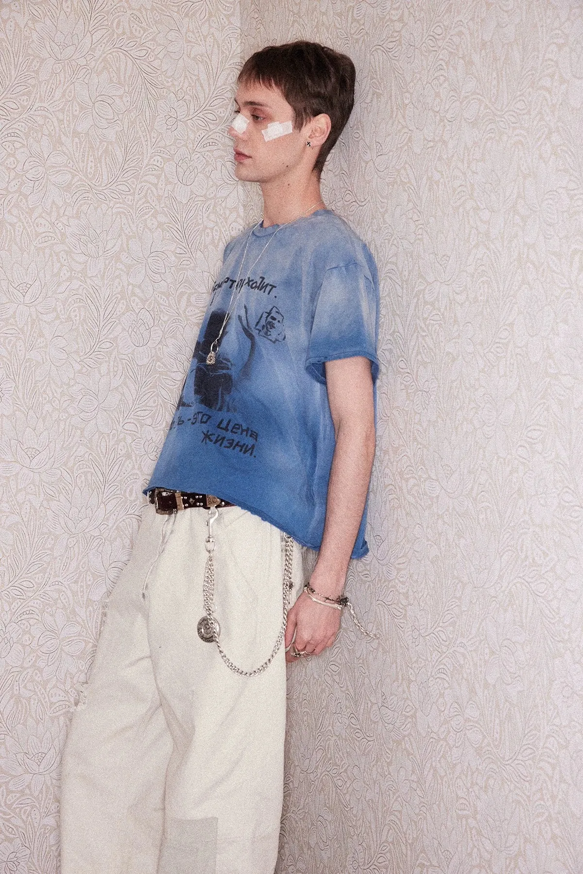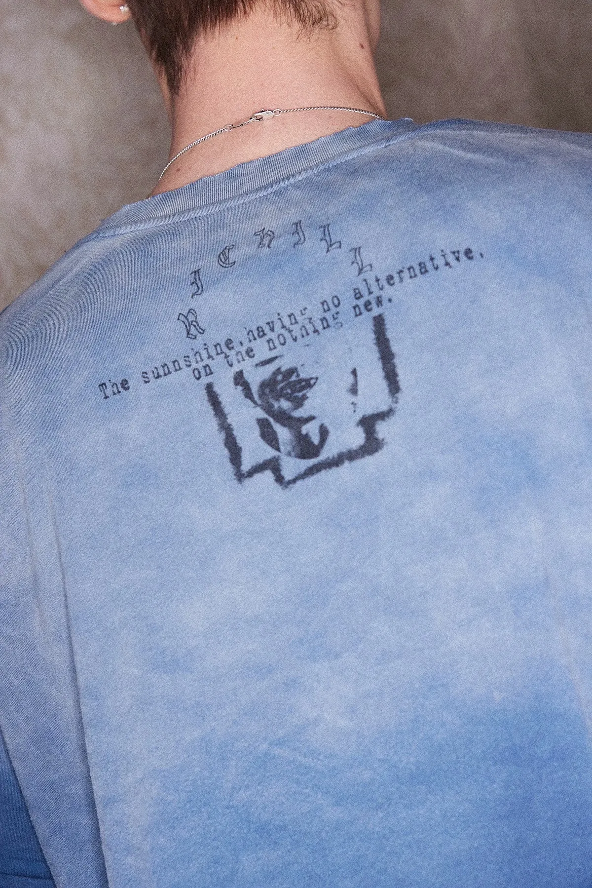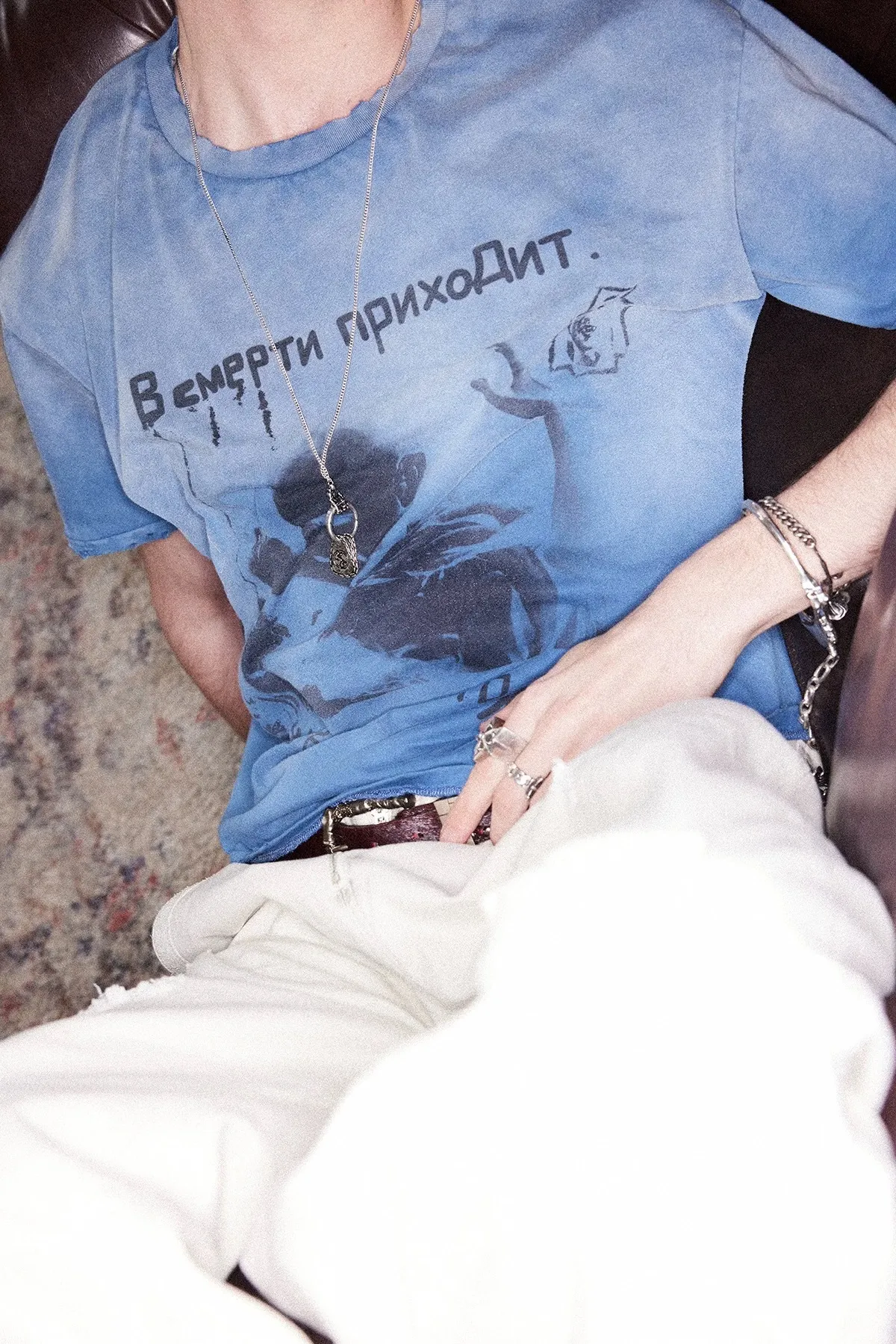 RICHILL 俄文 吸血鬼 水洗破壞 短袖(霧藍色)