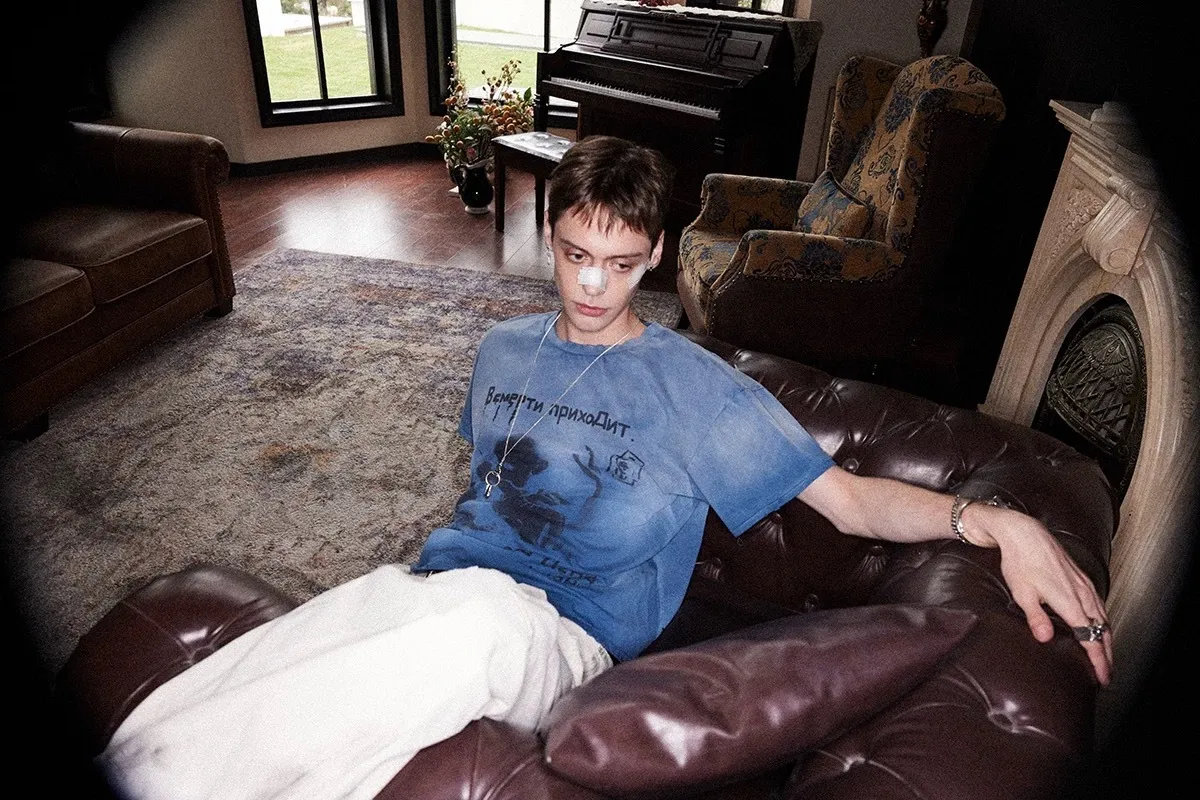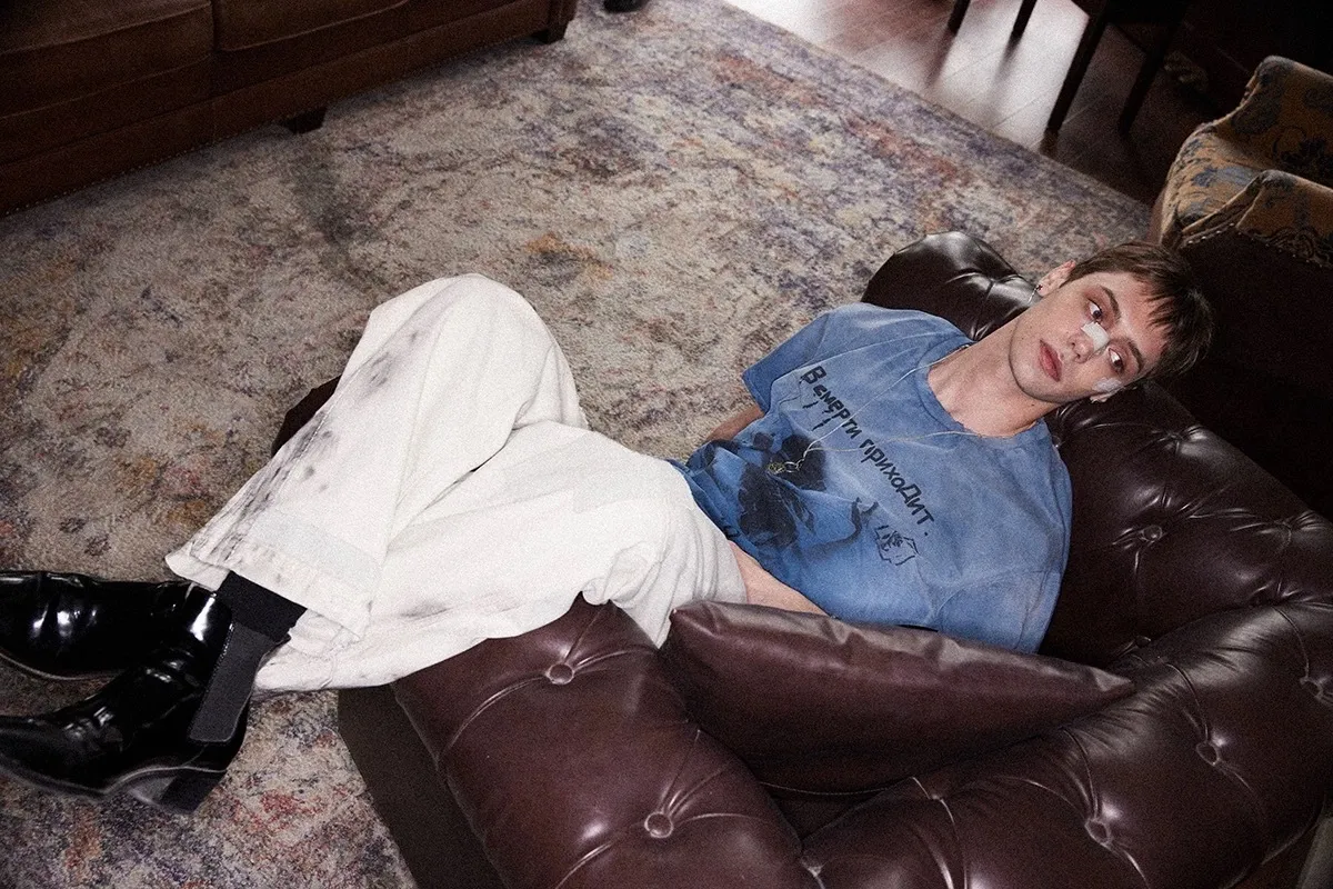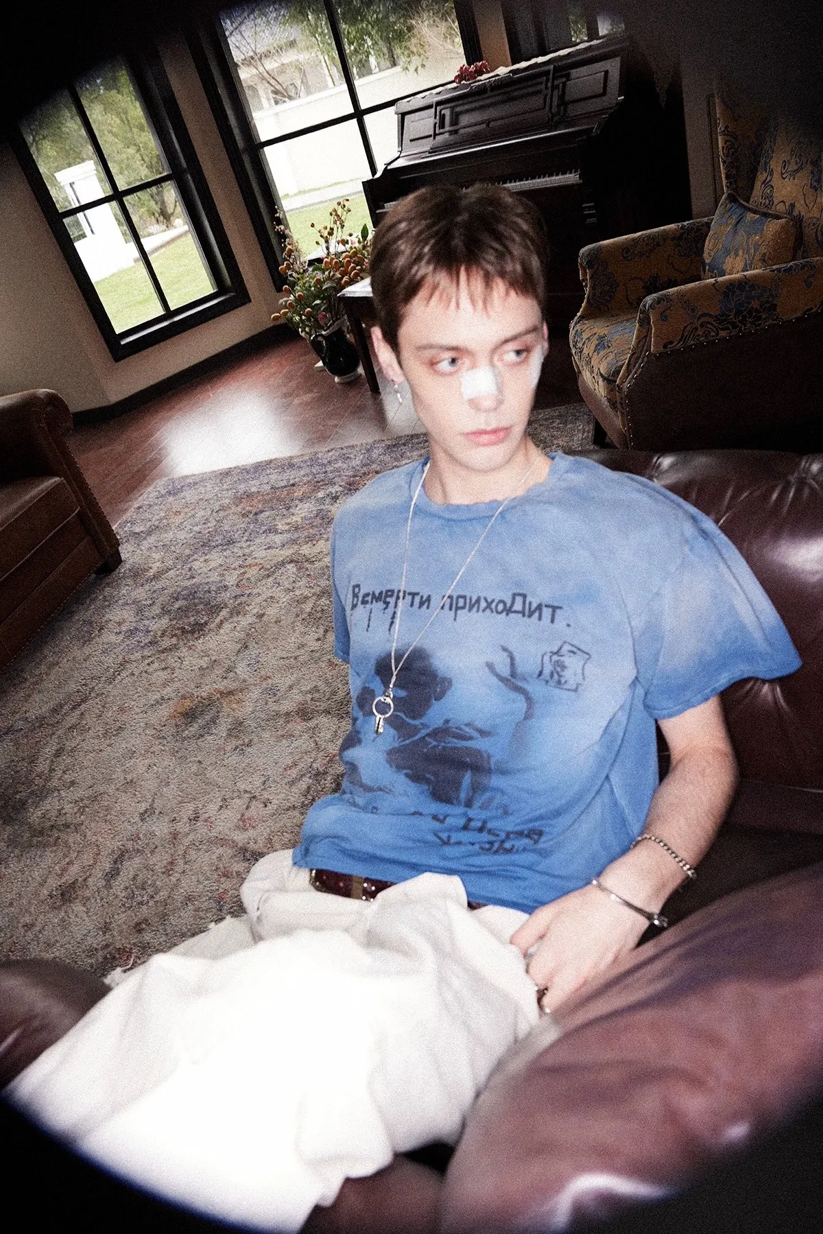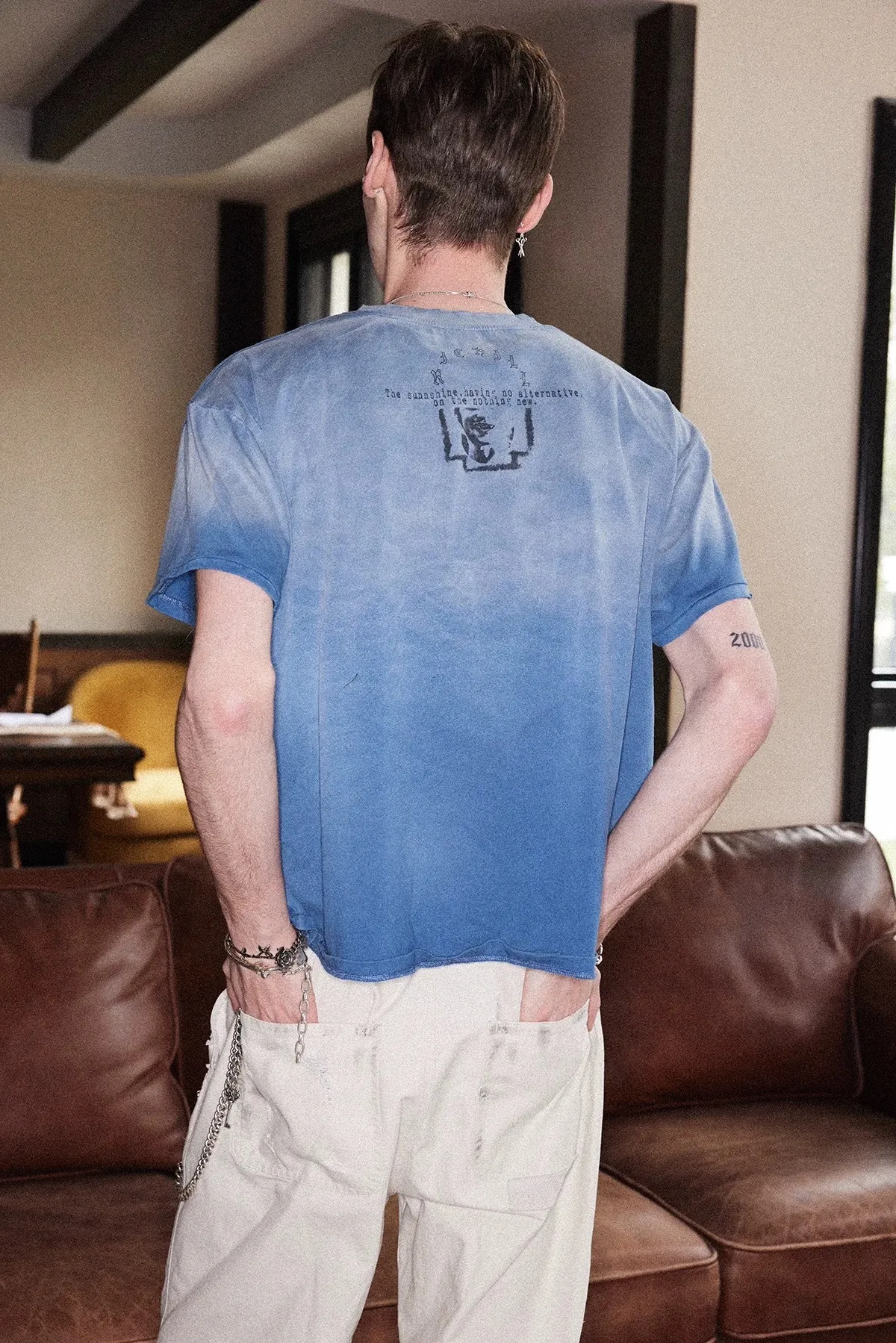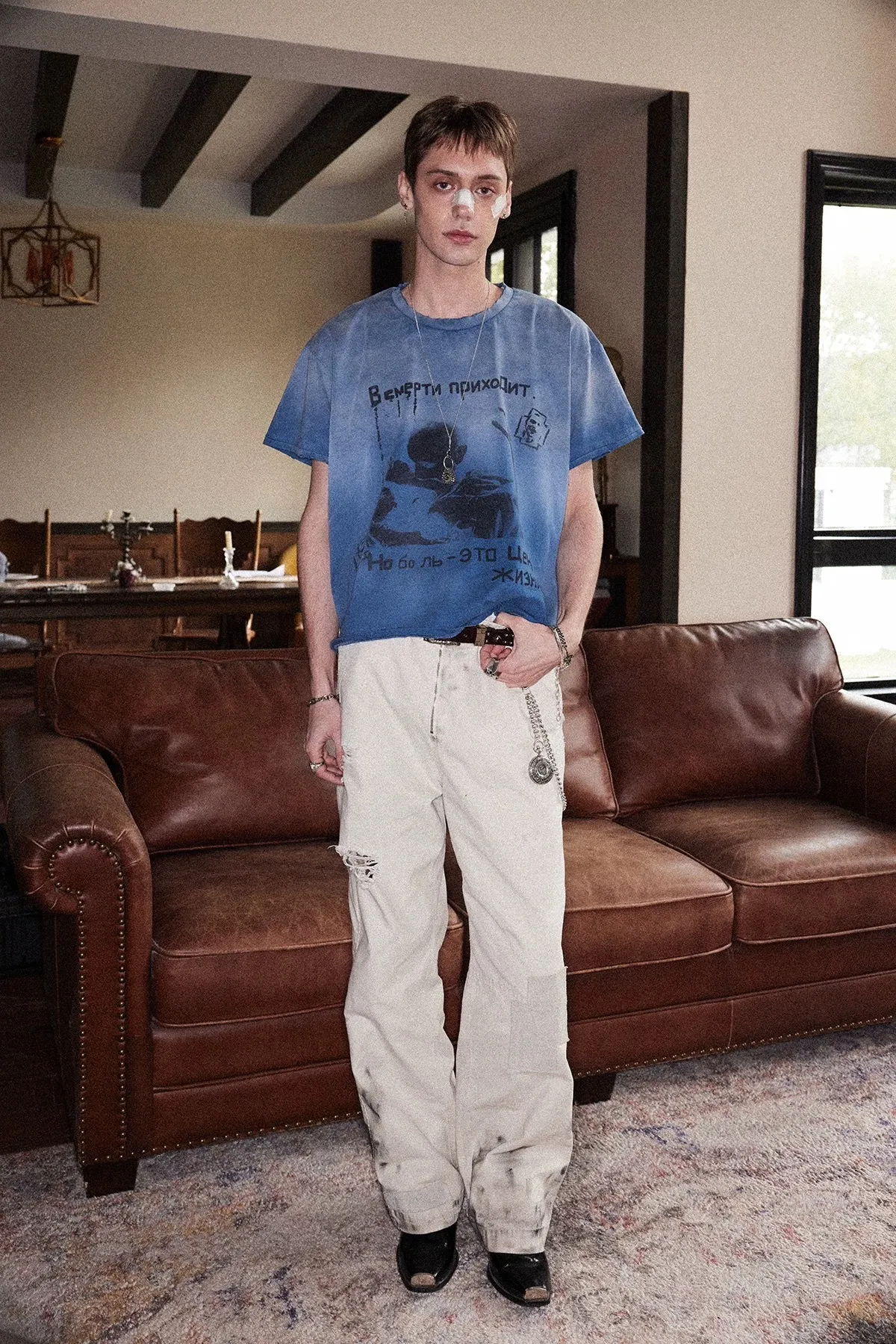 RICHILL 俄文 吸血鬼 水洗破壞 短袖(霧藍色)