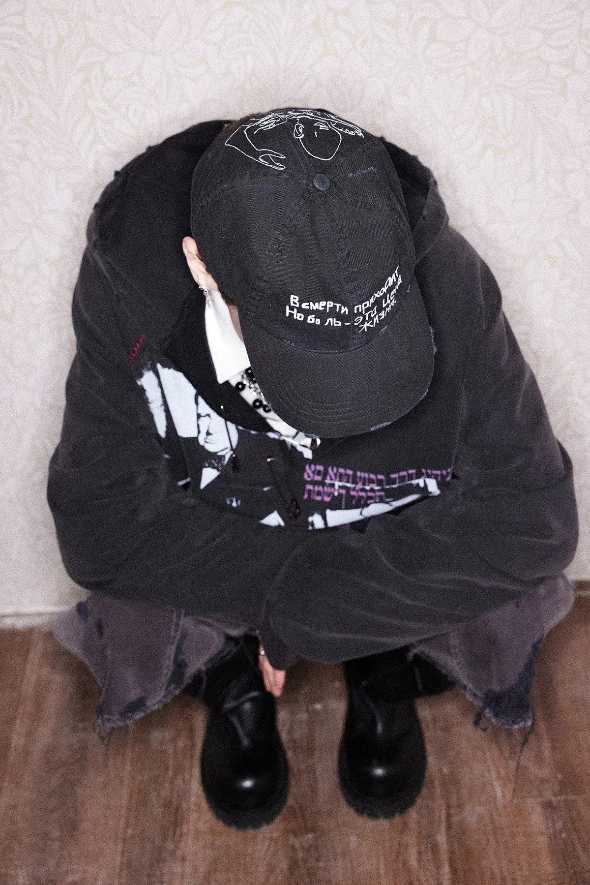 RICHILL 俄文 吸血鬼刺繡 水洗破壞 帽(黑色)