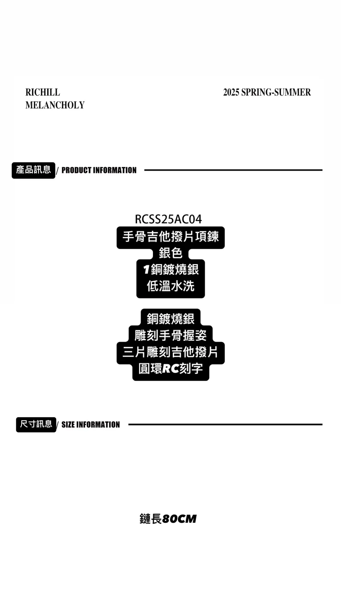 RICHILL 手骨 吉他撥片 吊墜 項鍊(古銀色)