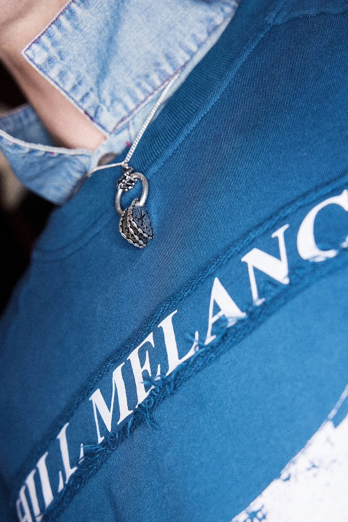 RICHILL 俄文 吸血鬼 水洗破壞 短袖(霧藍色)