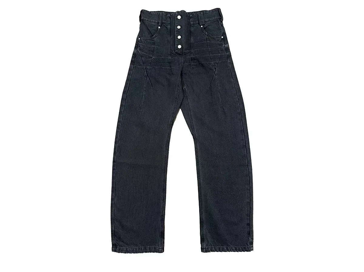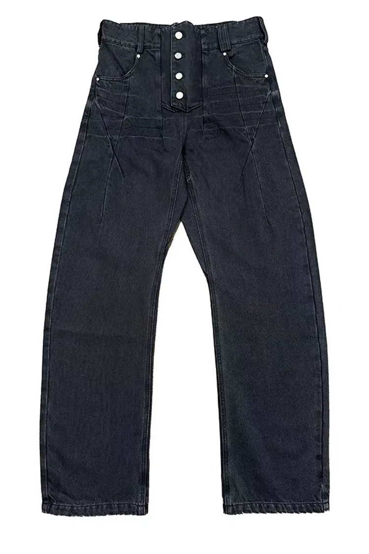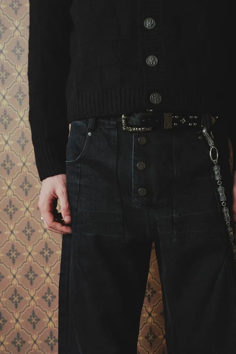 RICHILL 閃電紋 水洗彎刀 牛仔褲(黑色)