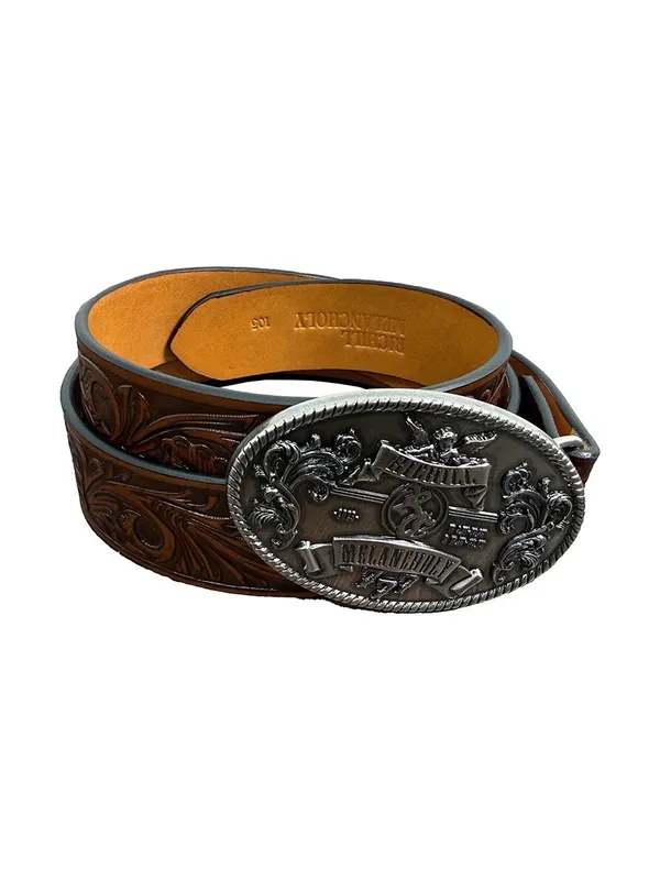 RICHILL 義大利牛皮 雕花金屬 皮帶(棕色)