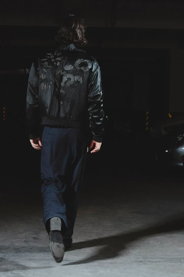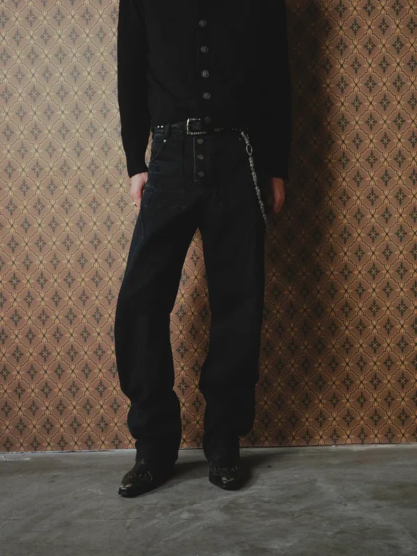 RICHILL 閃電紋 水洗彎刀 牛仔褲(黑色)
