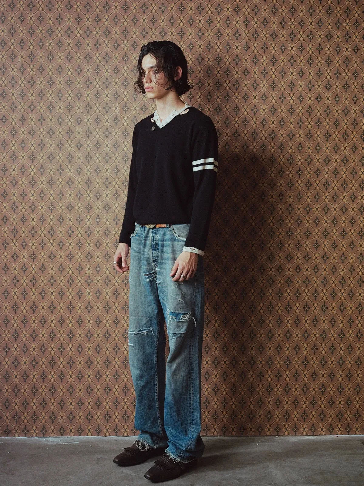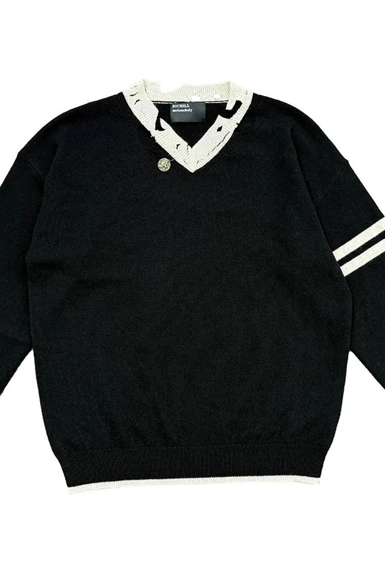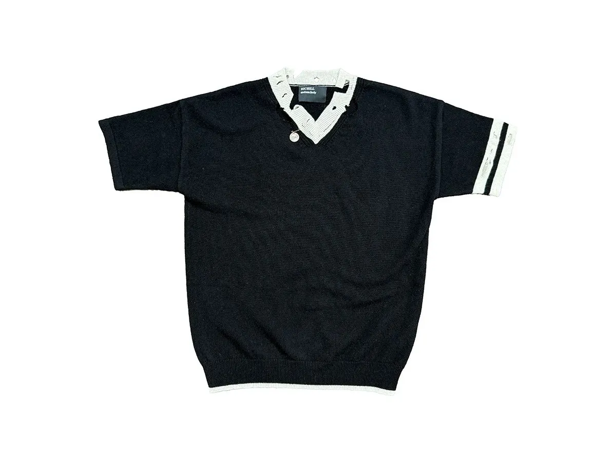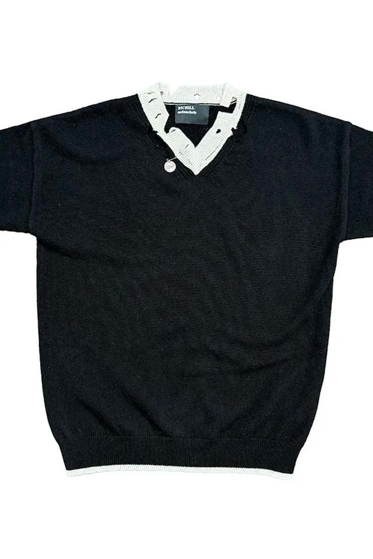RICHILL 紅銅古幣 小V領破壞 針織毛衣(短袖/長袖)