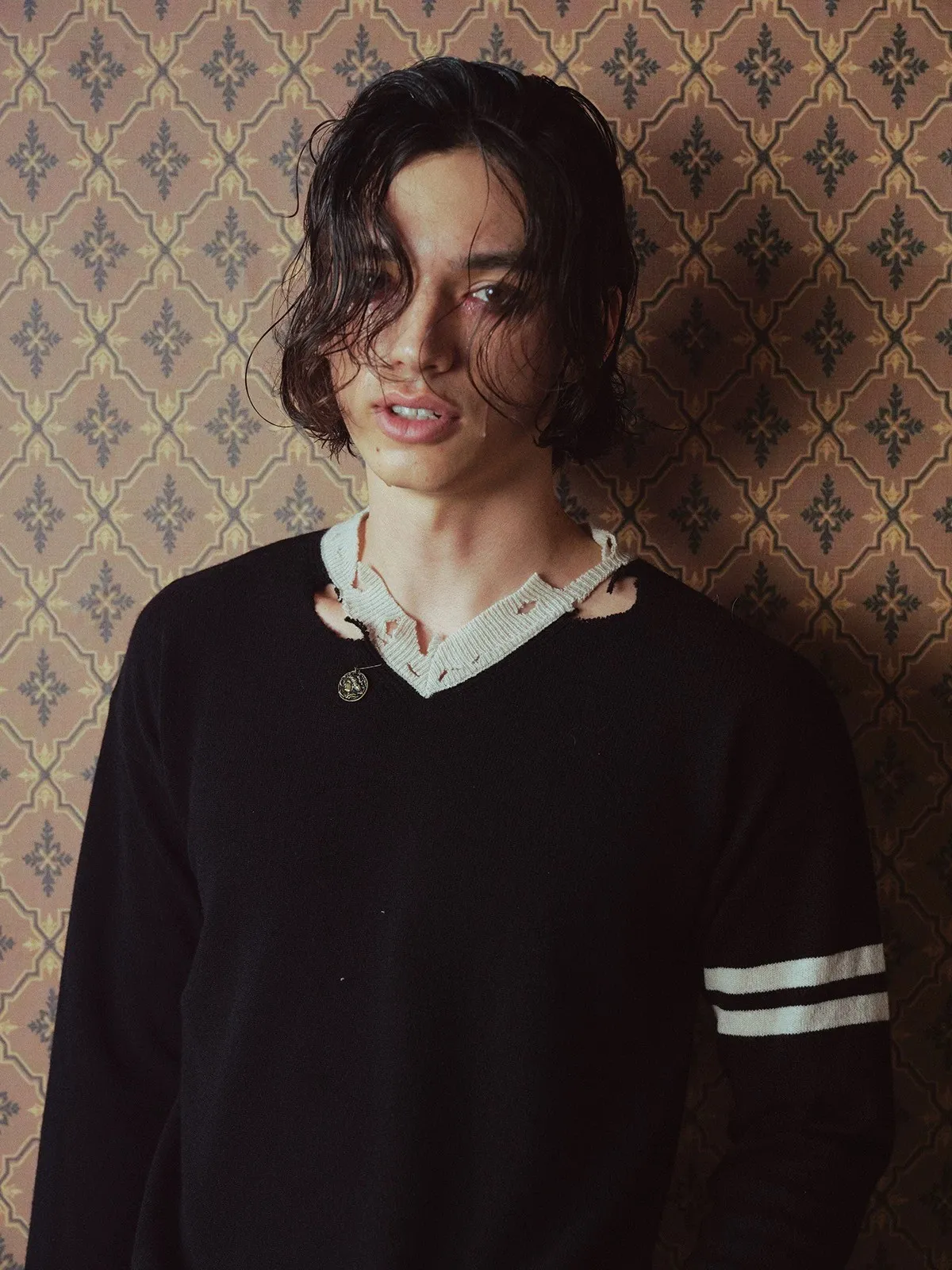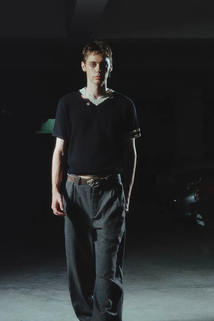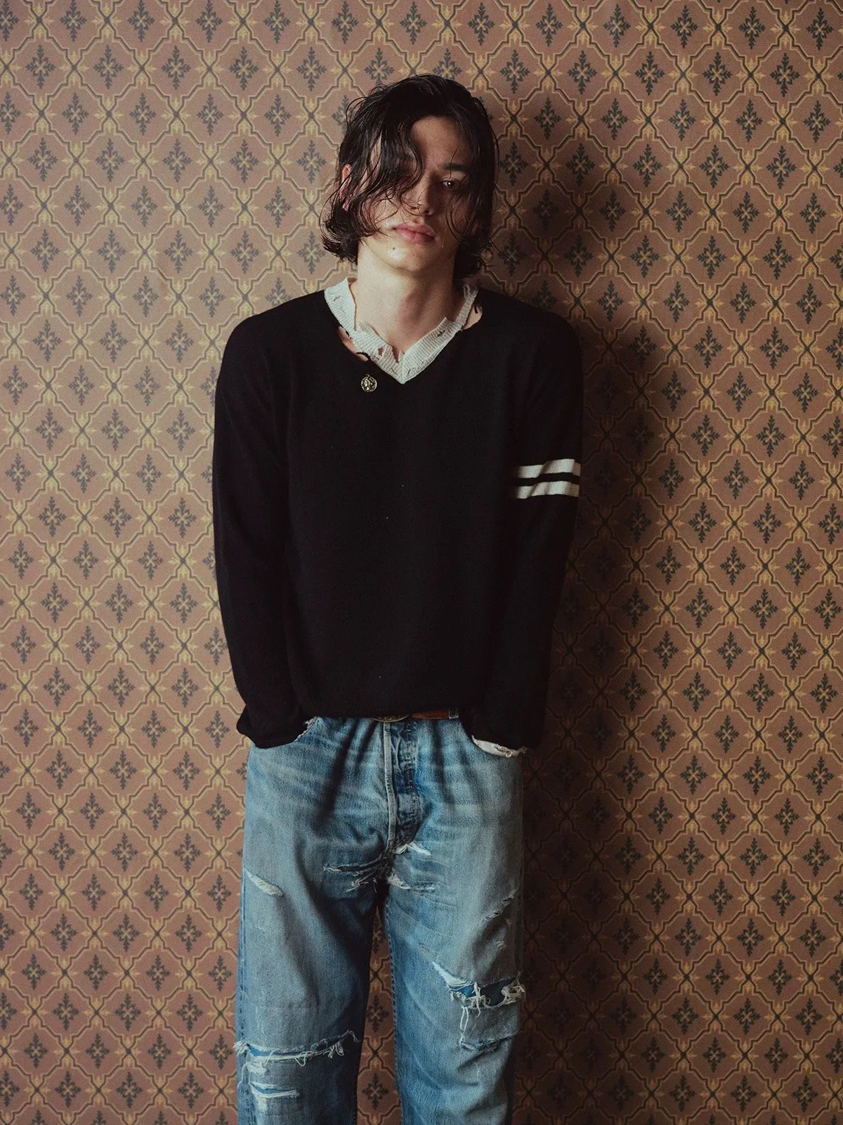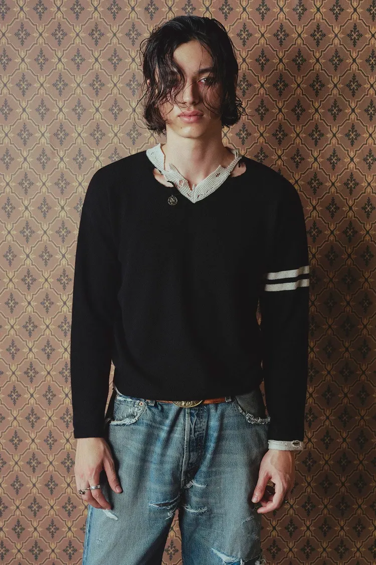 RICHILL 紅銅古幣 小V領破壞 針織毛衣(短袖/長袖)