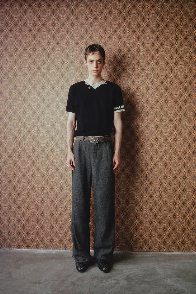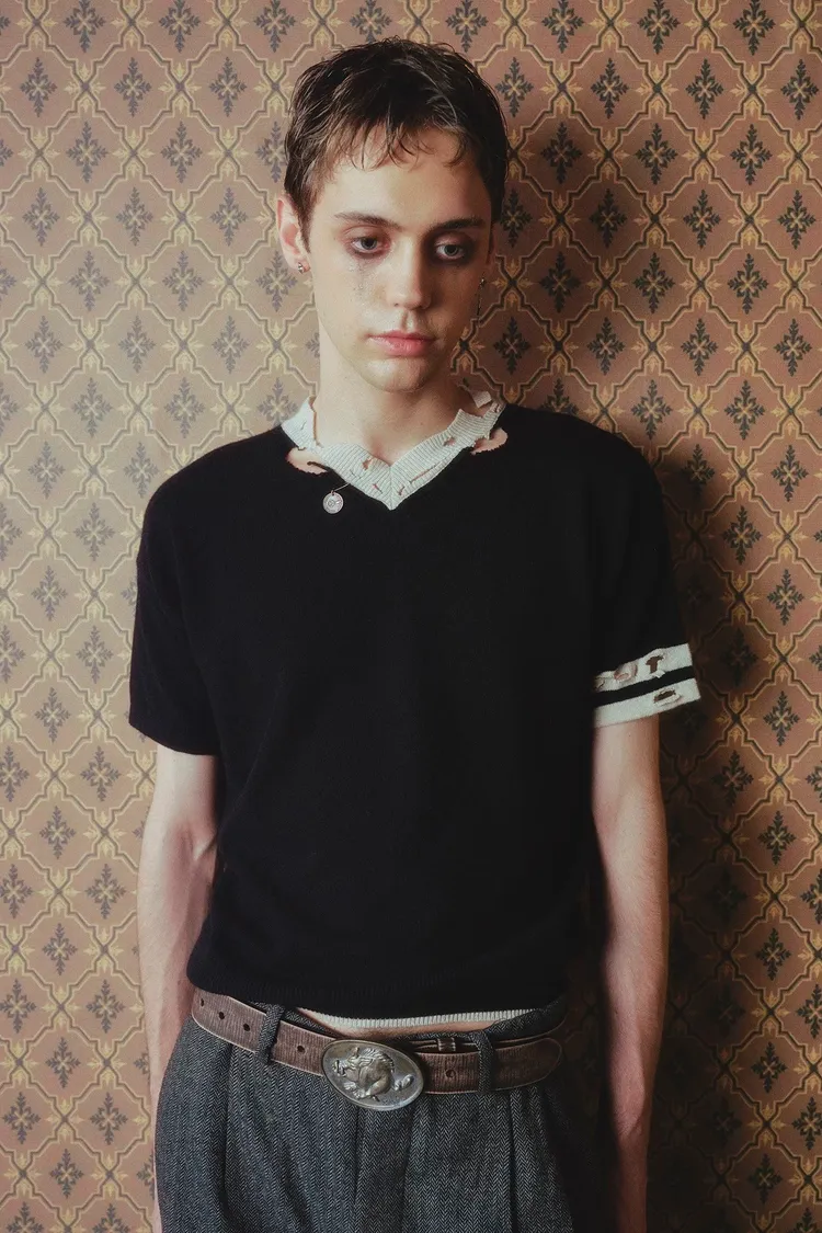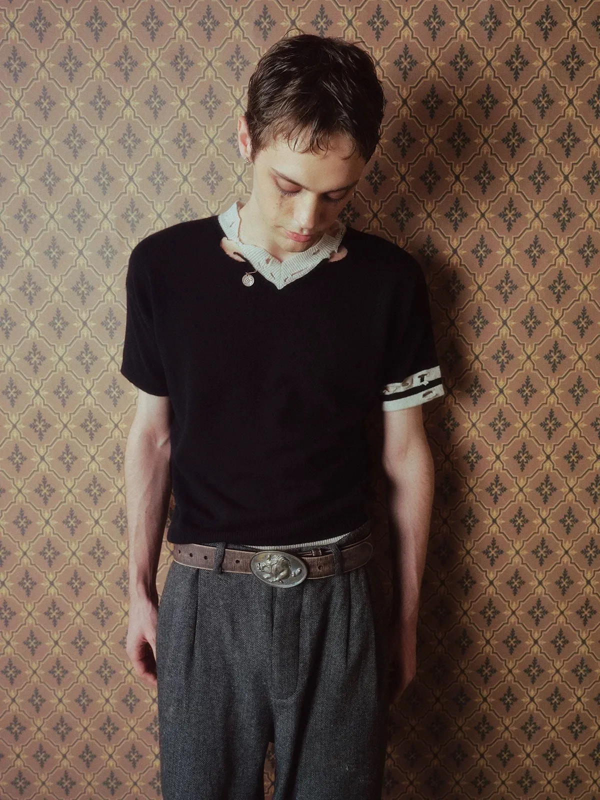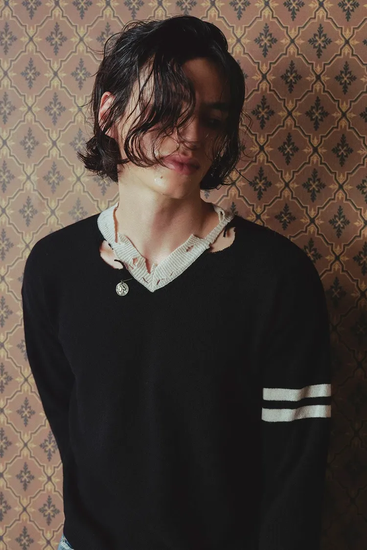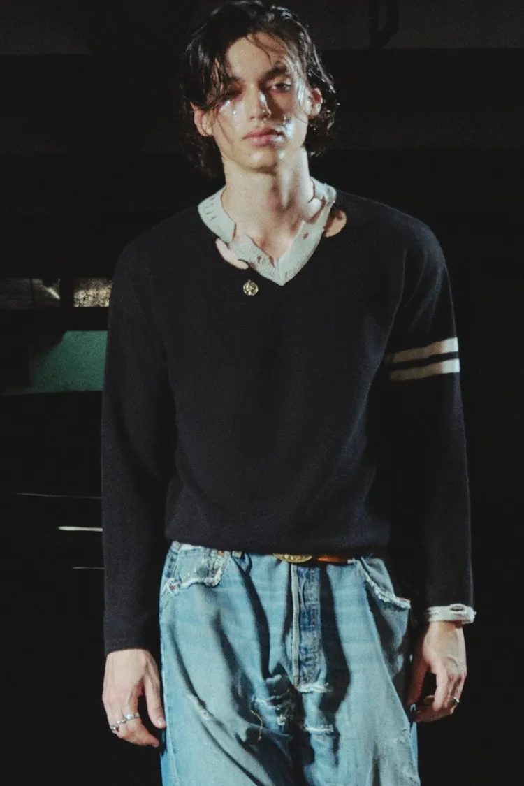 RICHILL 紅銅古幣 小V領破壞 針織毛衣(短袖/長袖)
