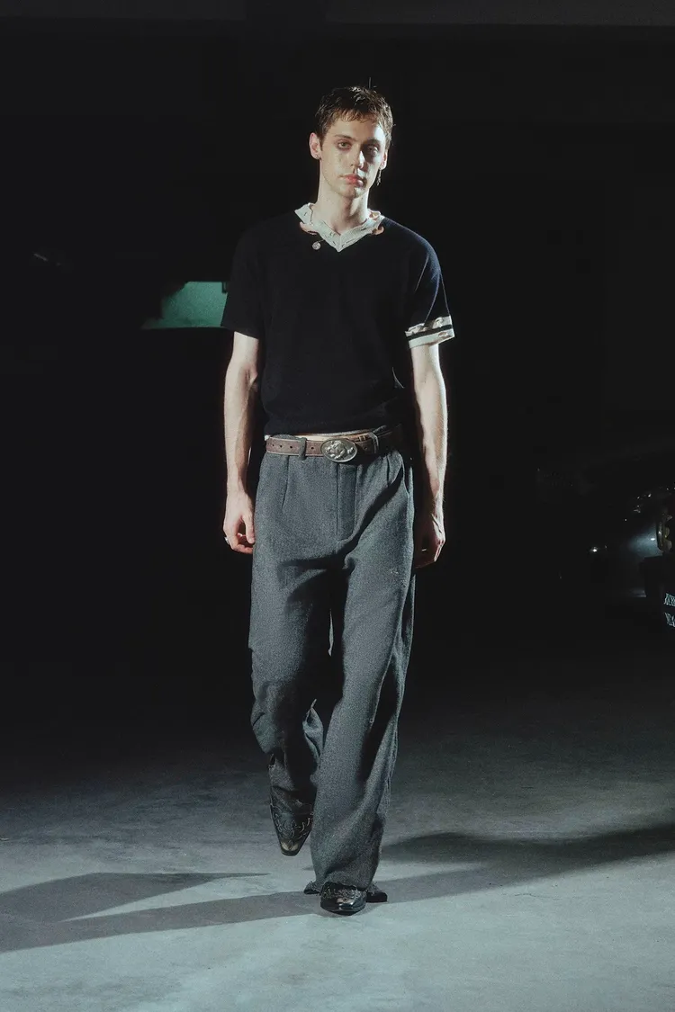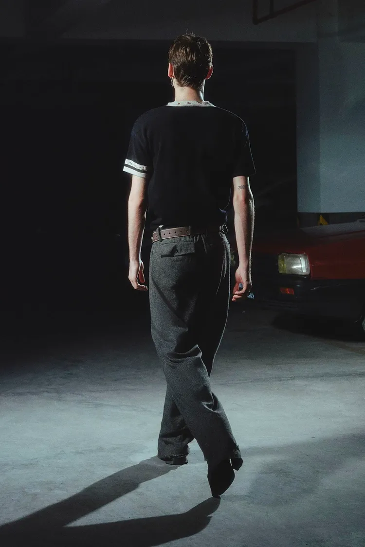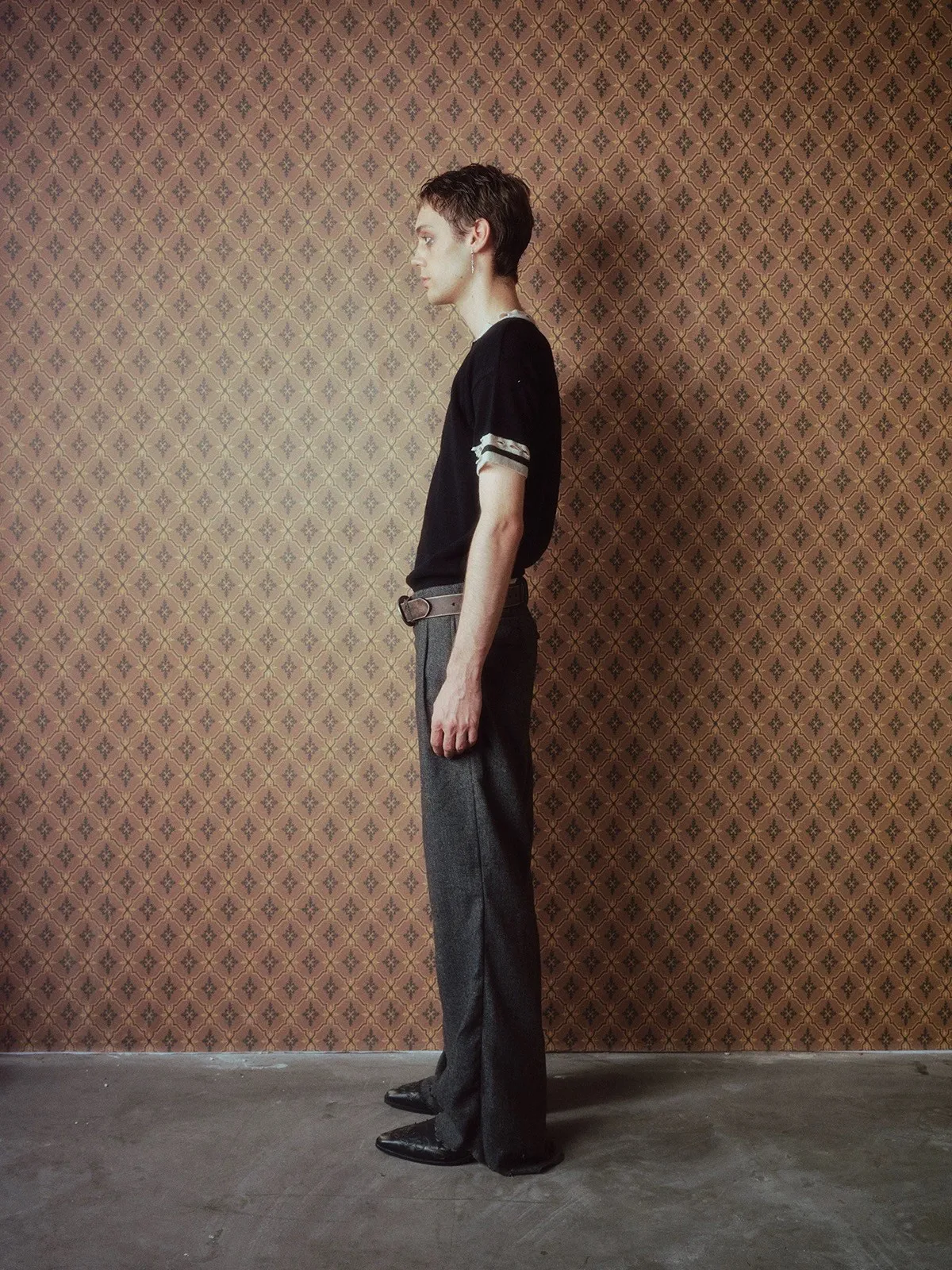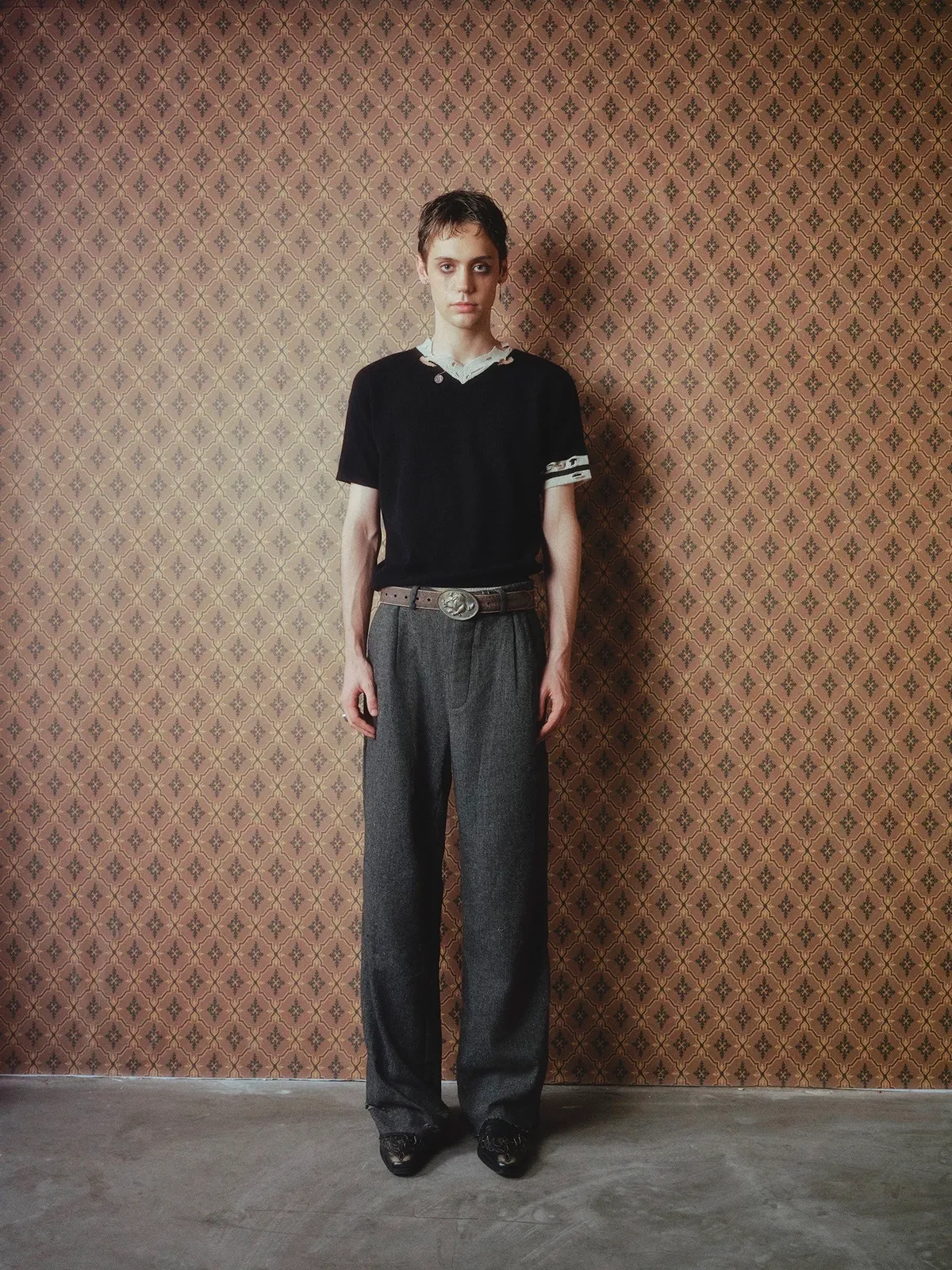 RICHILL 髒泥破壞 魚骨紋 西裝褲(深灰)