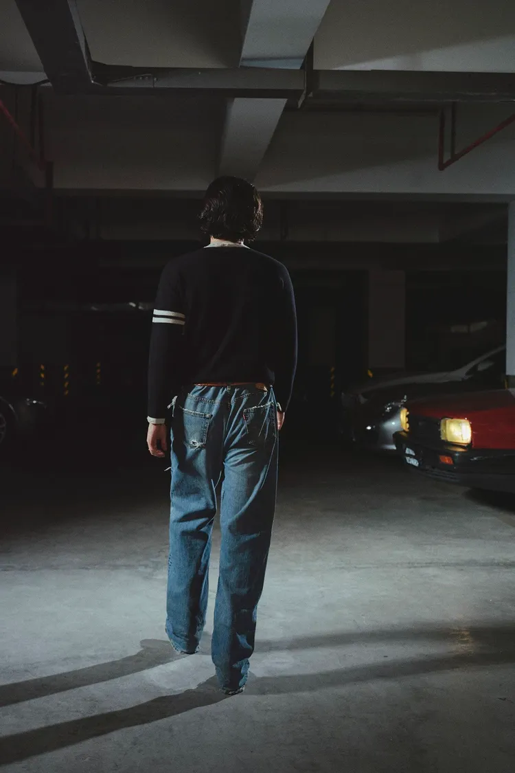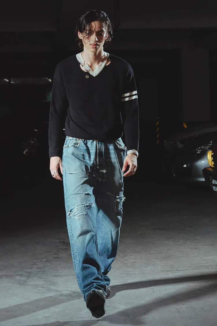 RICHILL 閃電紋 水洗彎刀 牛仔褲(黑色)