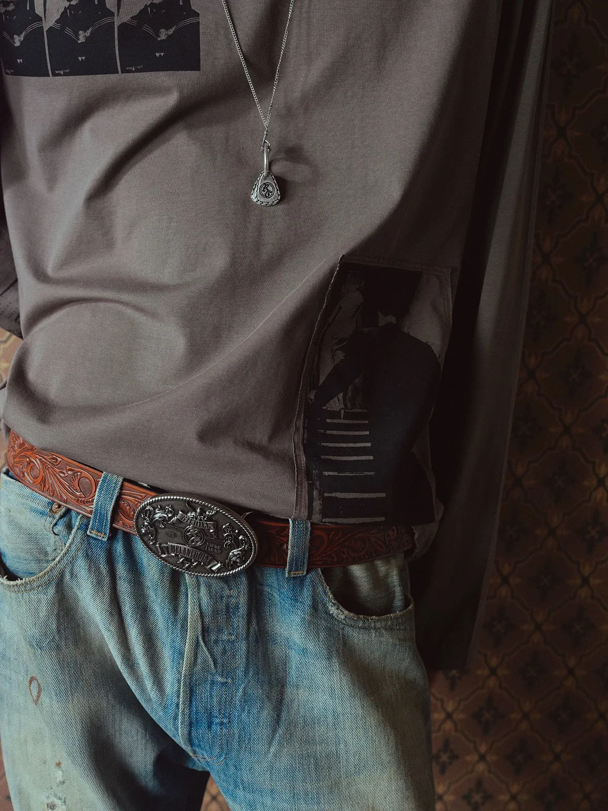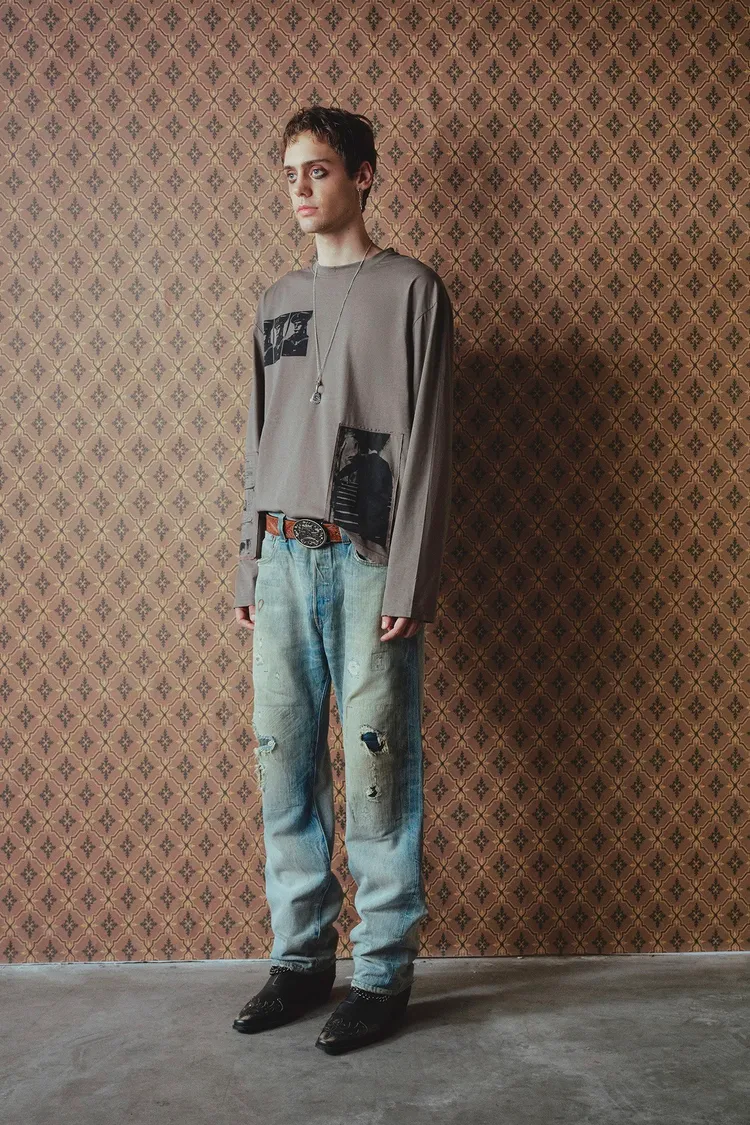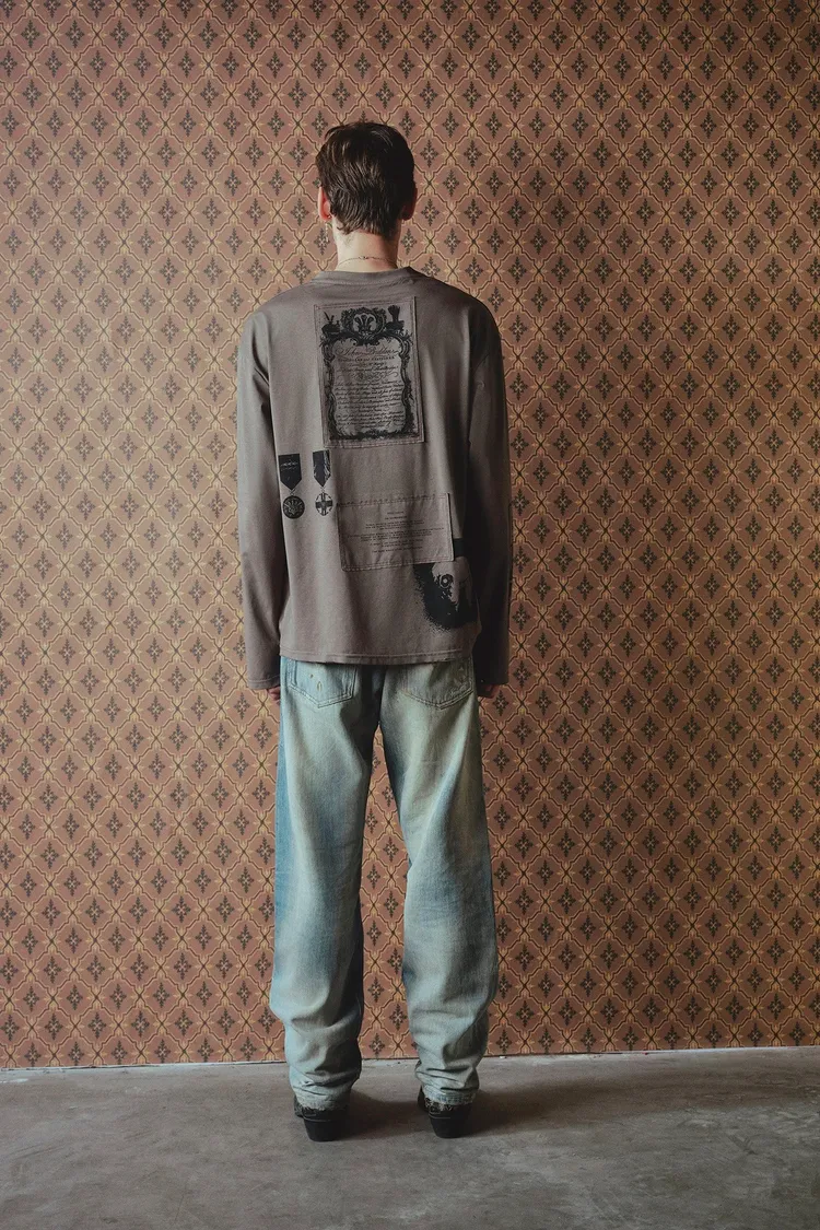 RICHILL 拼色布章 水洗印花 長袖(棕藍)