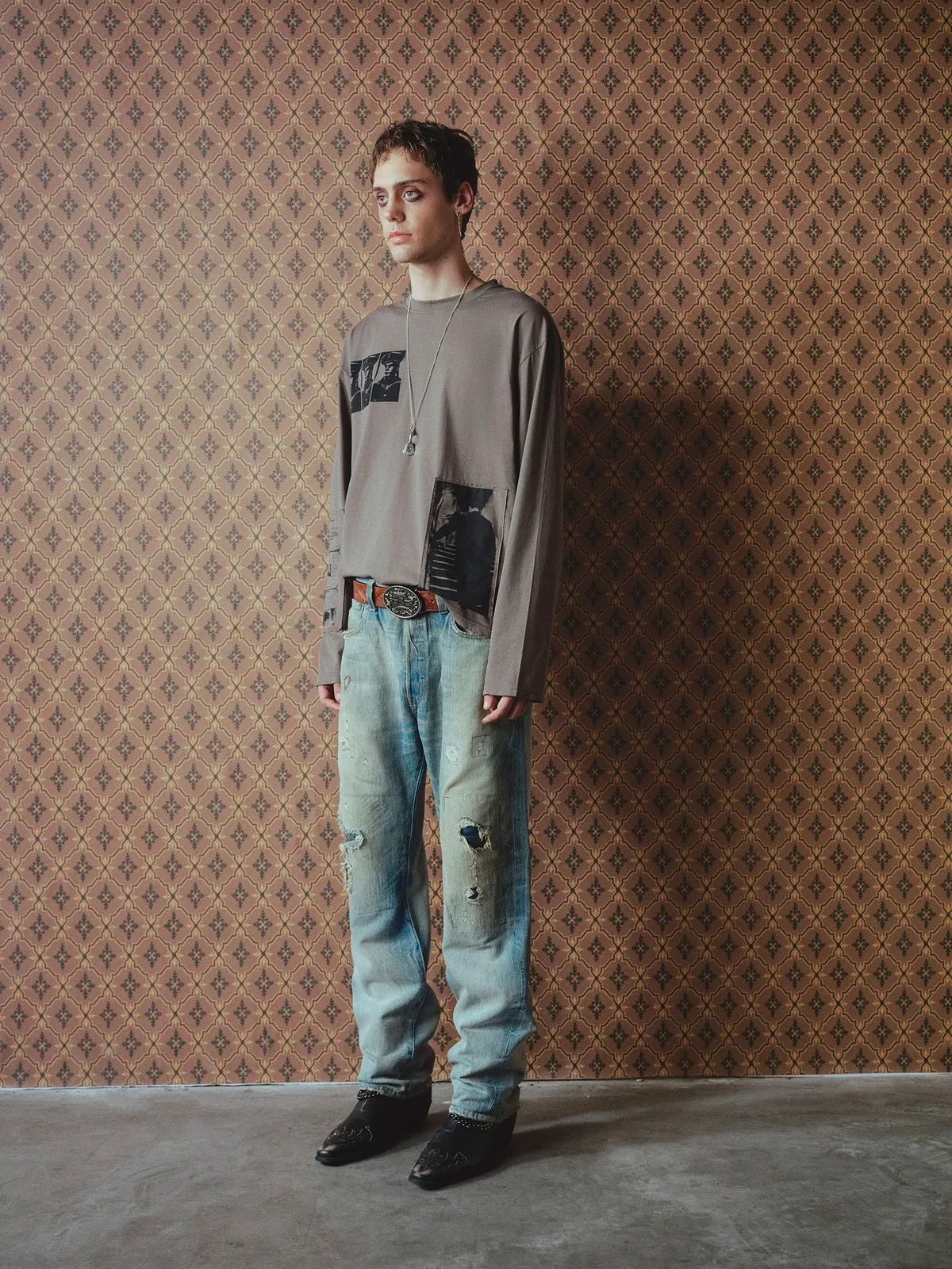 RICHILL 破壞拼接 LOGO 華夫格 長袖(黑白)