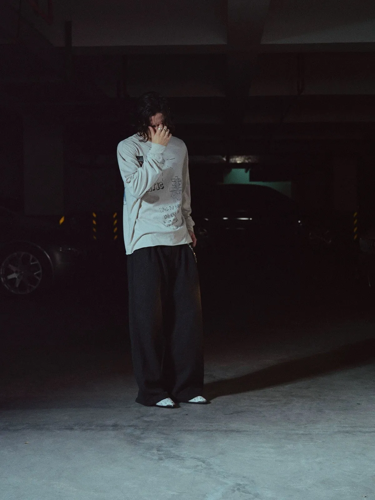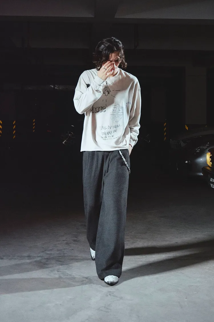 RICHILL 髒泥破壞 魚骨紋 西裝褲(深灰)