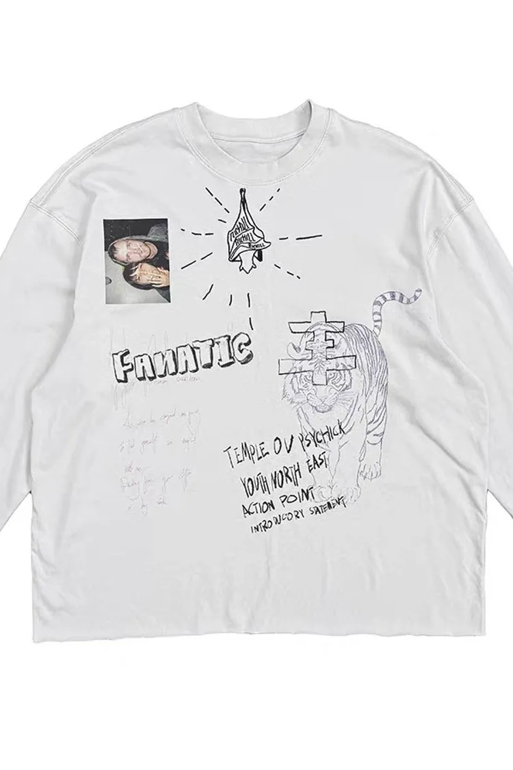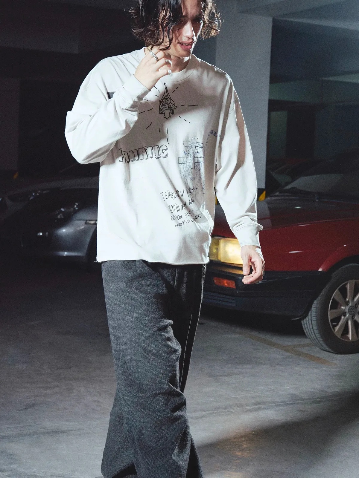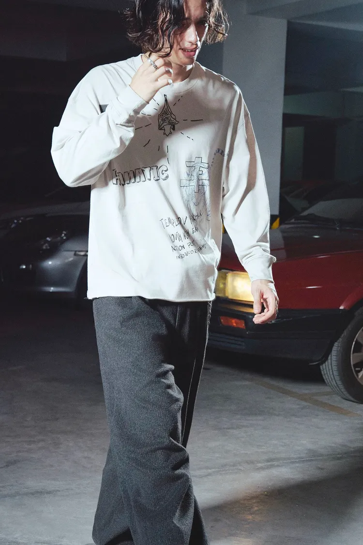 RICHILL 手繪插圖 人像鑽石 長袖(白色)