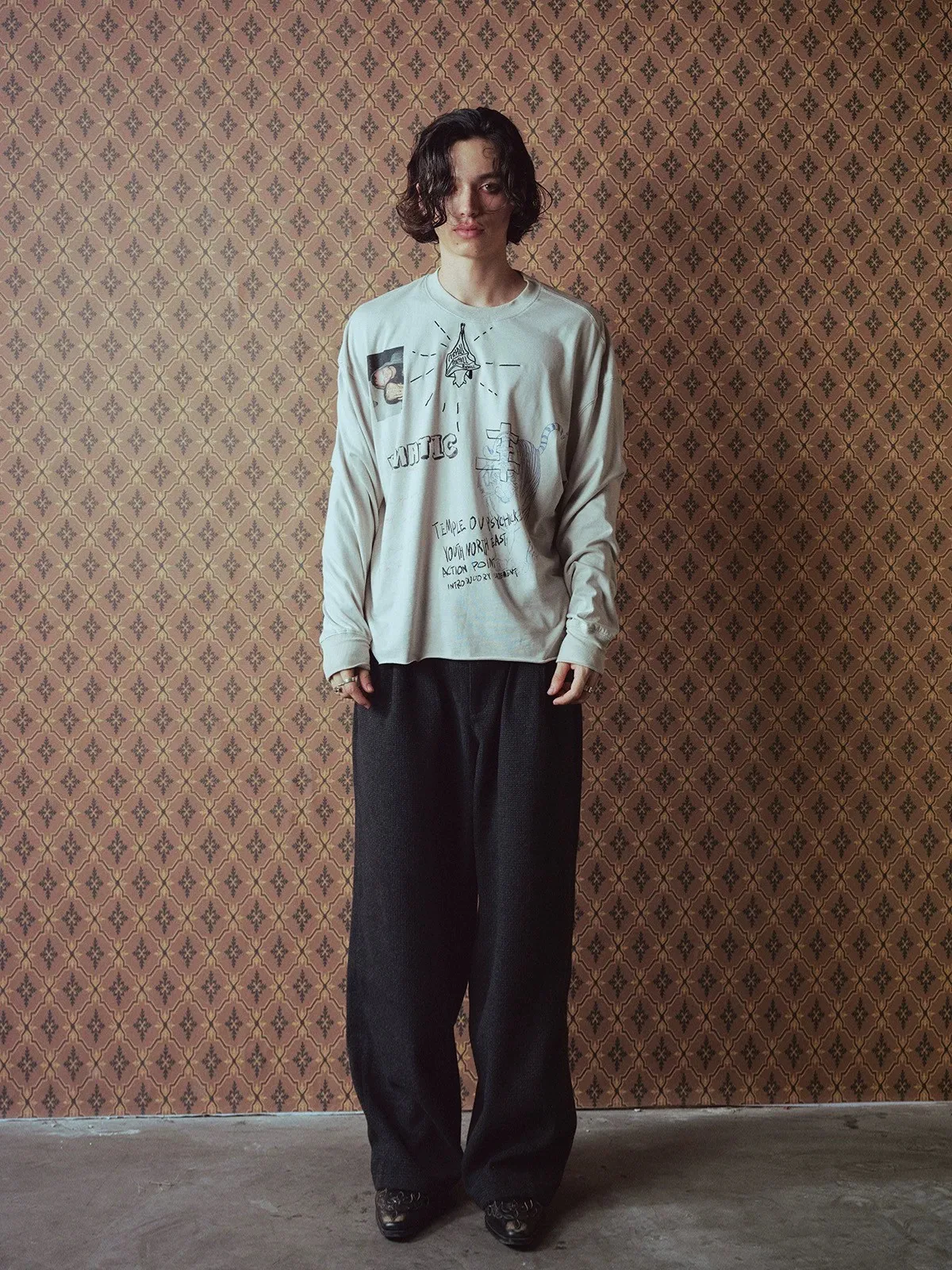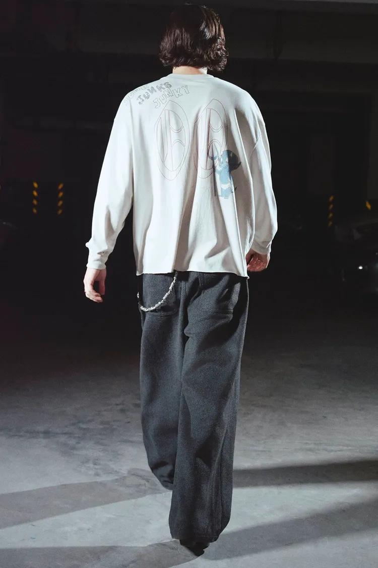RICHILL 破壞拼接 LOGO 華夫格 長袖(黑白)