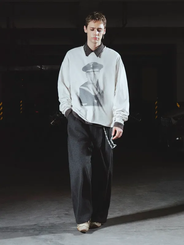RICHILL 海軍印花 圓領 長袖(白色)