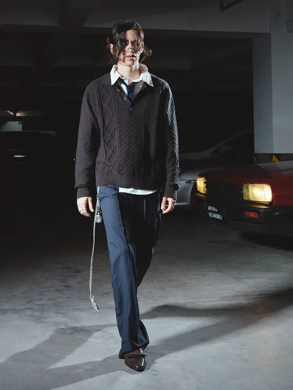 RICHILL 老錢風 翻領針織 金屬釦 POLO毛衣(黑/灰)