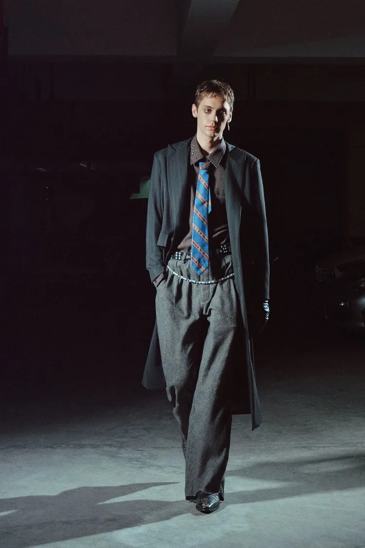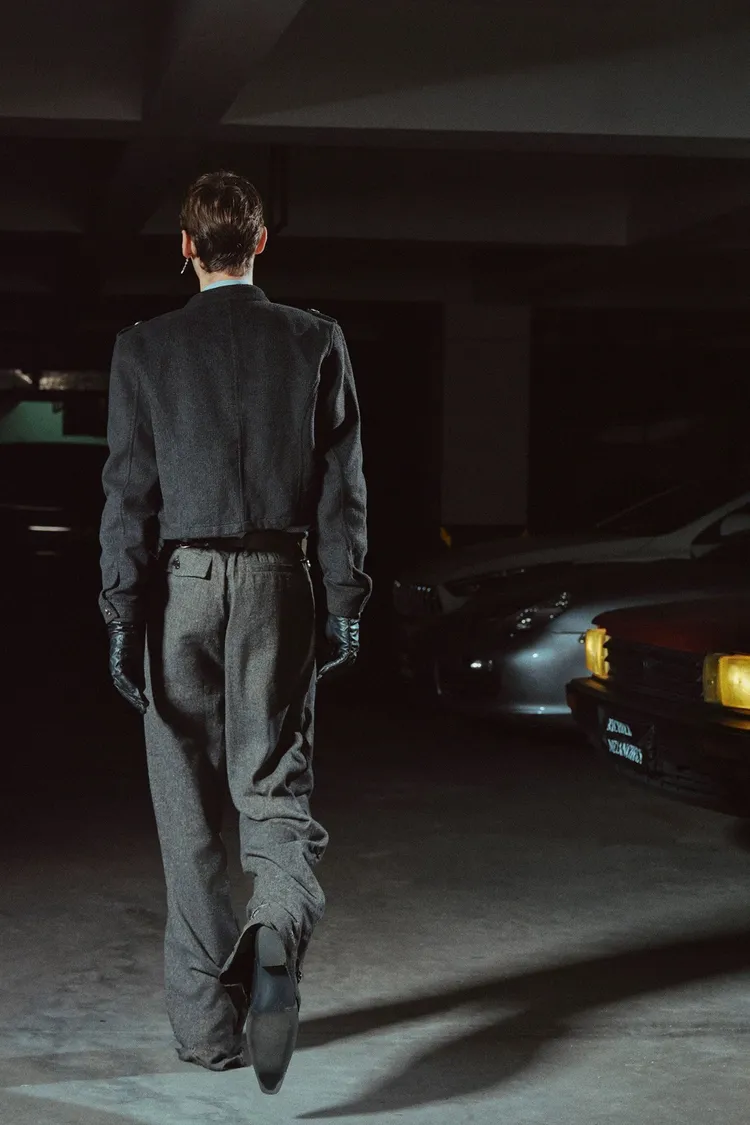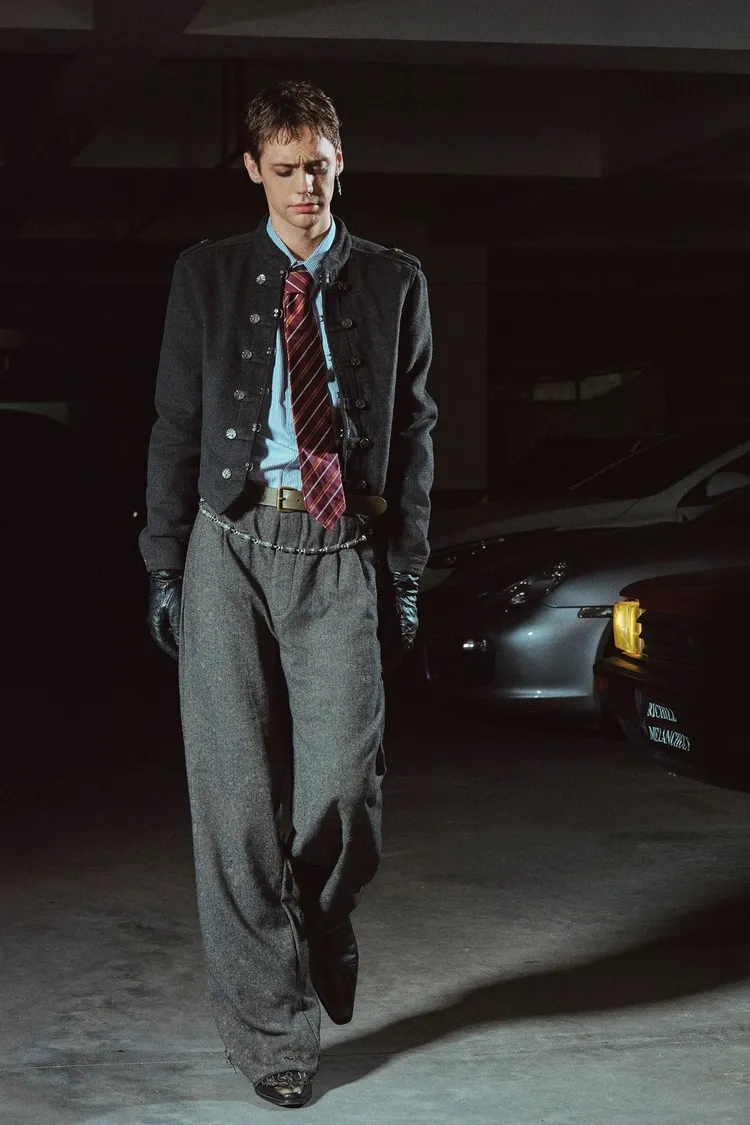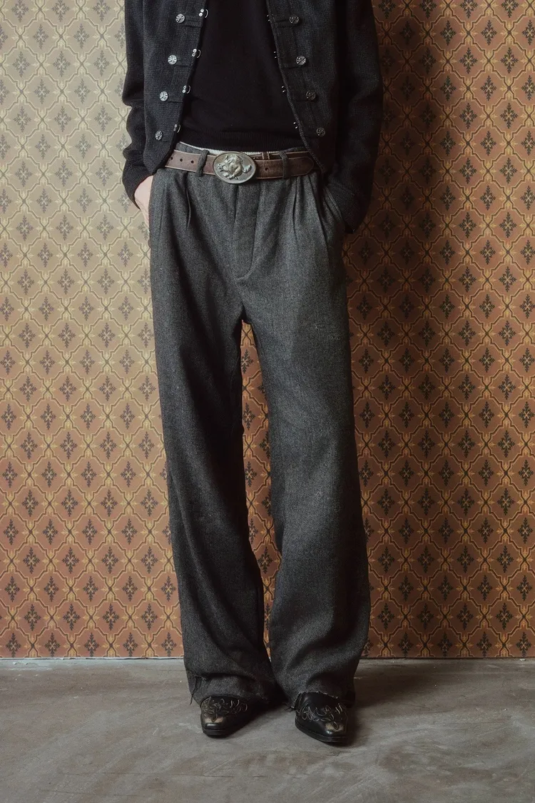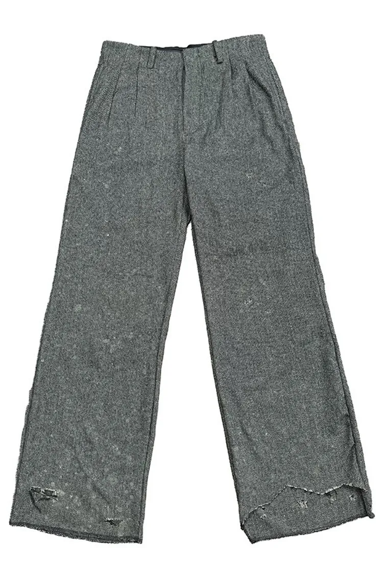 RICHILL 髒泥破壞 魚骨紋 西裝褲(深灰)