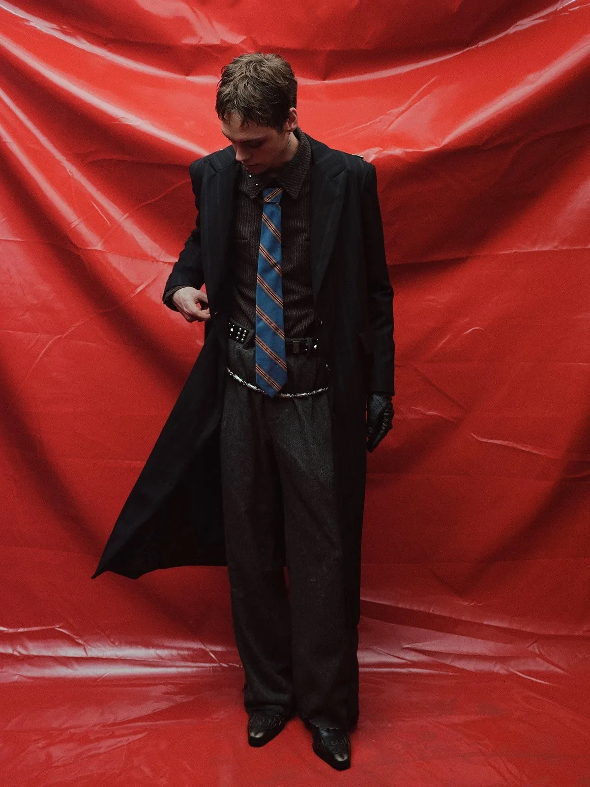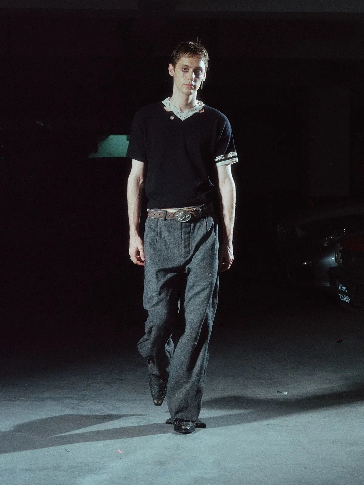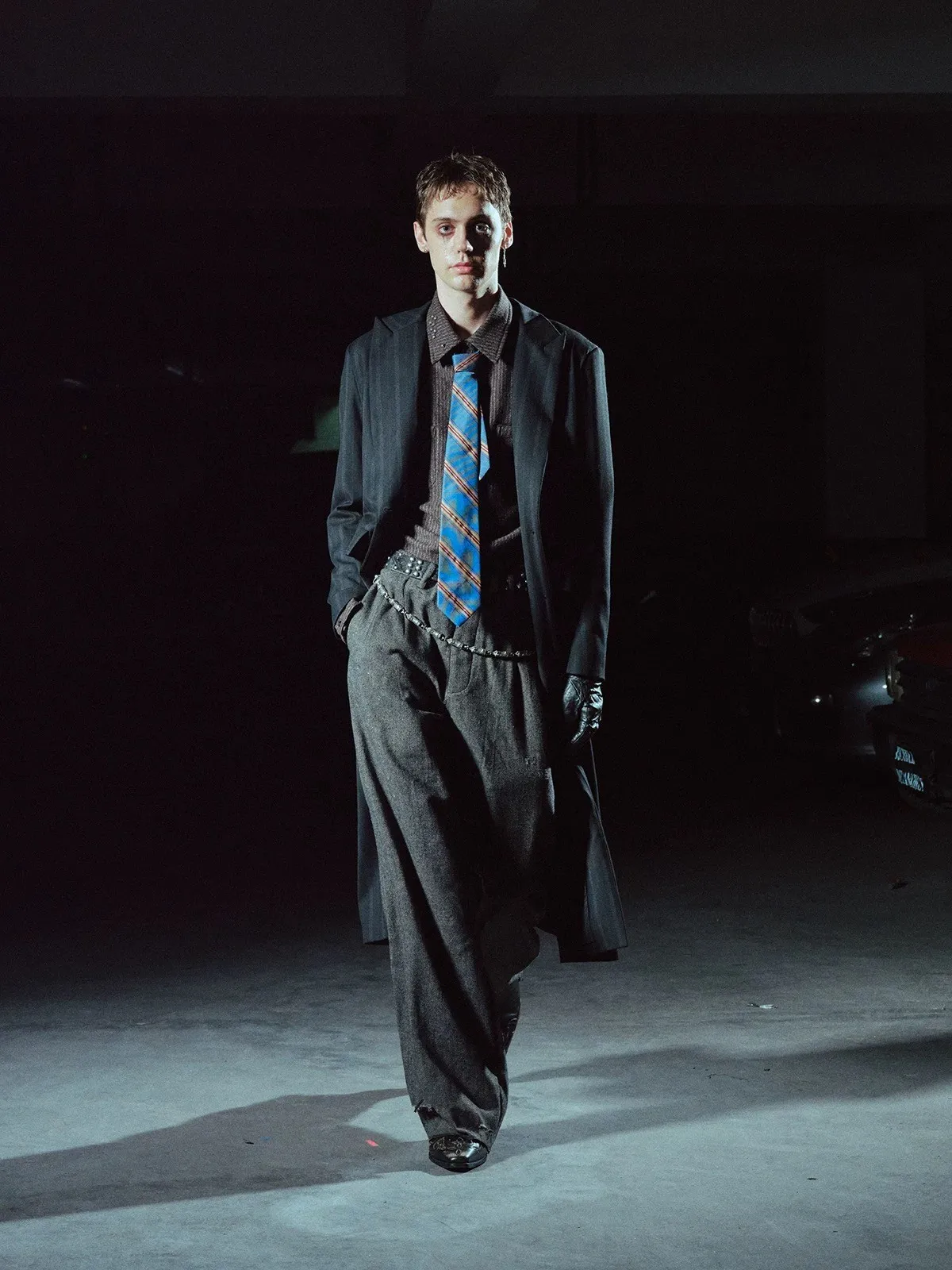 RICHILL 髒泥破壞 魚骨紋 西裝褲(深灰)