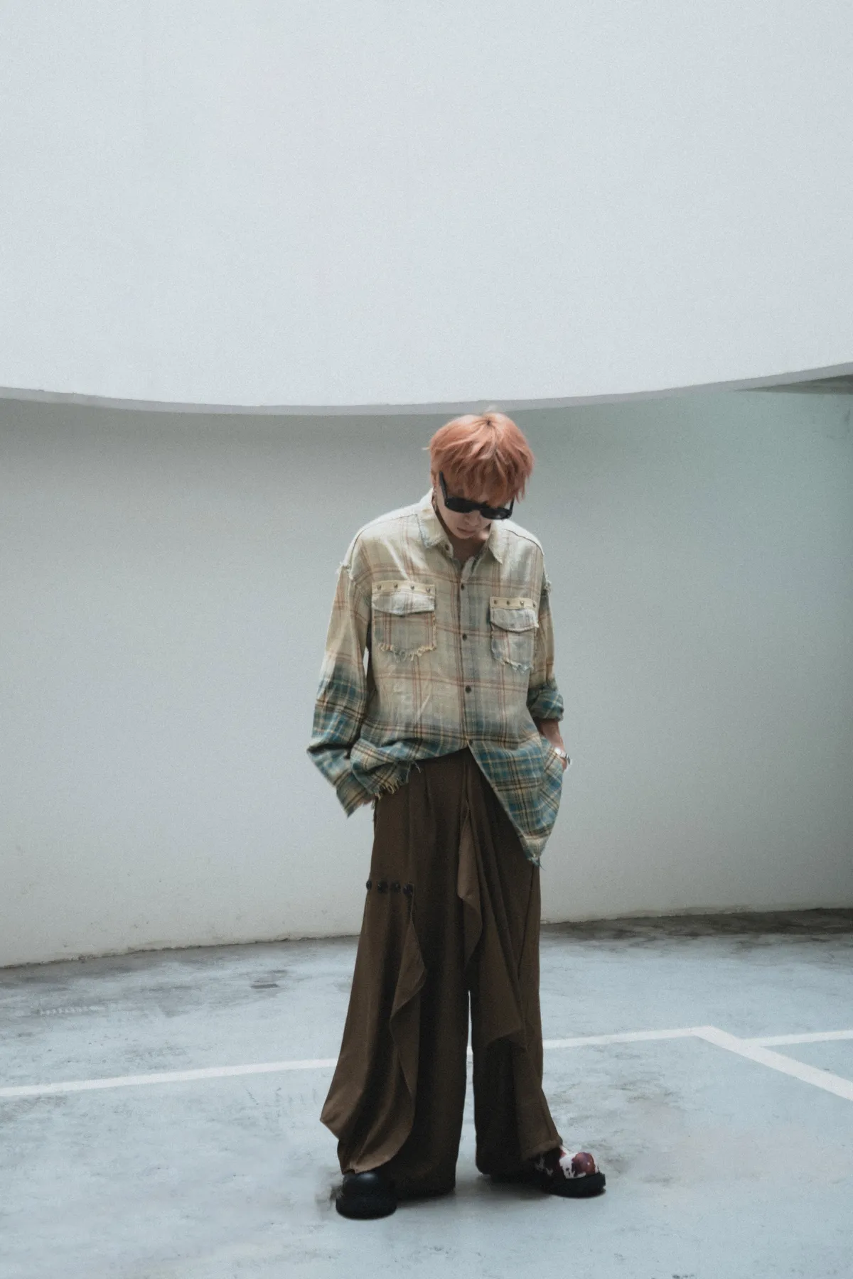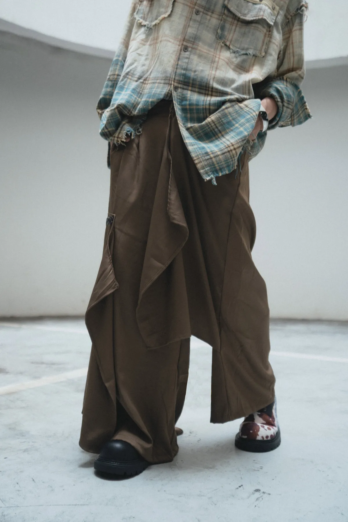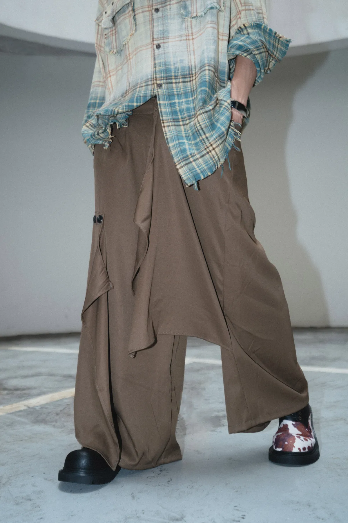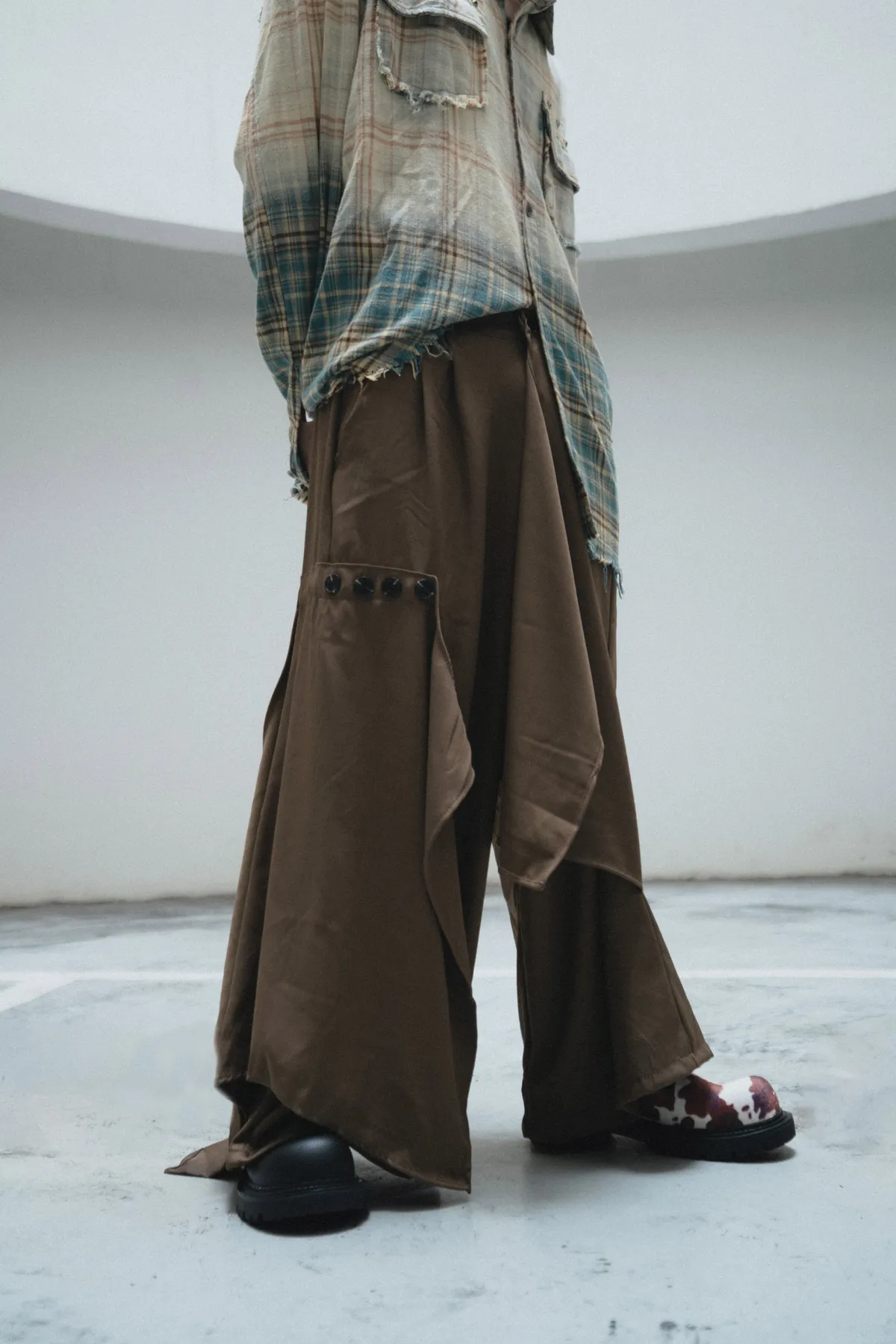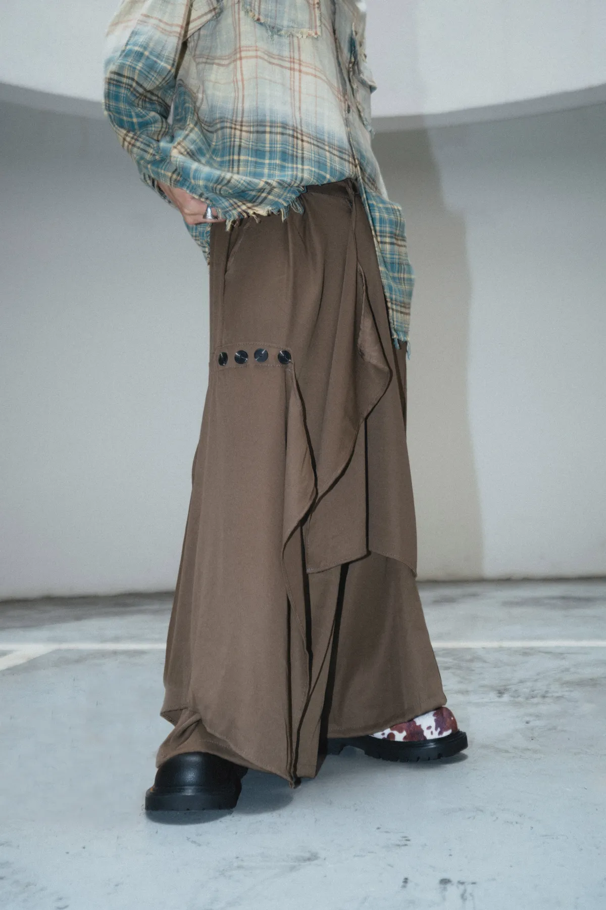 層次垂墜 鈕扣 褲裙(咖啡色)