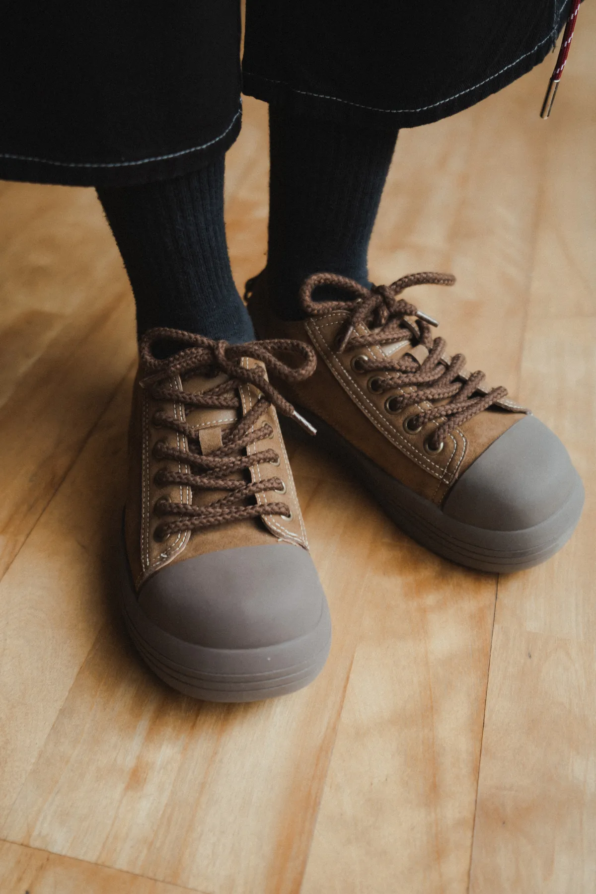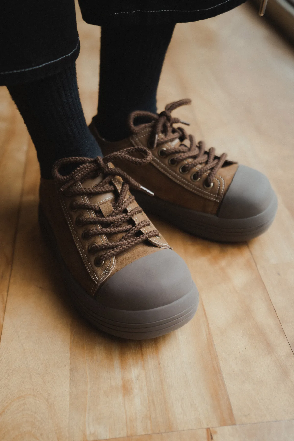 復古絨皮 米奇大頭 厚底鞋(黑/棕)