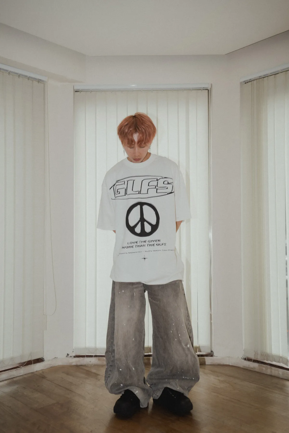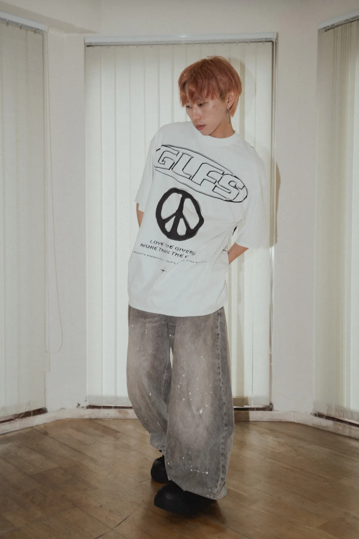 親膚天絲 不規則下擺 皺褶塗鴉 襯衫(白色)