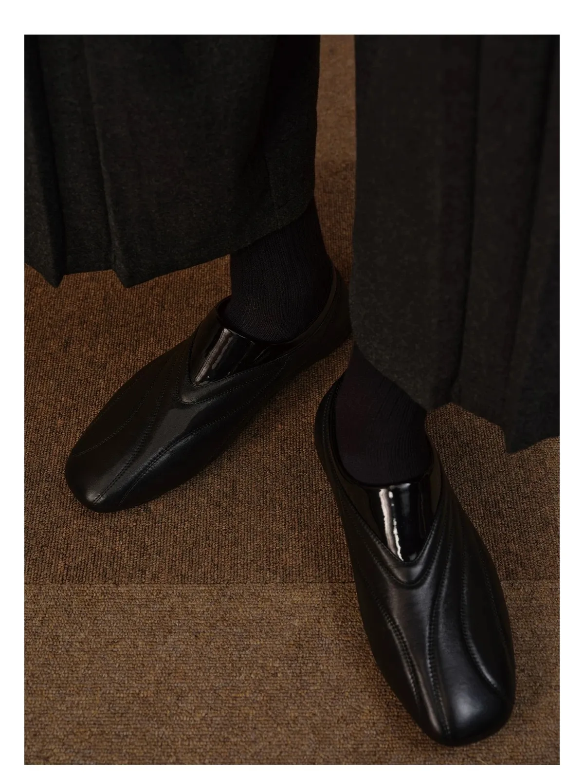 馬毛鴛鴦 厚底 德比 皮鞋(黑色)