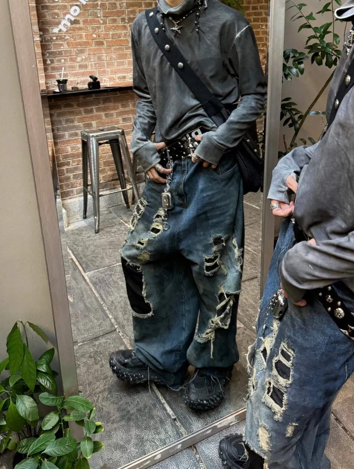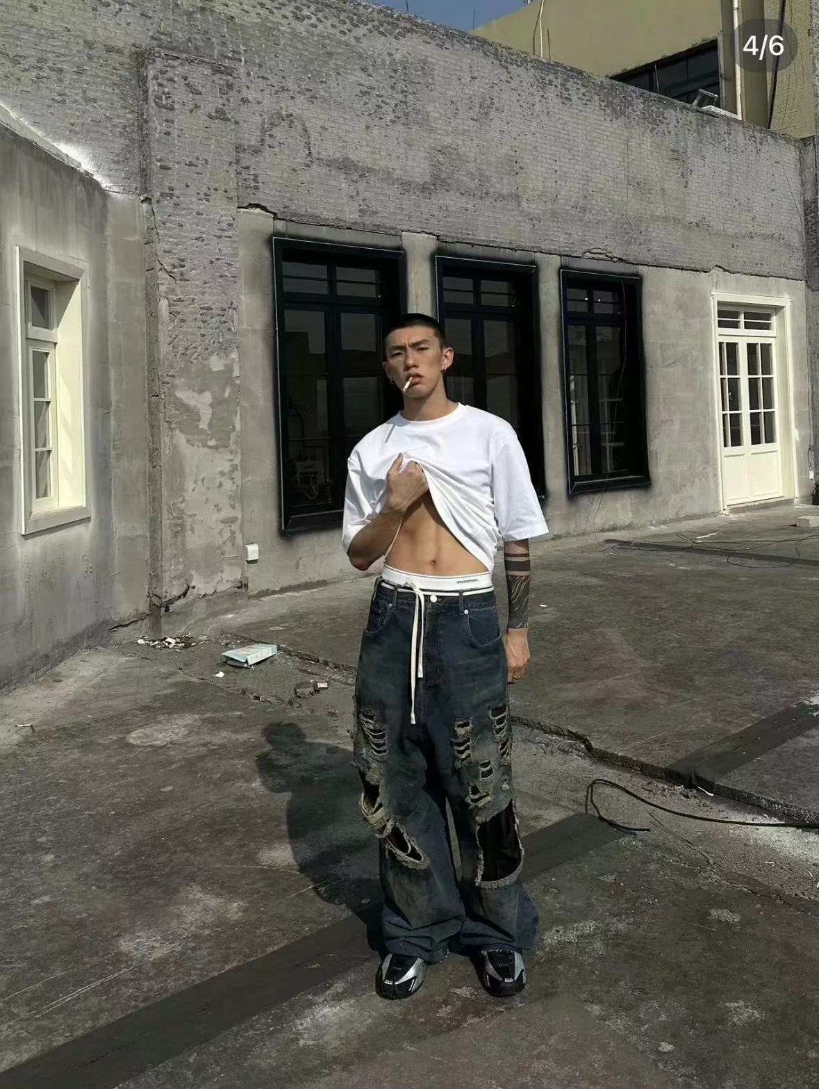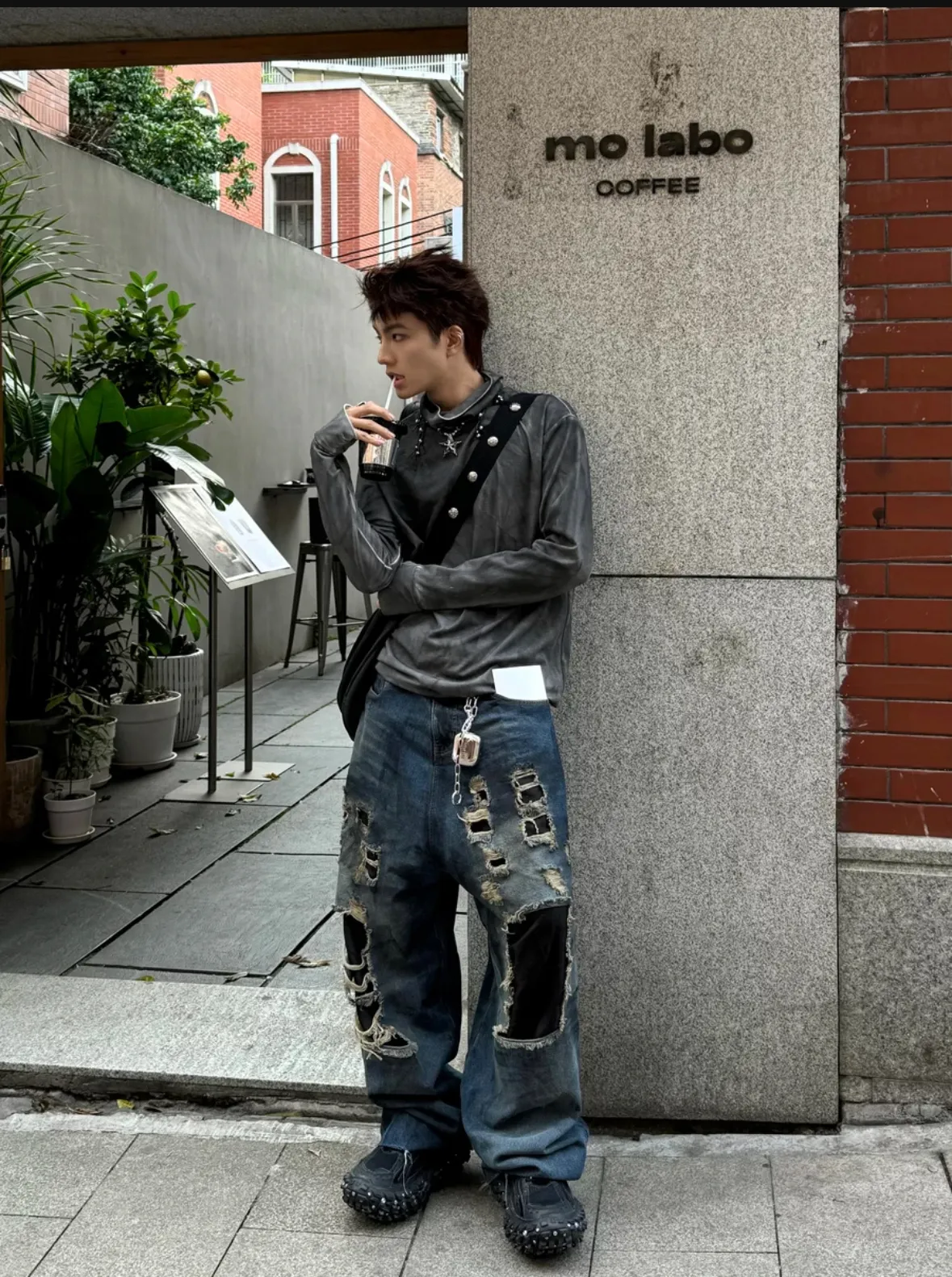 Triangle Project 泥染 破壞做舊 雙層 牛仔褲 正反兩穿