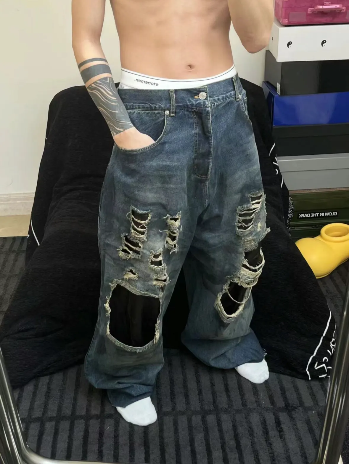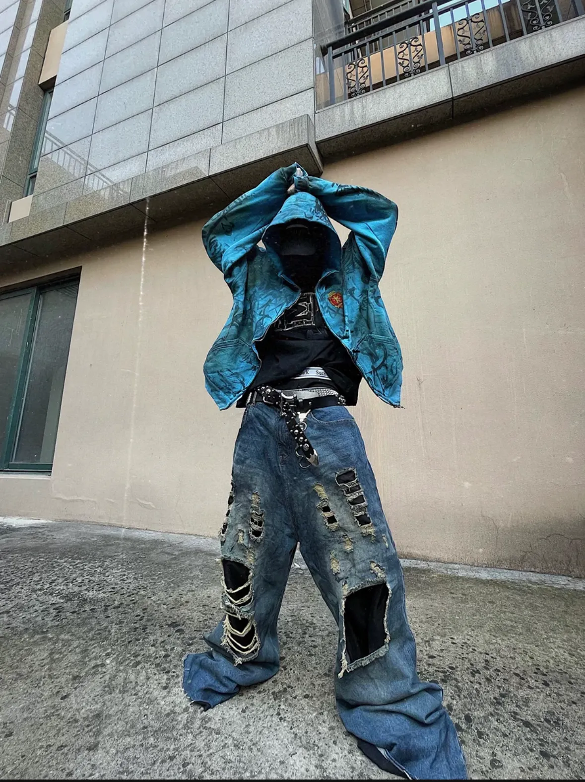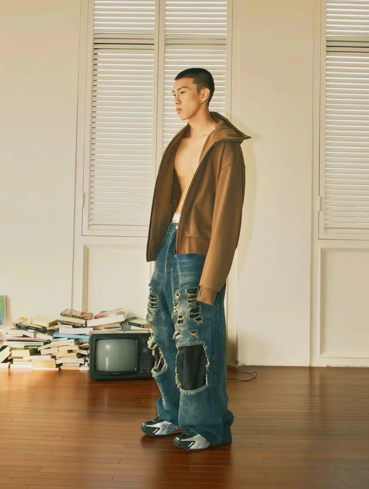 Triangle Project 泥染 破壞做舊 雙層 牛仔褲 正反兩穿