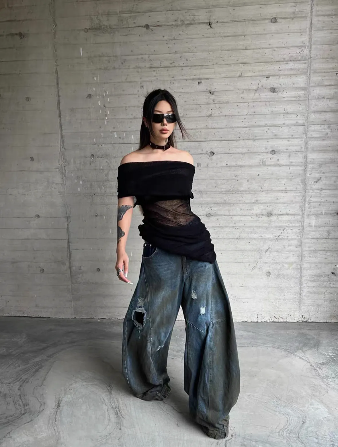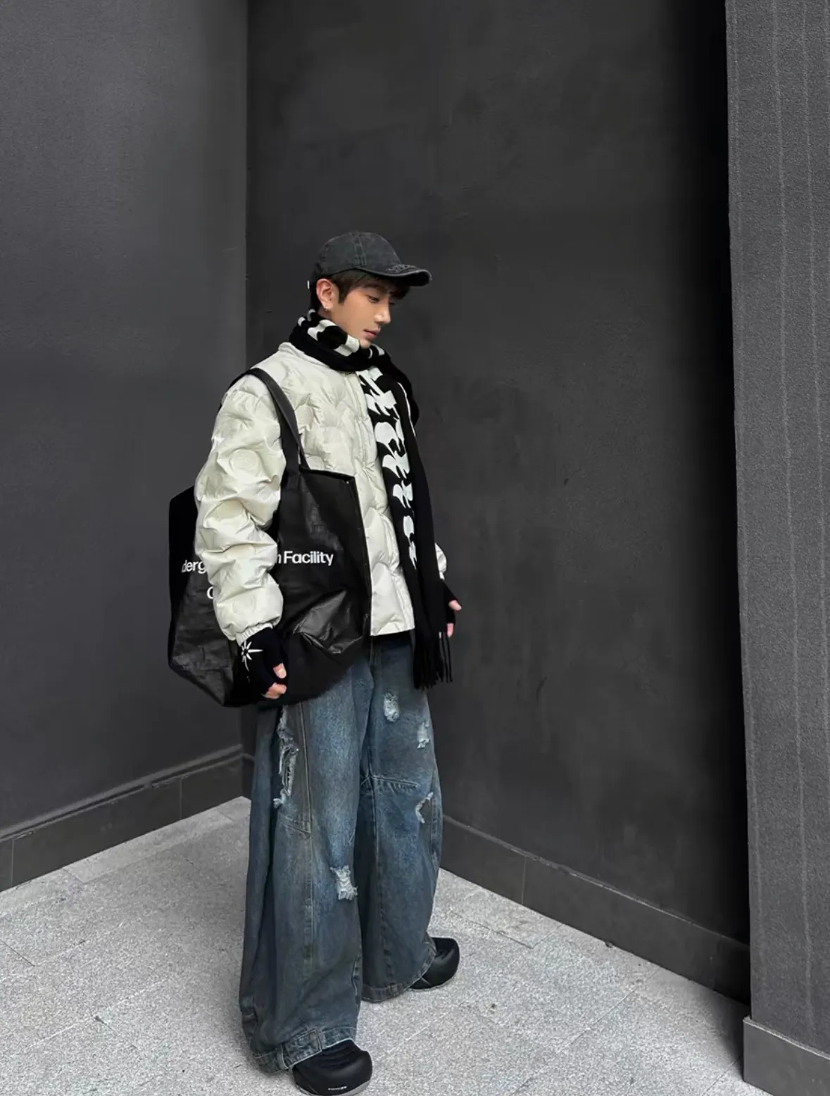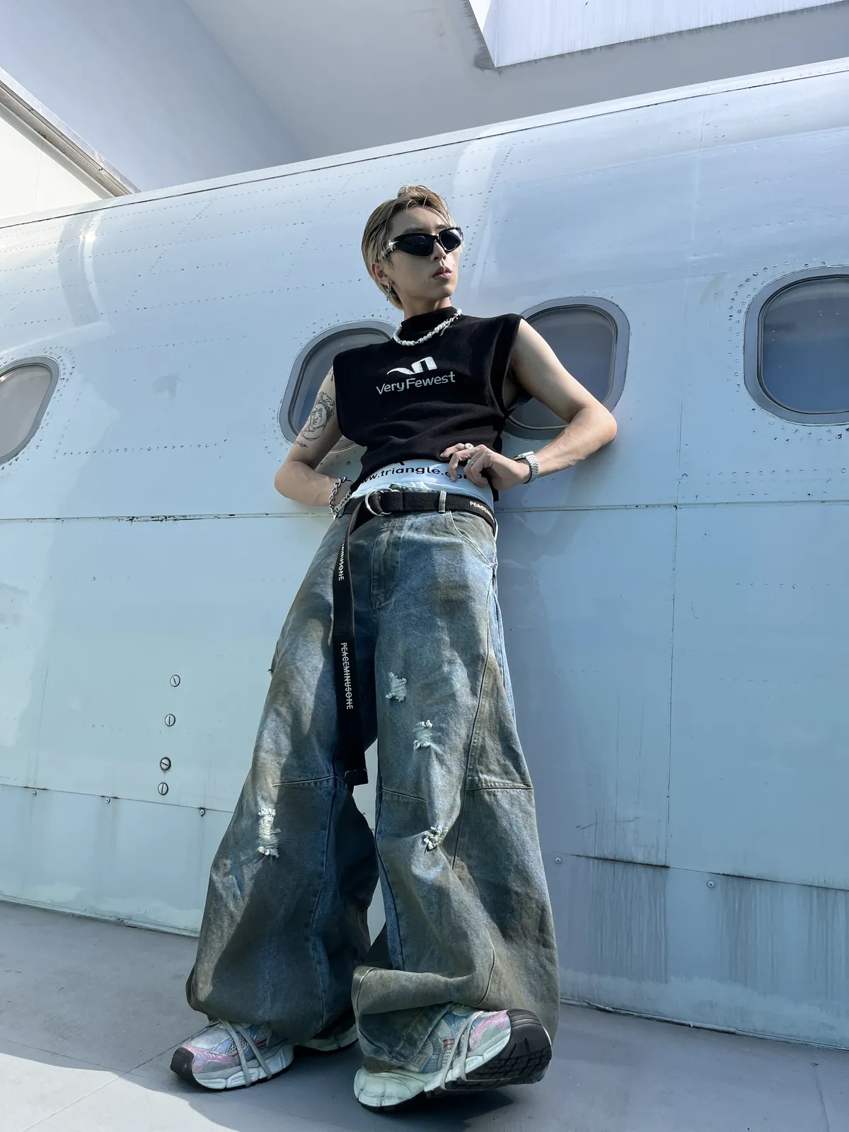 Triangle Project 水洗破壞拼接超大廓形髒染牛仔褲