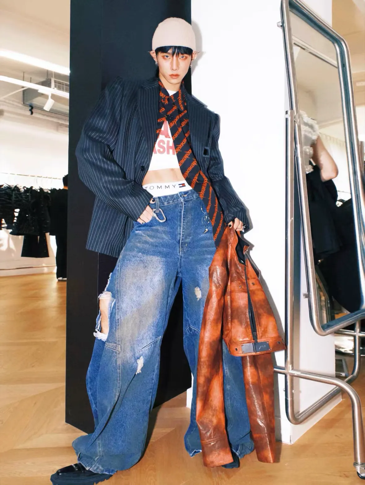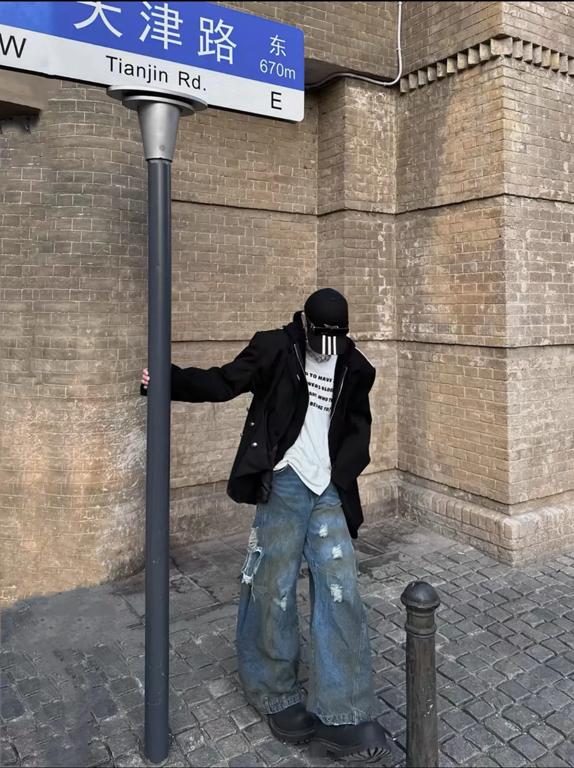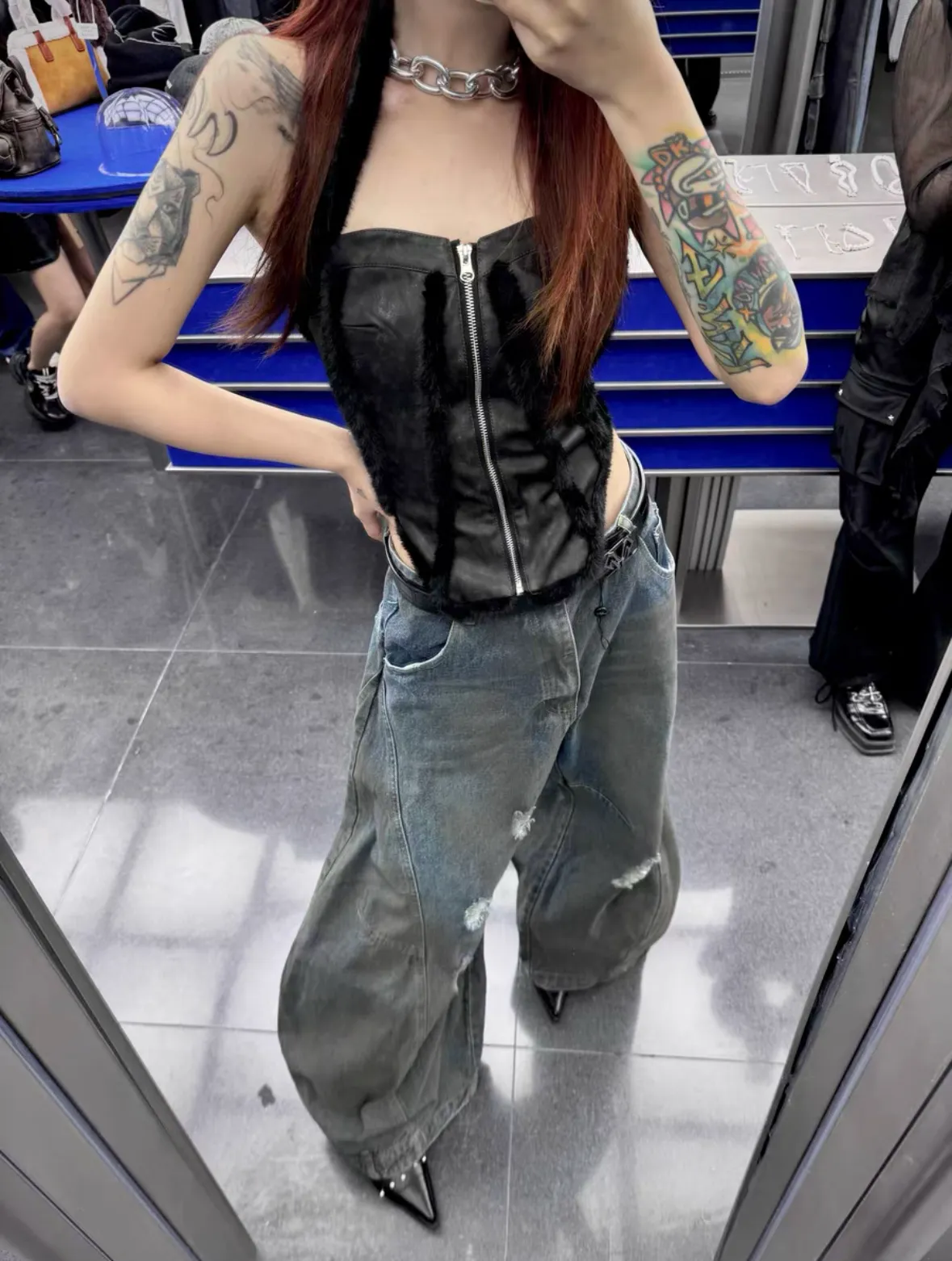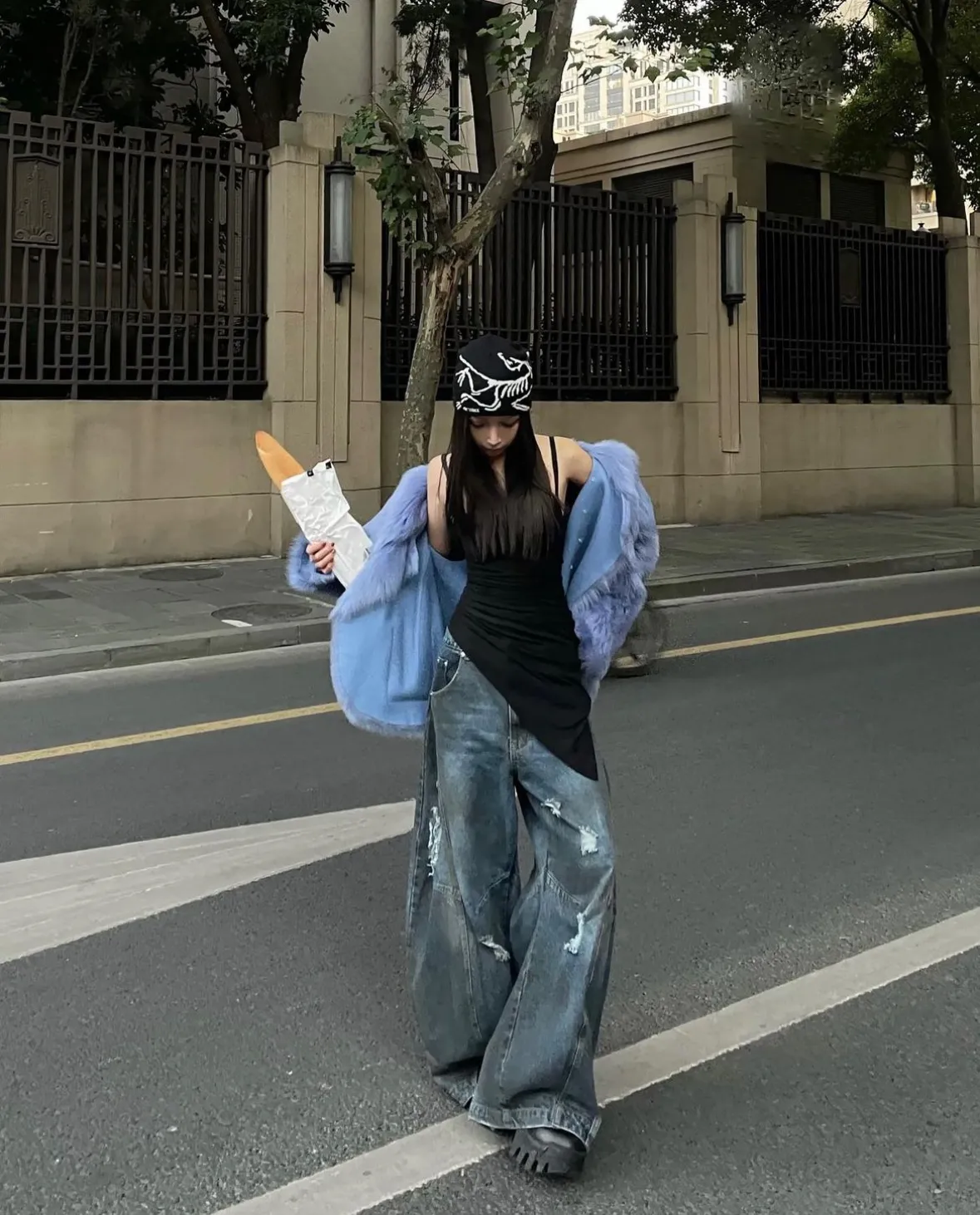 Triangle Project 水洗破壞拼接超大廓形髒染牛仔褲
