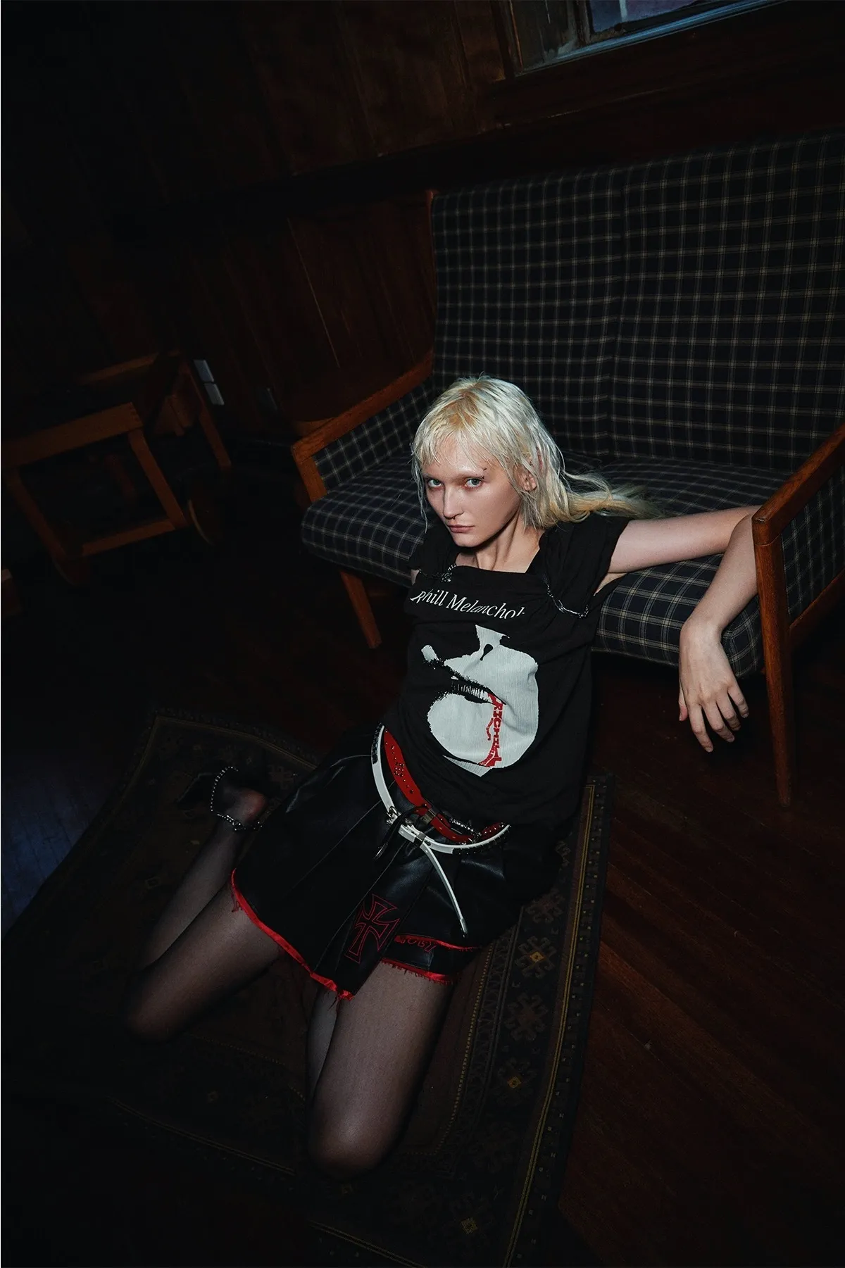 RICHILL 龐克搖滾 梅杜莎 塗鴉 水洗 短袖 TEE