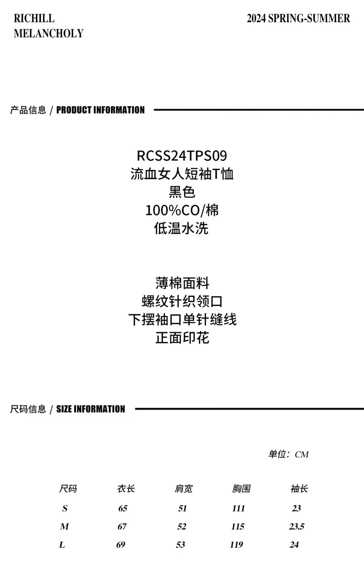 RICHILL 流血女人 開裂印花 染色 短袖 TEE