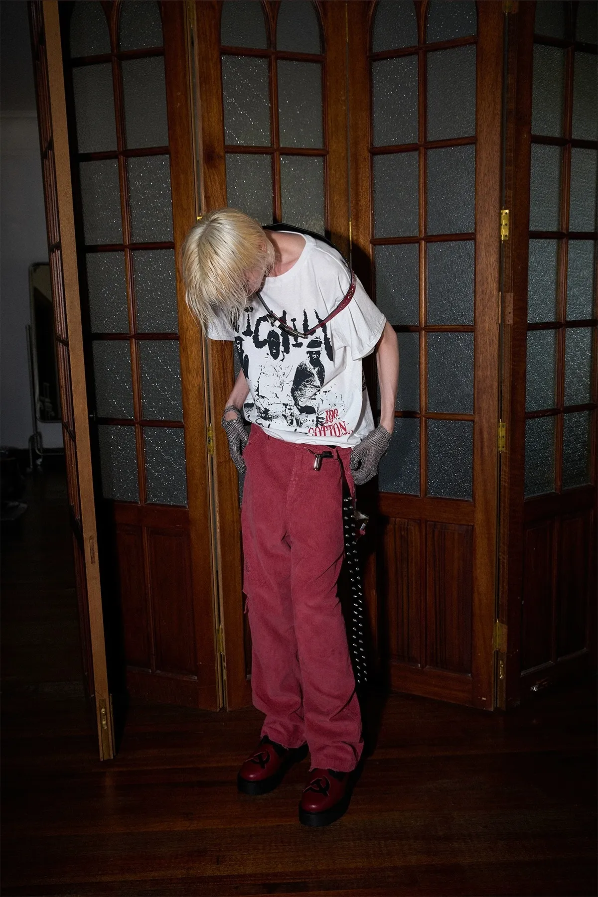 RICHILL 人像印花 微喇叭 血紅色 皮褲 長褲