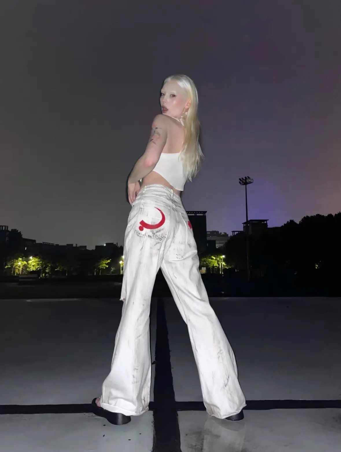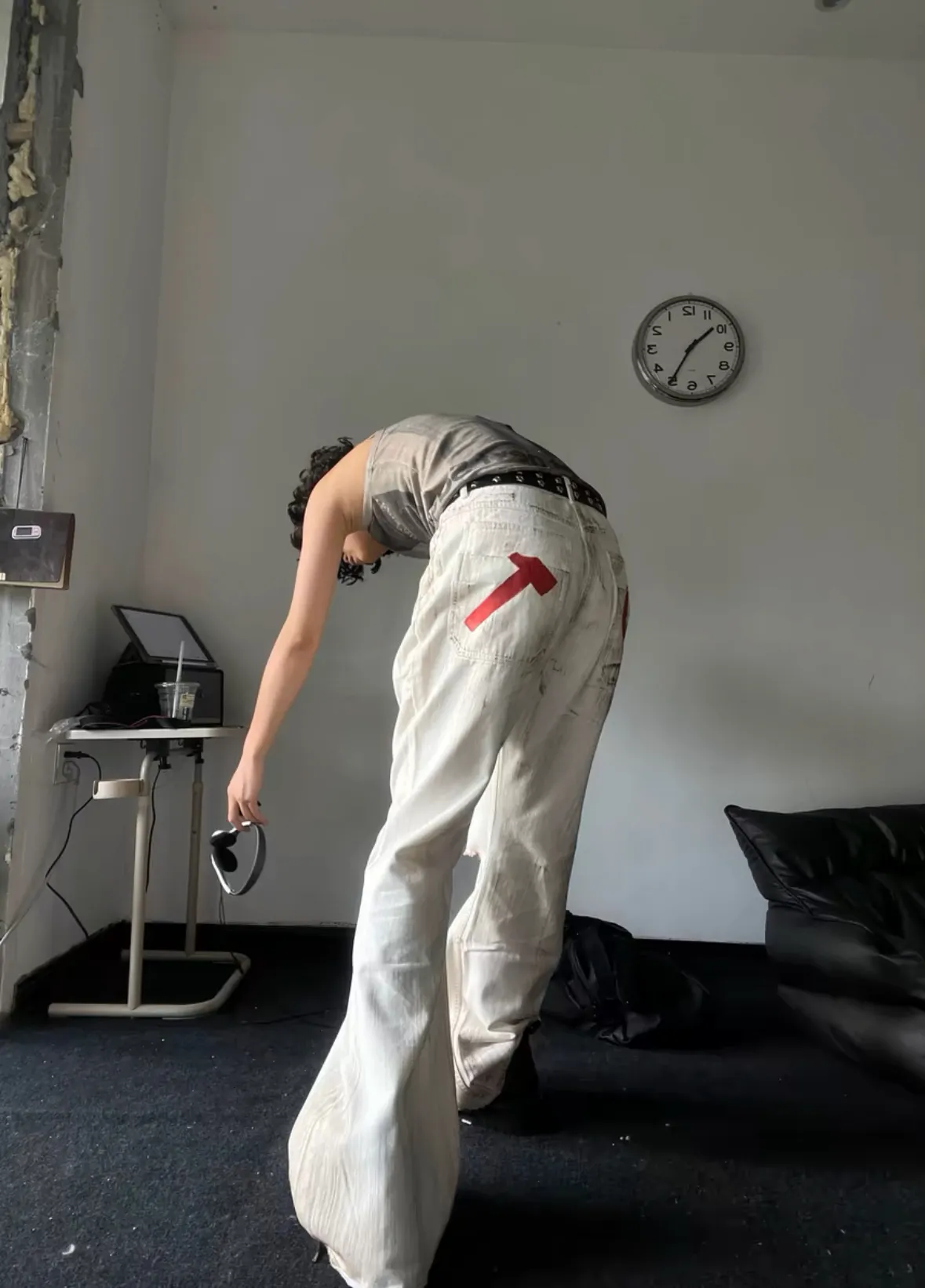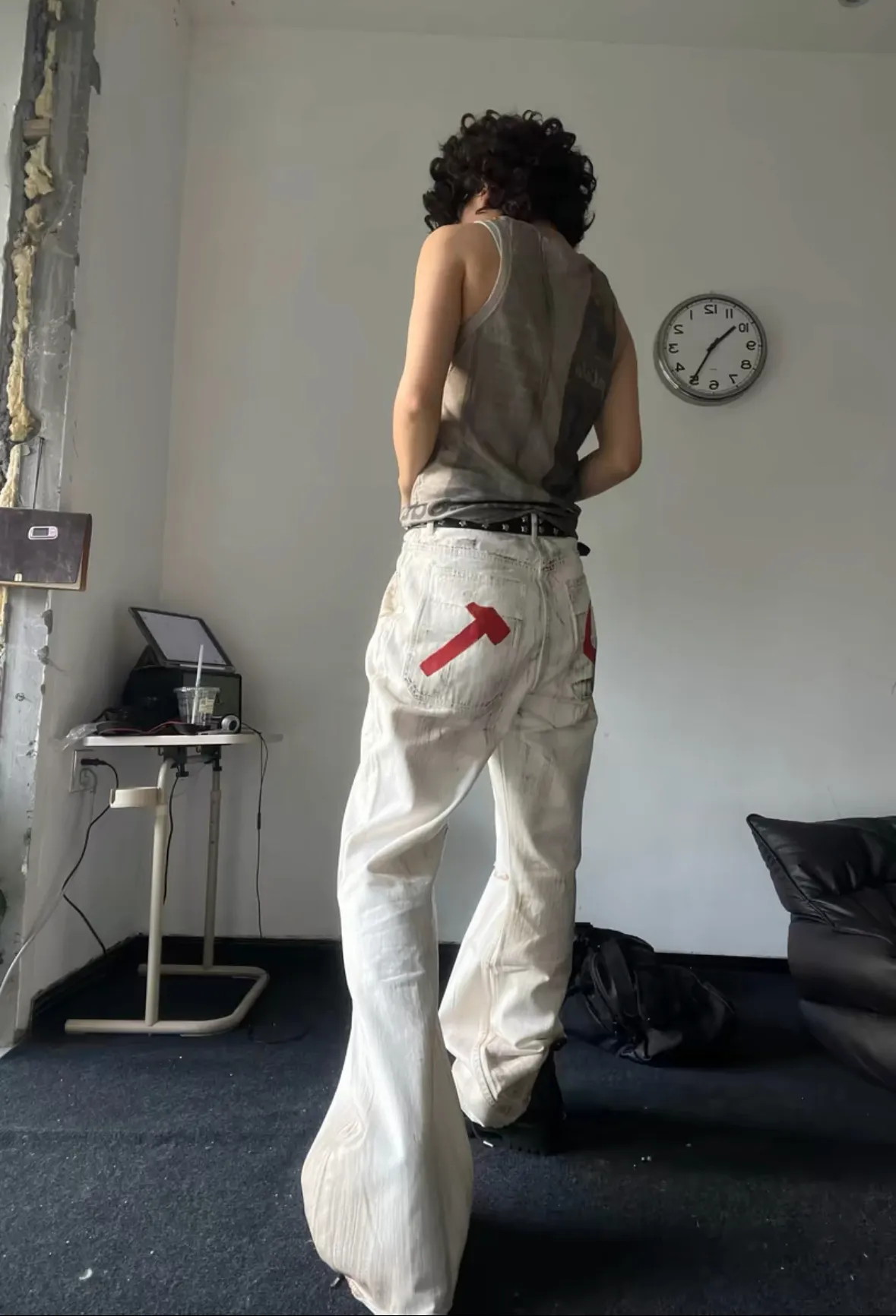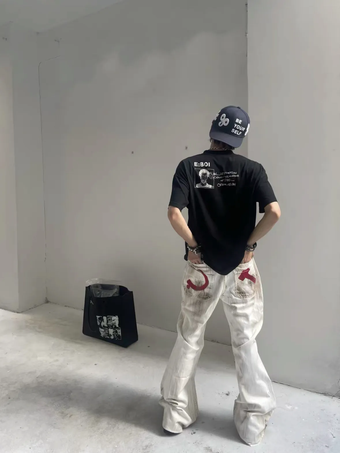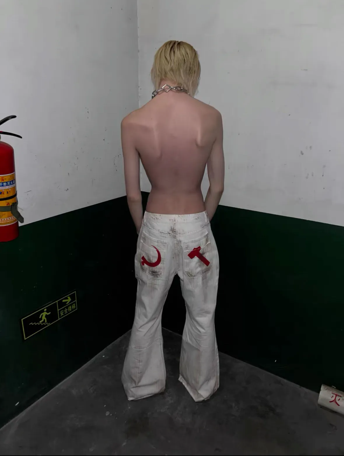Triangle Project 手繪做舊 鐮刀 錘子 撞色 喇叭褲 牛仔褲
