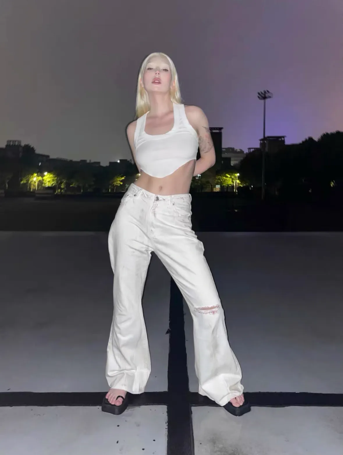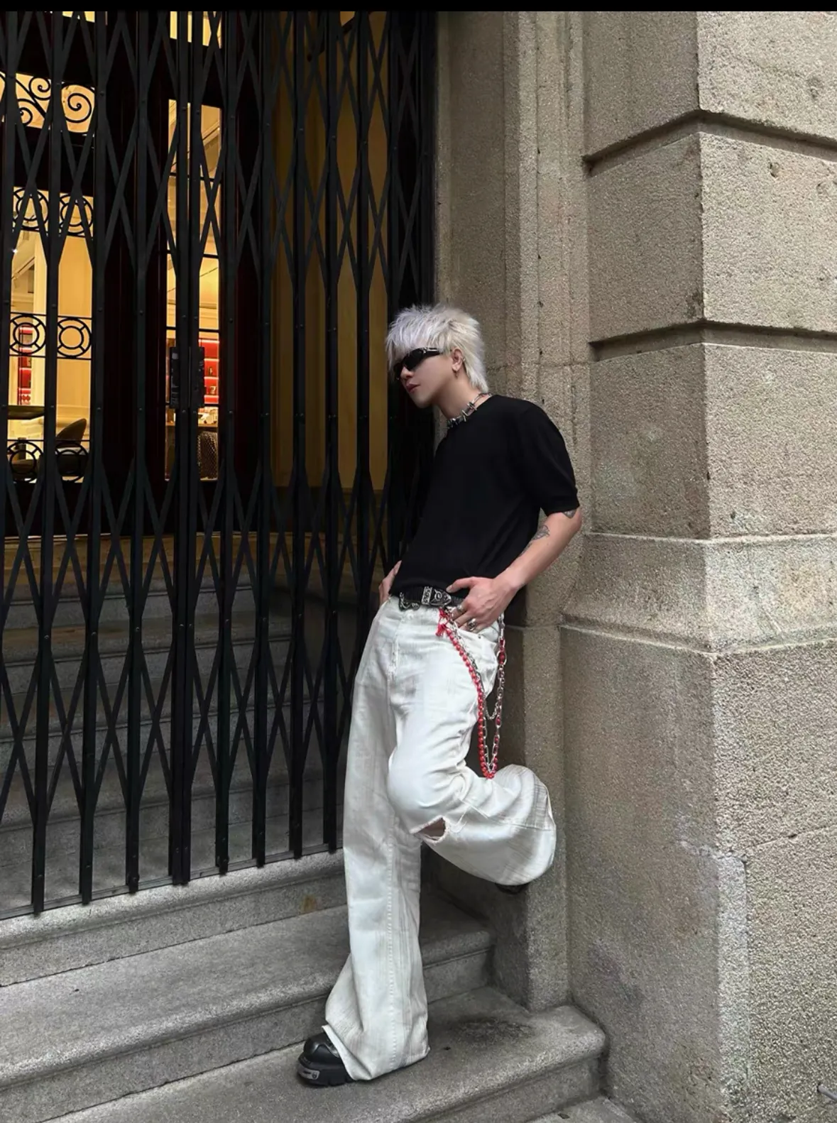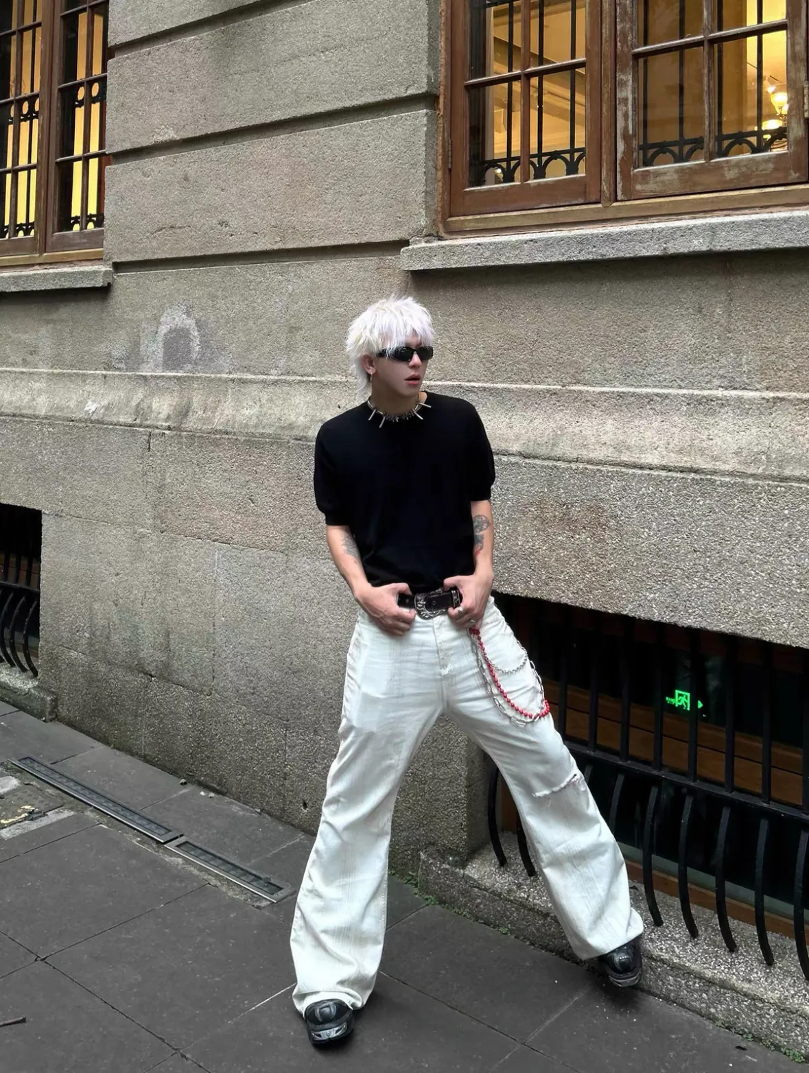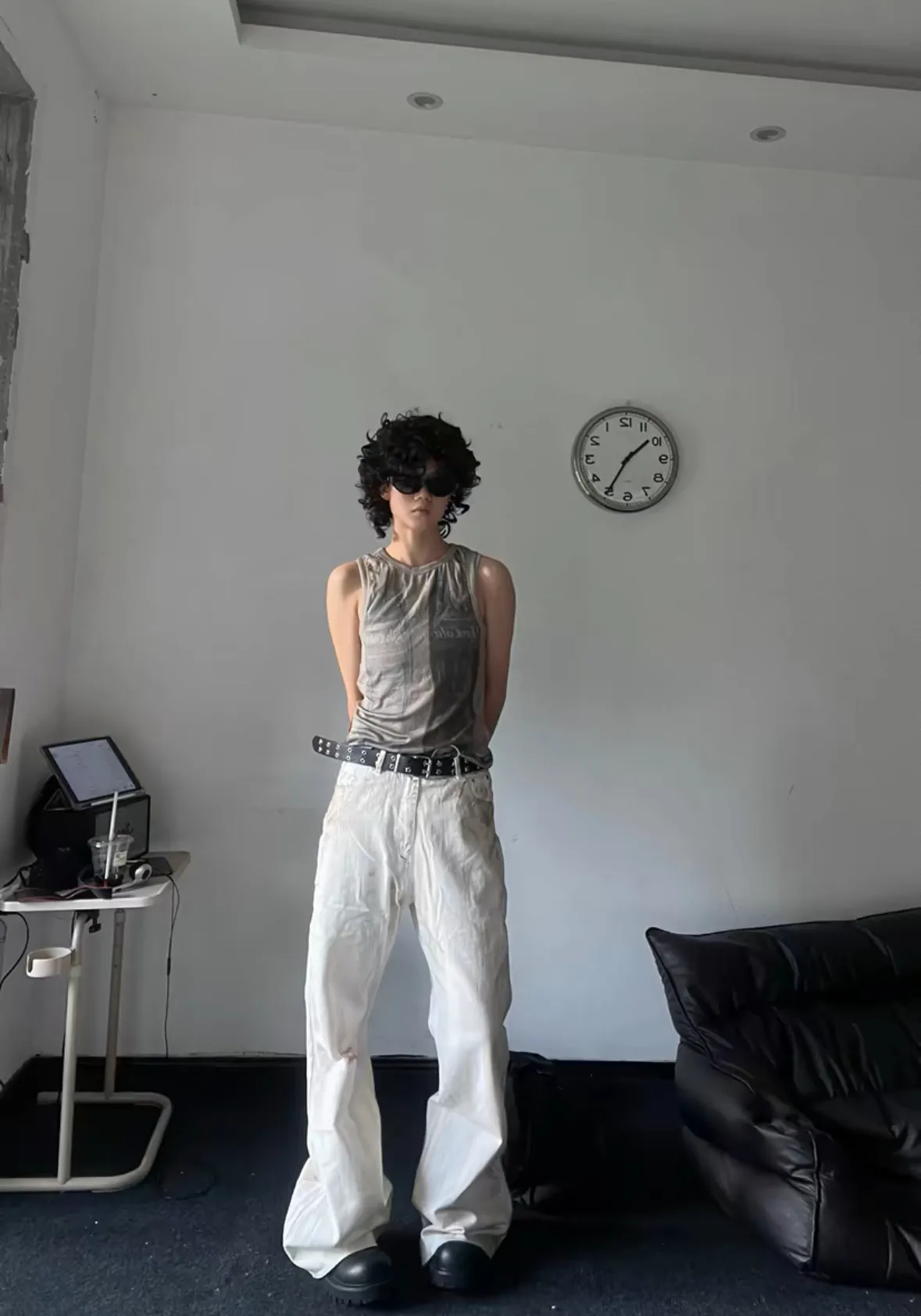 Triangle Project 解構 廓形 雙層拼接 純色 牛仔褲