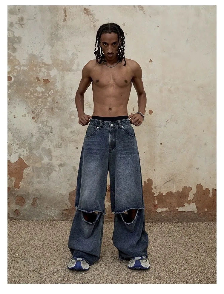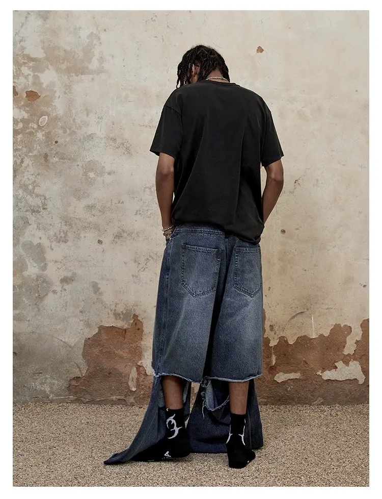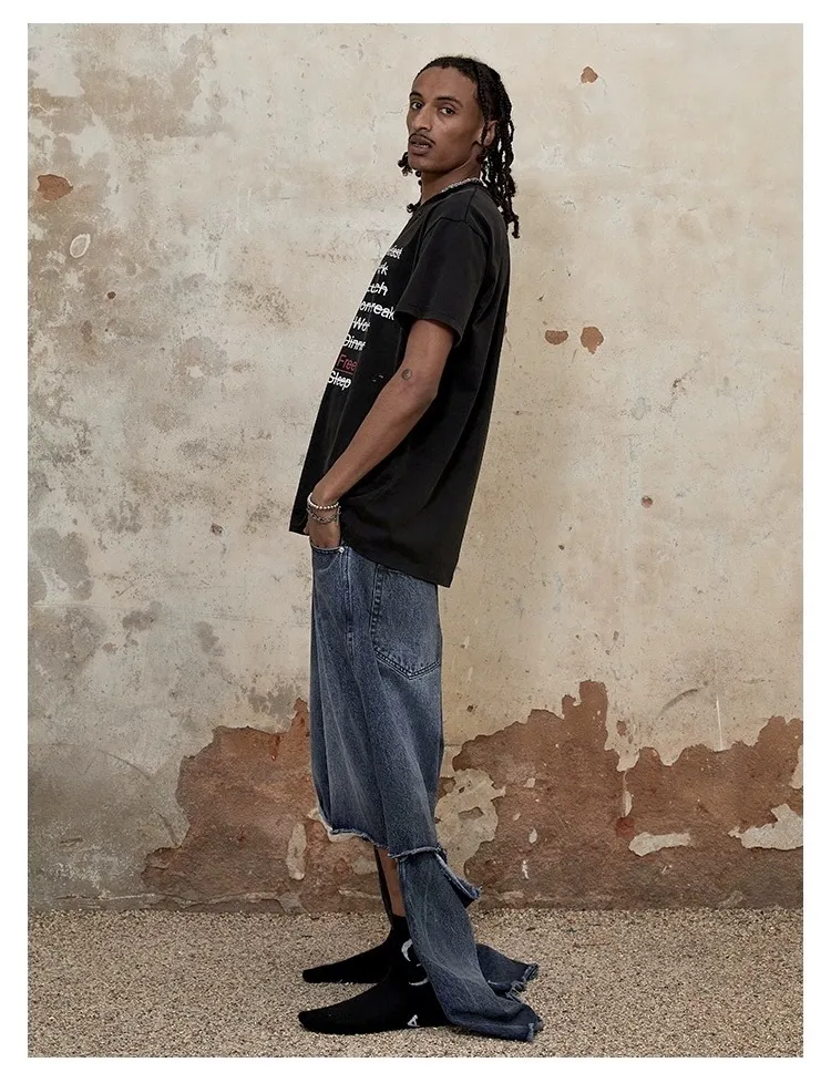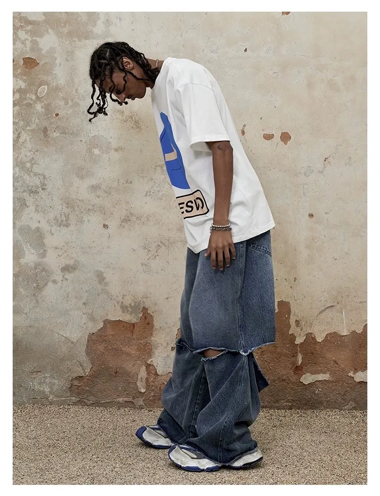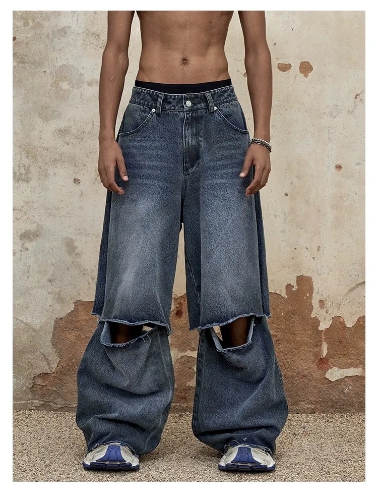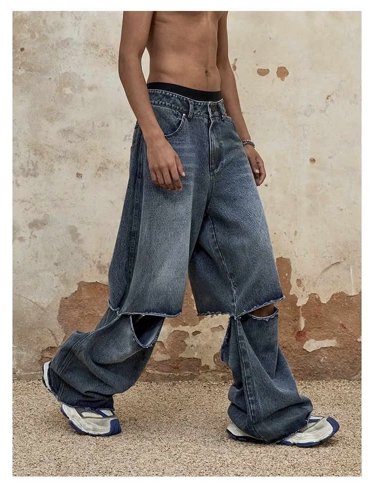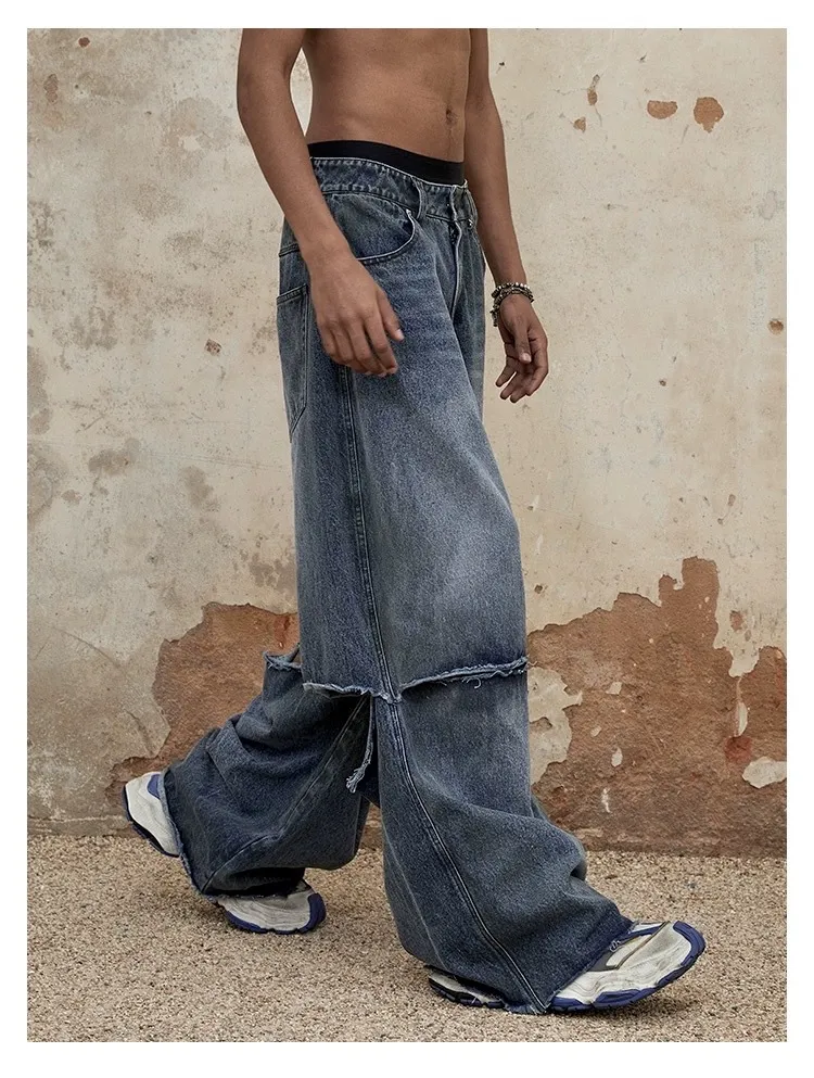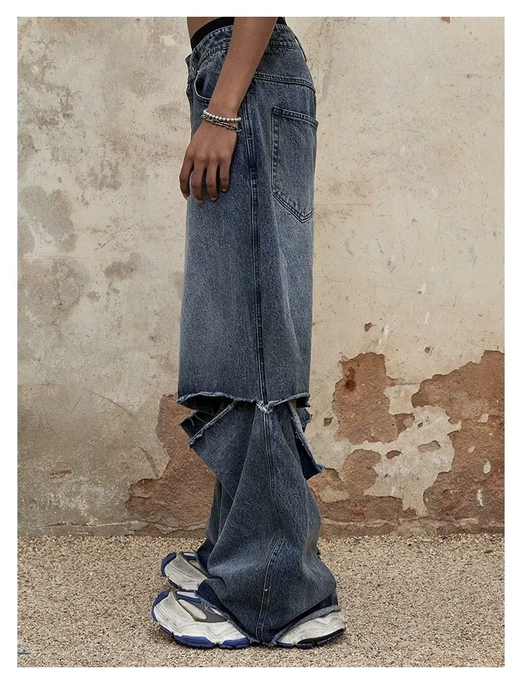 Triangle Project 解構 廓形 雙層拼接 純色 牛仔褲