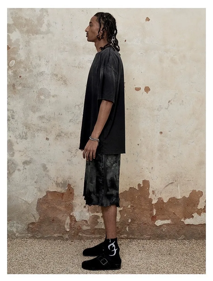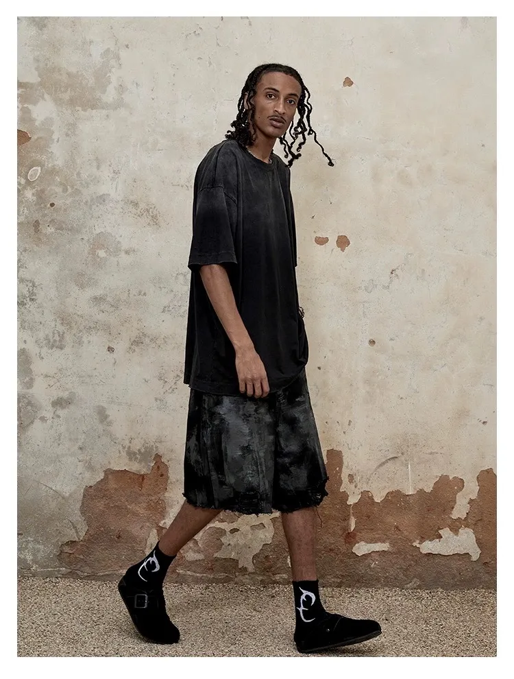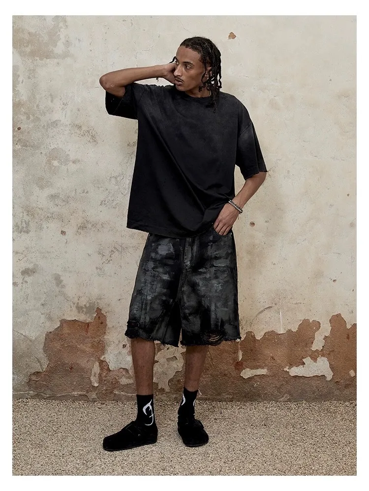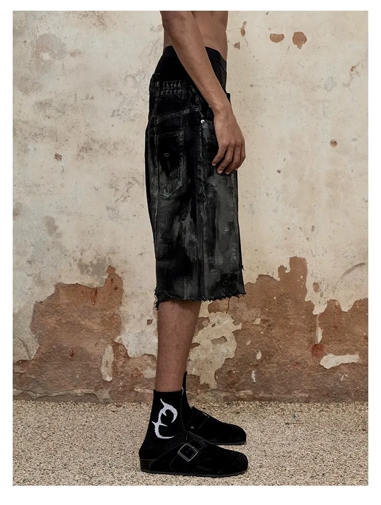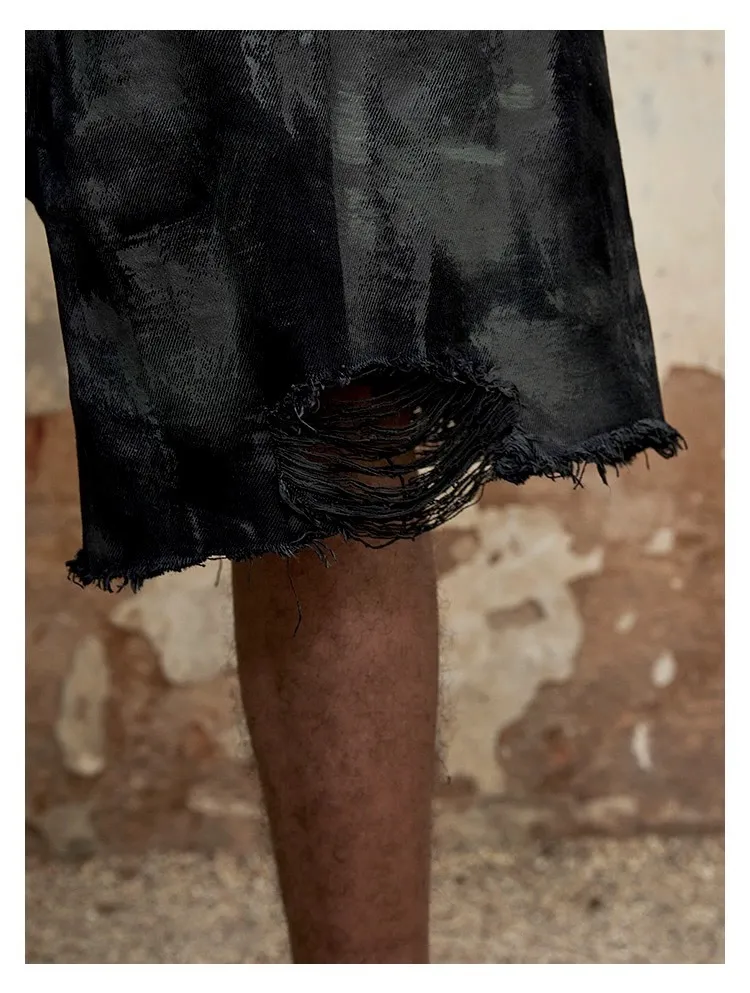 Triangle Project 破壞 髒染 解構 牛仔短褲 (黑色)